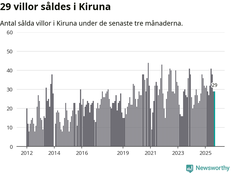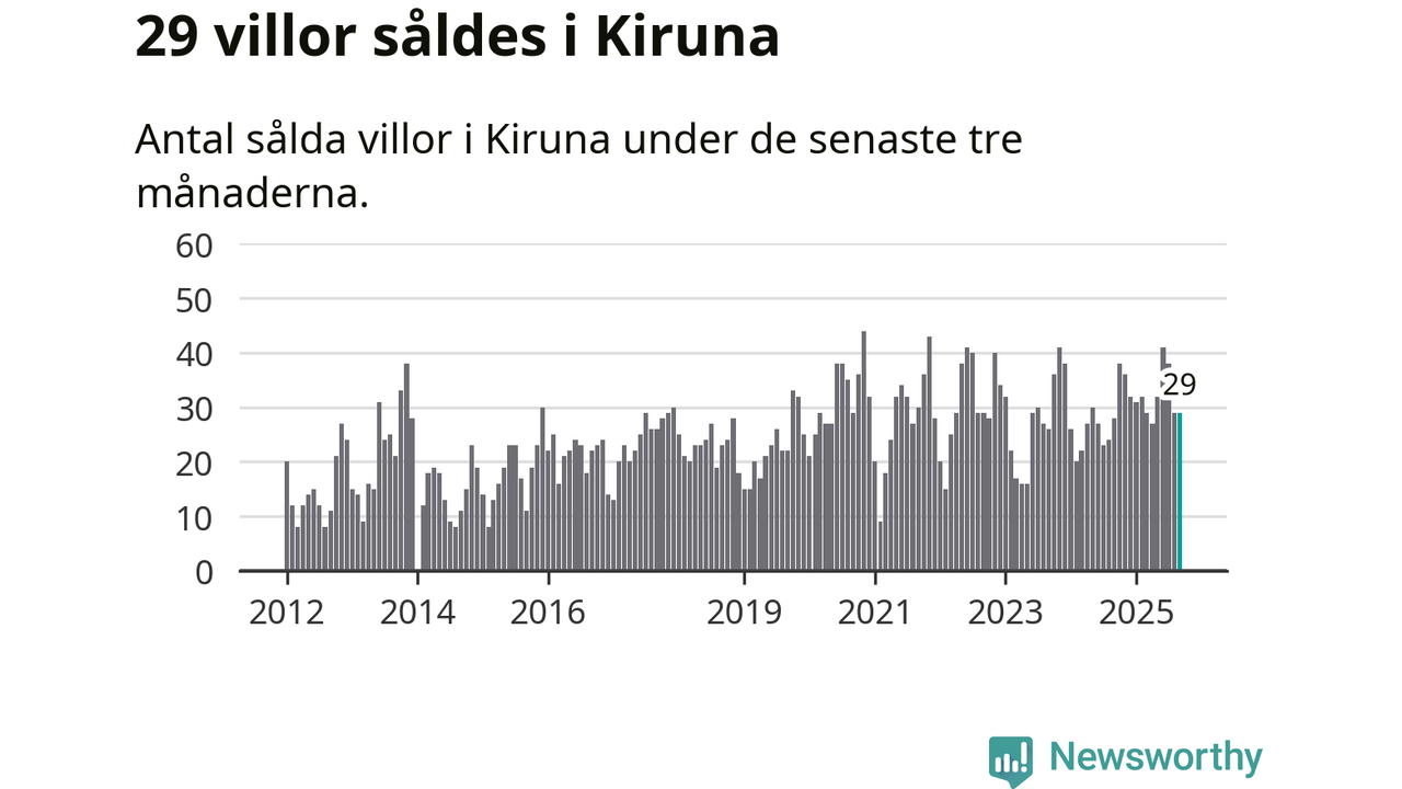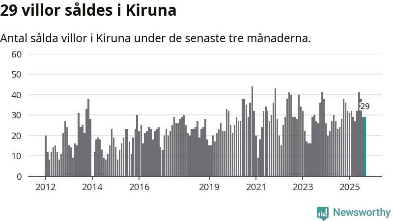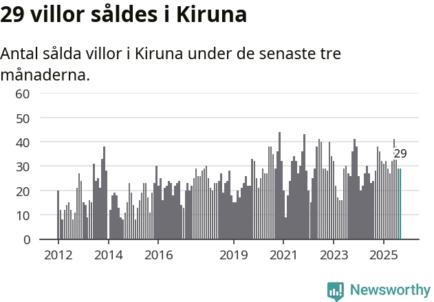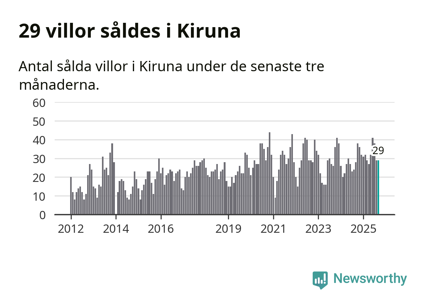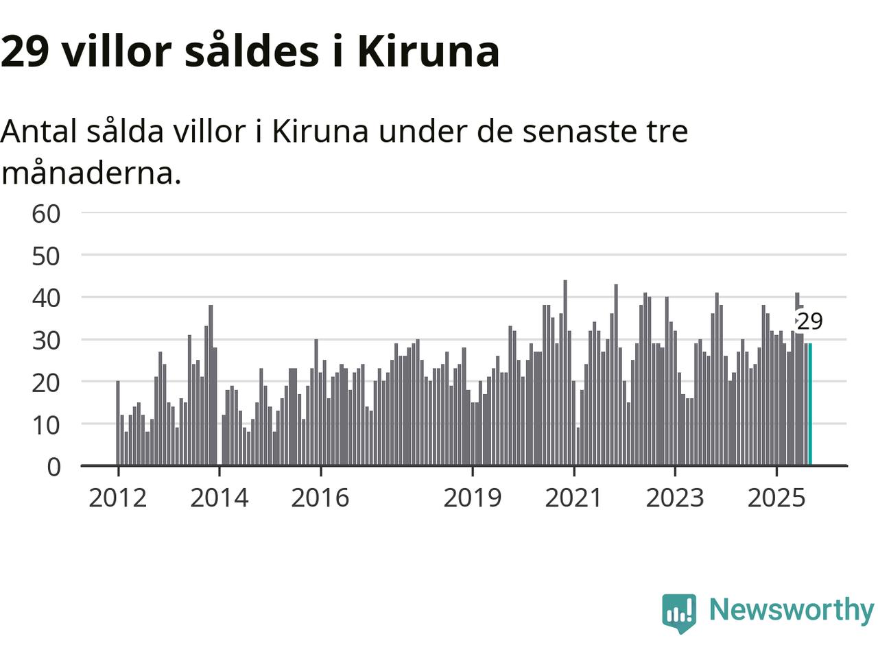 Mellan juli och september gjordes sammanlagt 29 affärer med villor i Kiruna kommun. Det kan jämföras med 28 vid motsvarande tid i fjol.