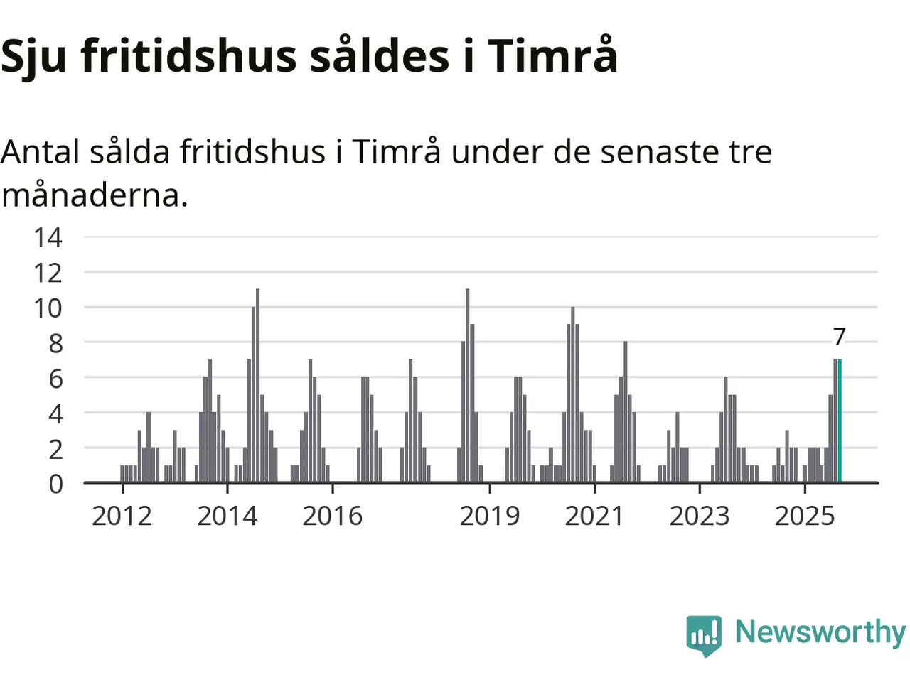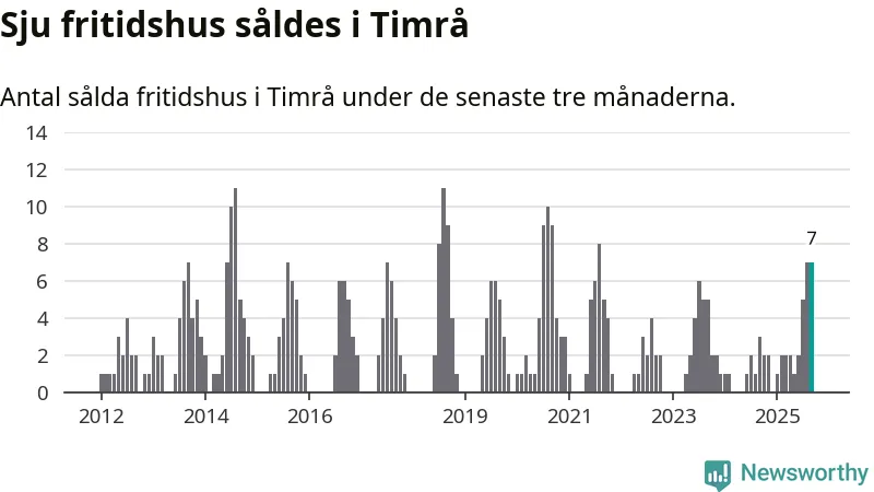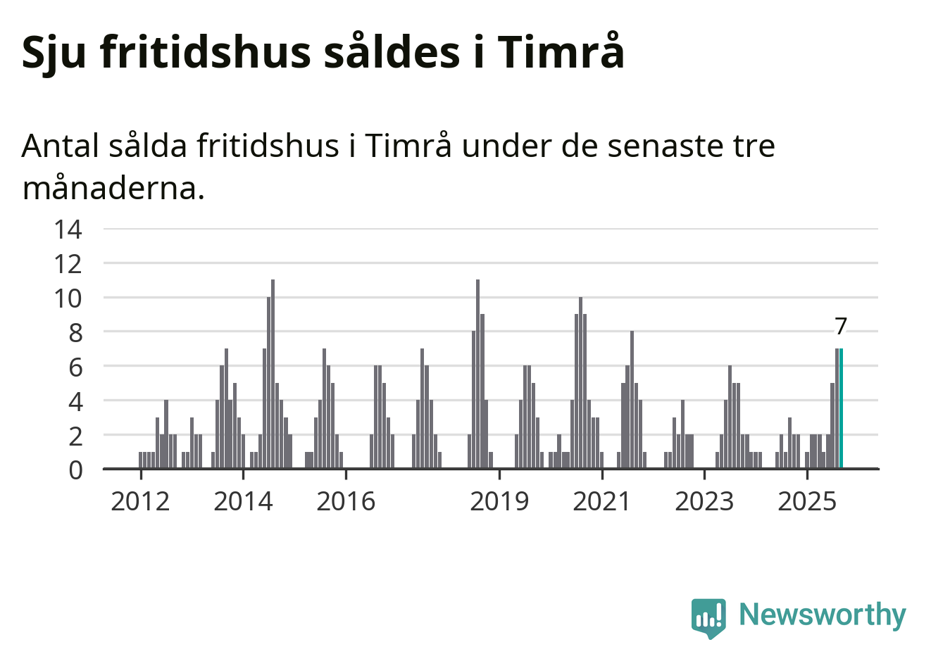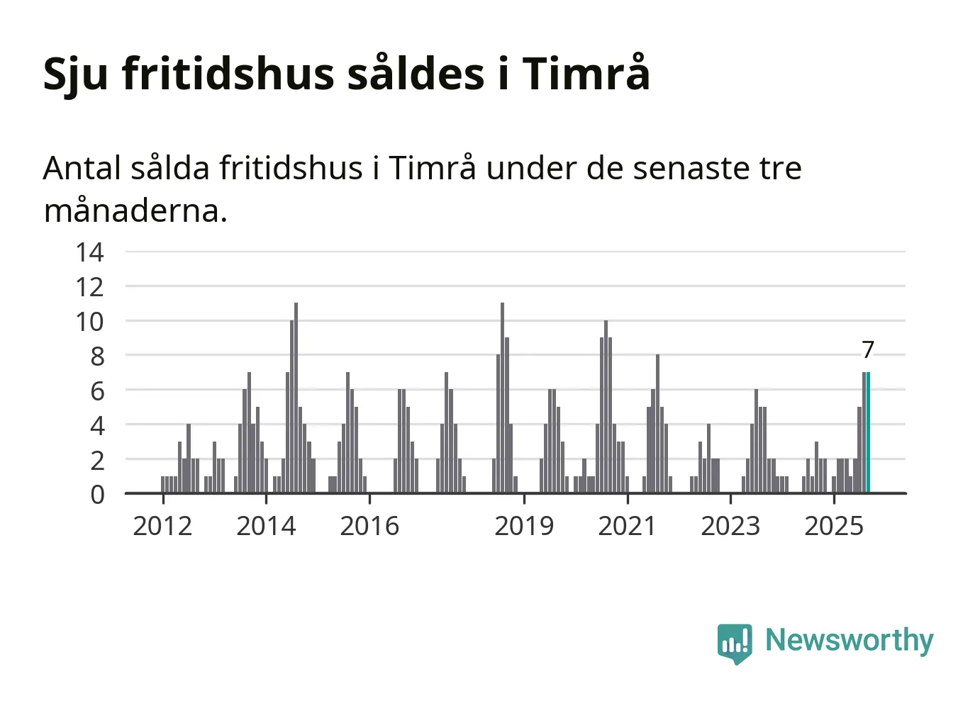 Mellan juli och september gjordes sammanlagt sju affärer med fritidshus i Timrå kommun. Det kan jämföras med tre vid motsvarande tid i fjol.