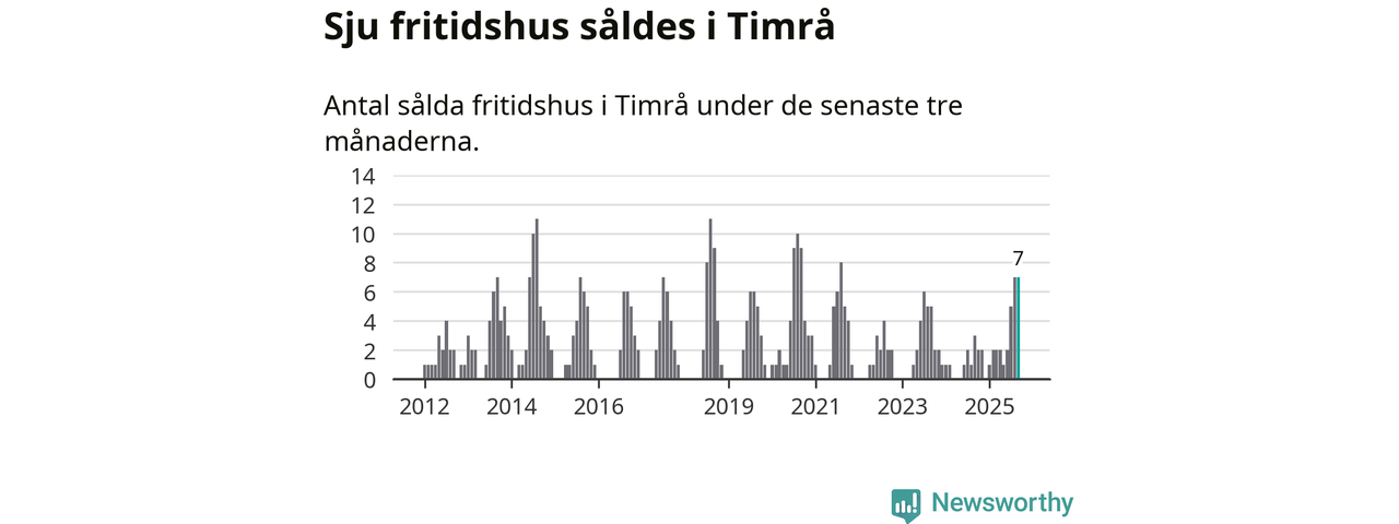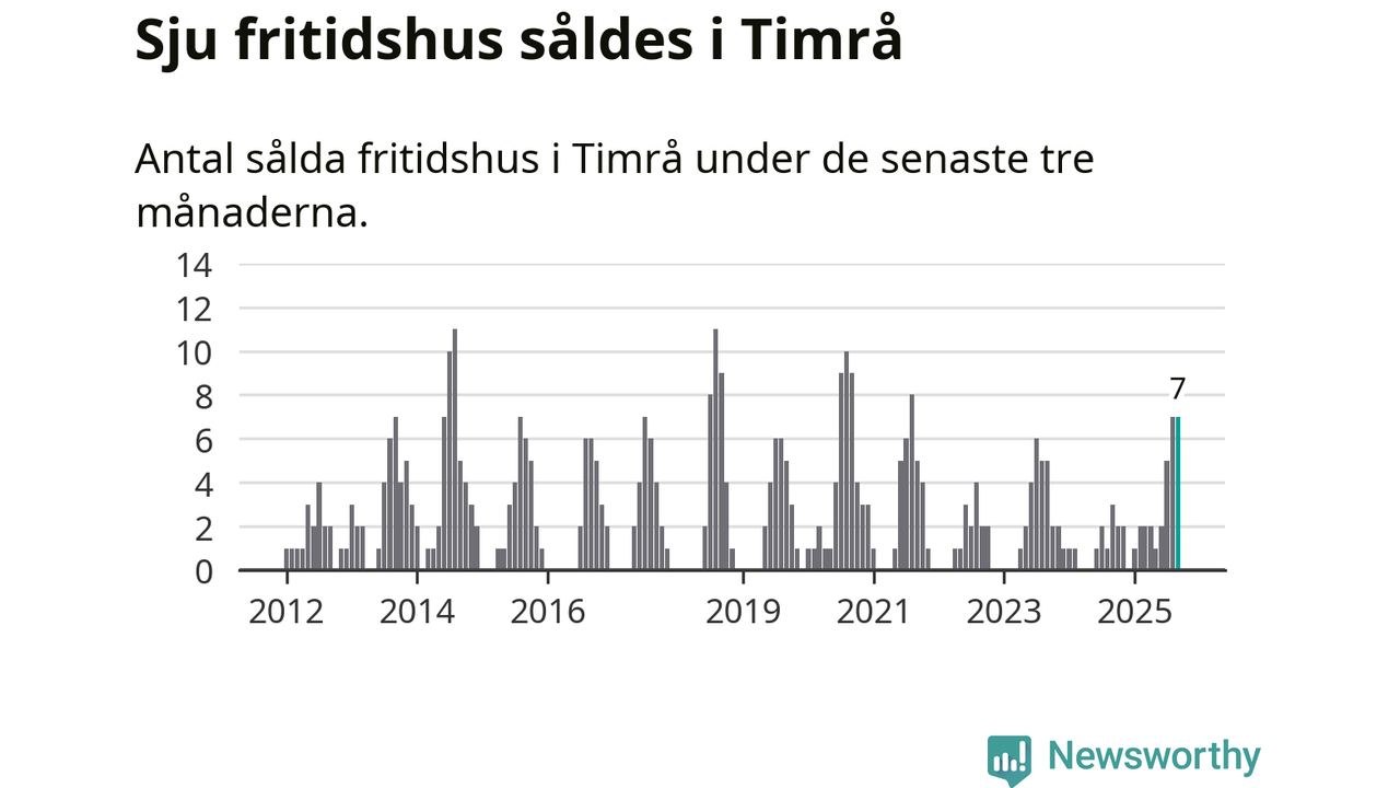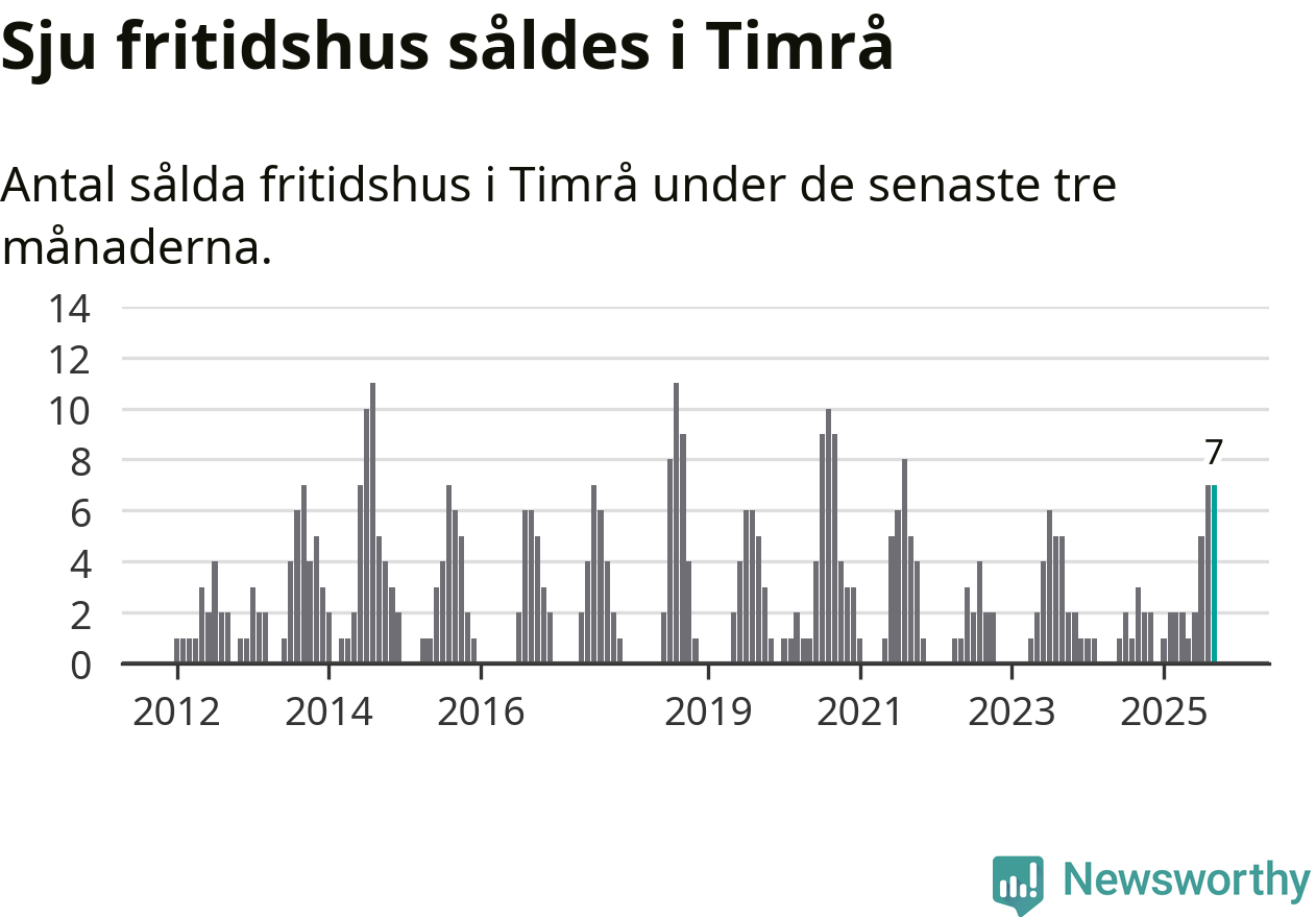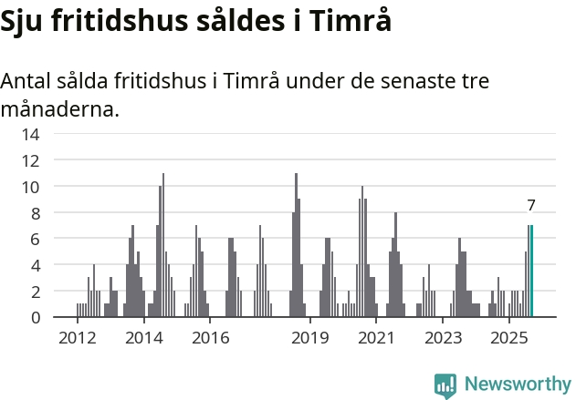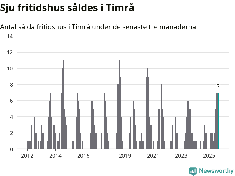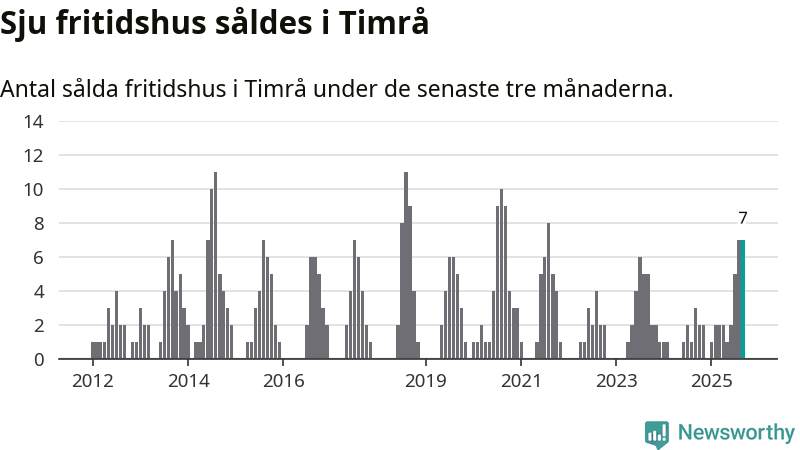 Mellan juli och september gjordes sammanlagt sju affärer med fritidshus i Timrå kommun. Det kan jämföras med tre vid motsvarande tid i fjol.