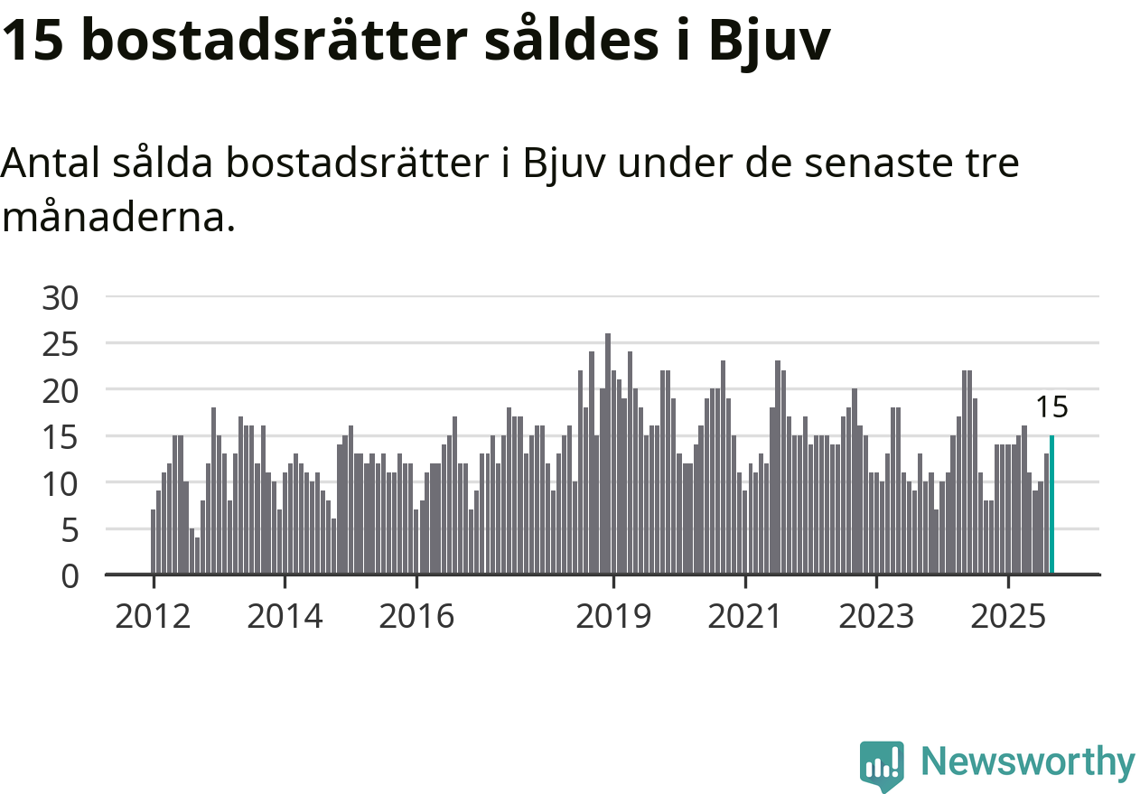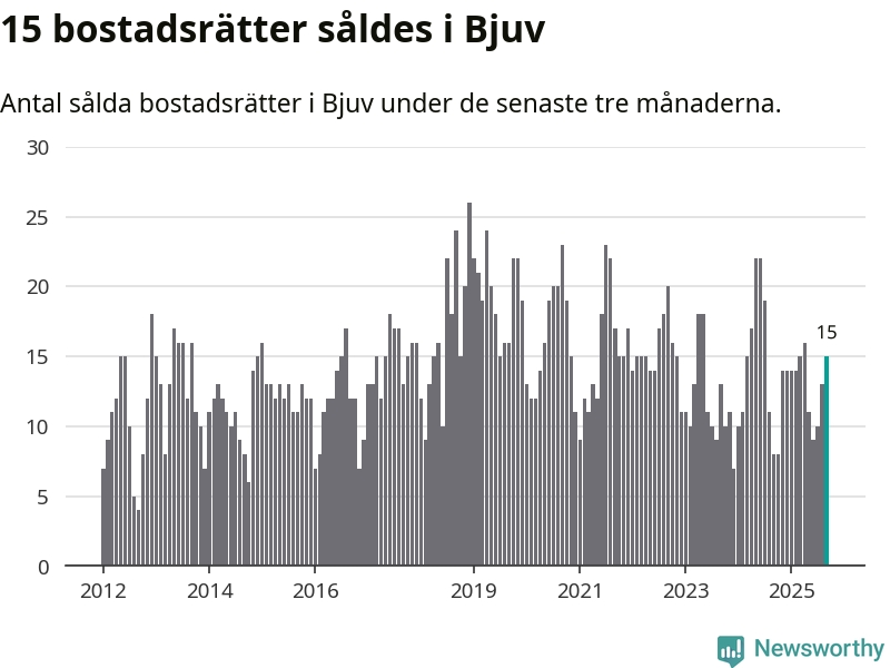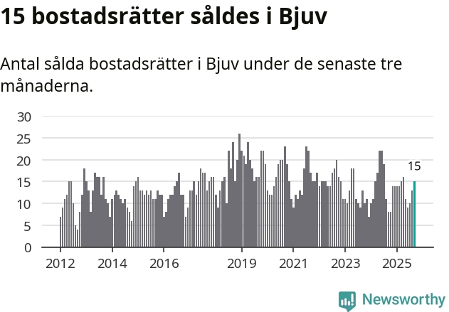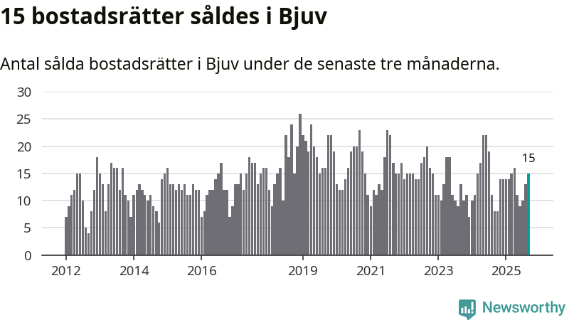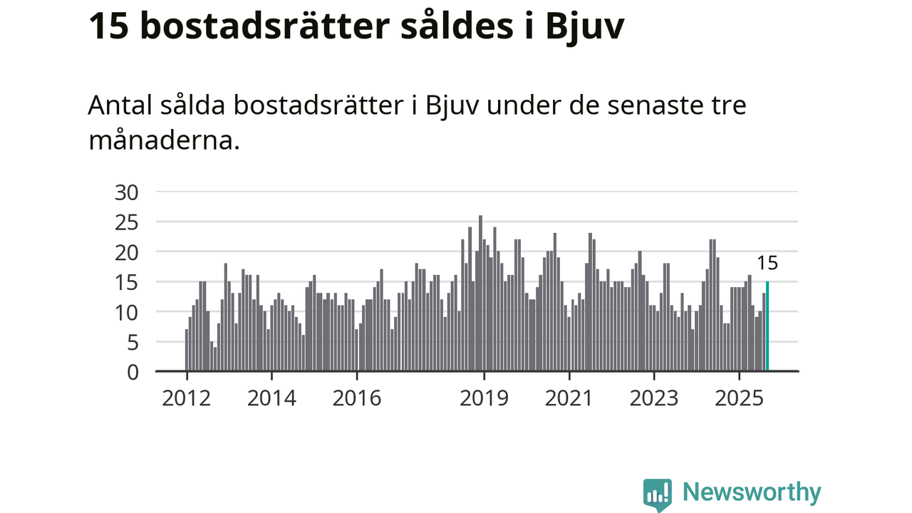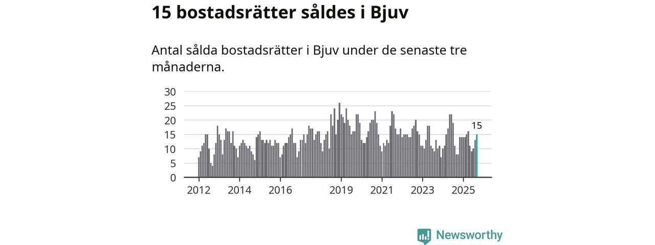 Mellan juli och september gjordes sammanlagt 15 affärer med bostadsrätter i Bjuvs kommun. Det kan jämföras med åtta vid motsvarande tid i fjol.
