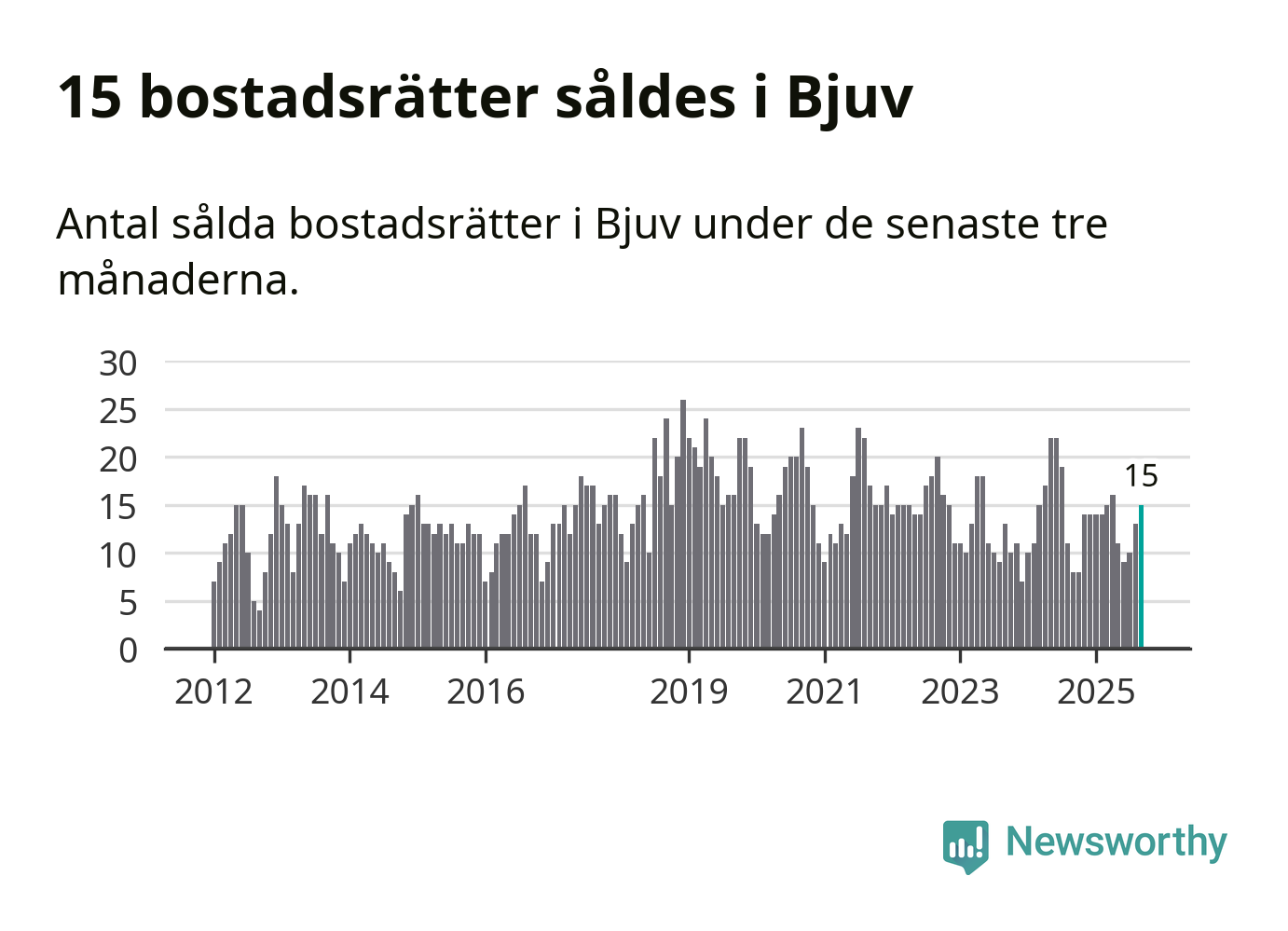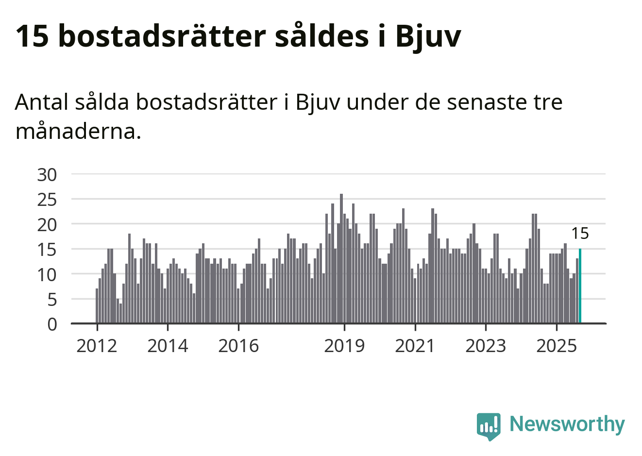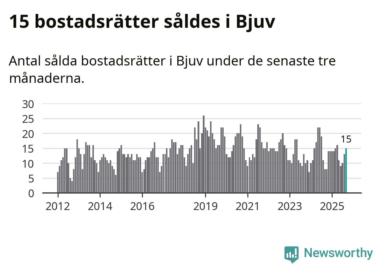 Mellan juli och september gjordes sammanlagt 15 affärer med bostadsrätter i Bjuvs kommun. Det kan jämföras med åtta vid motsvarande tid i fjol.