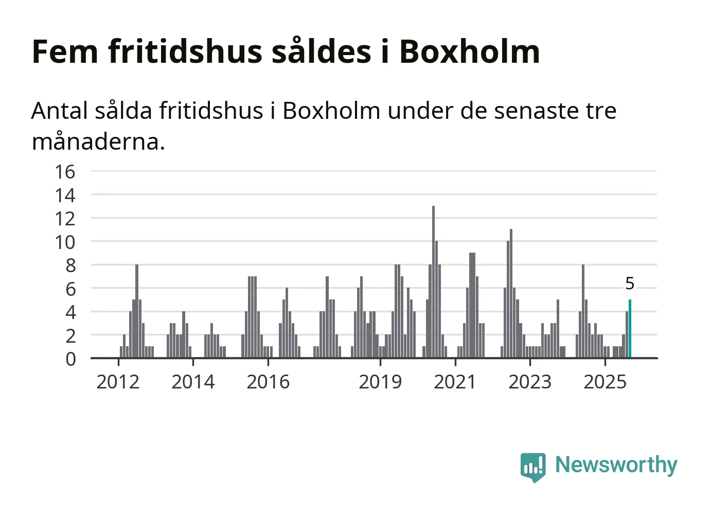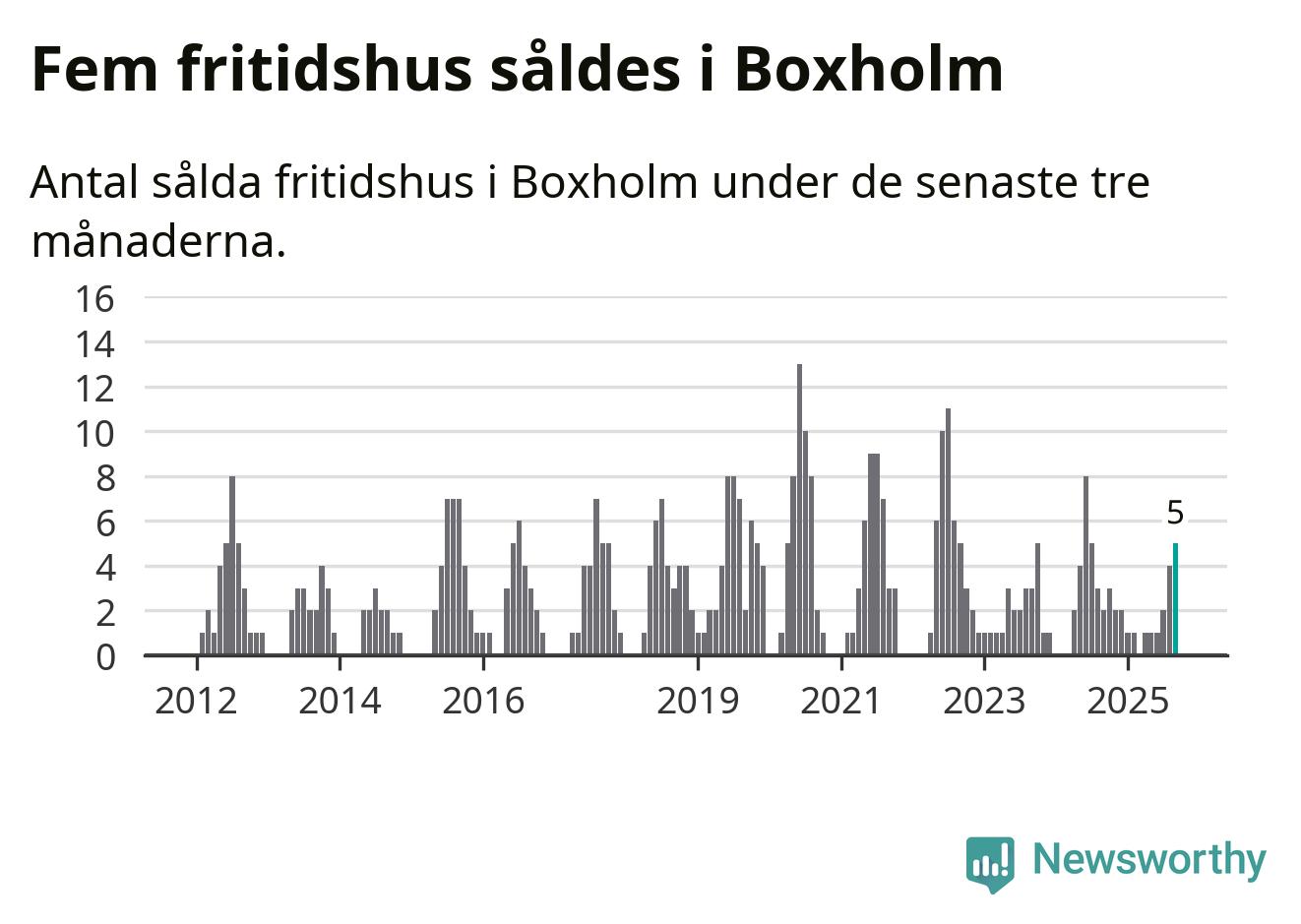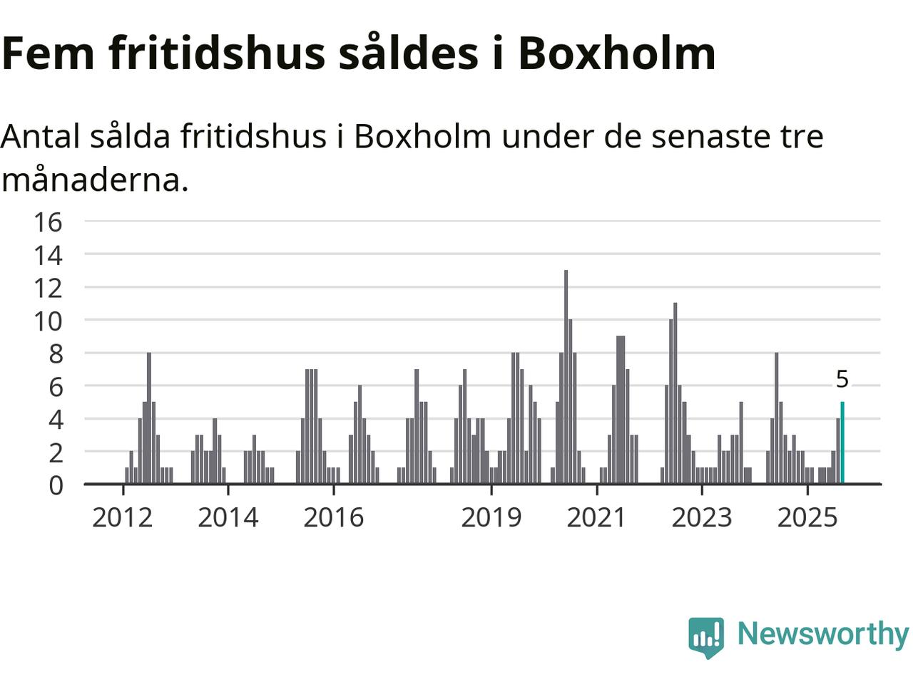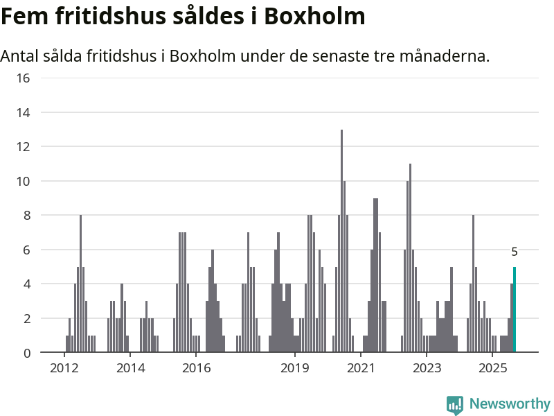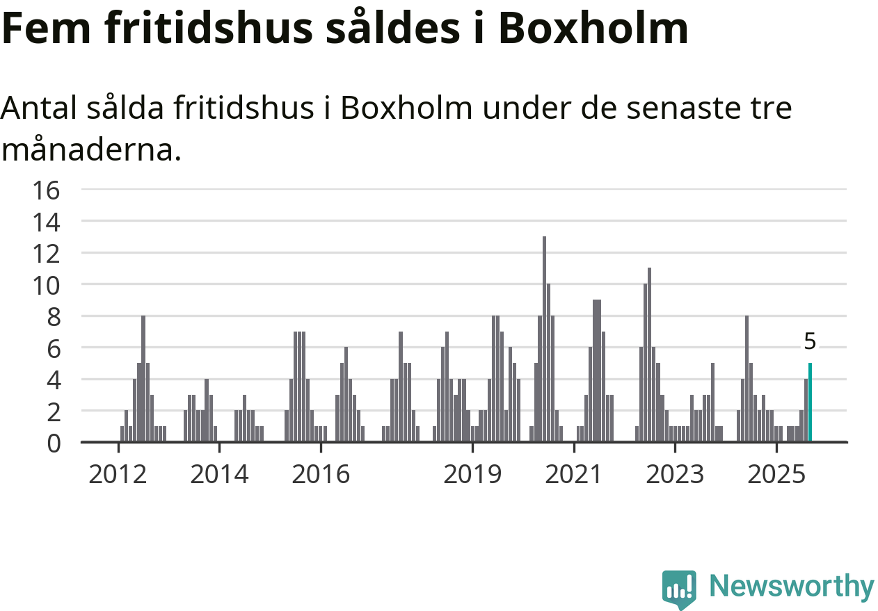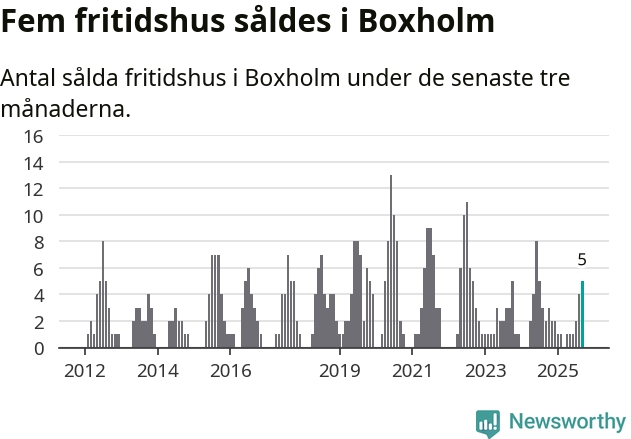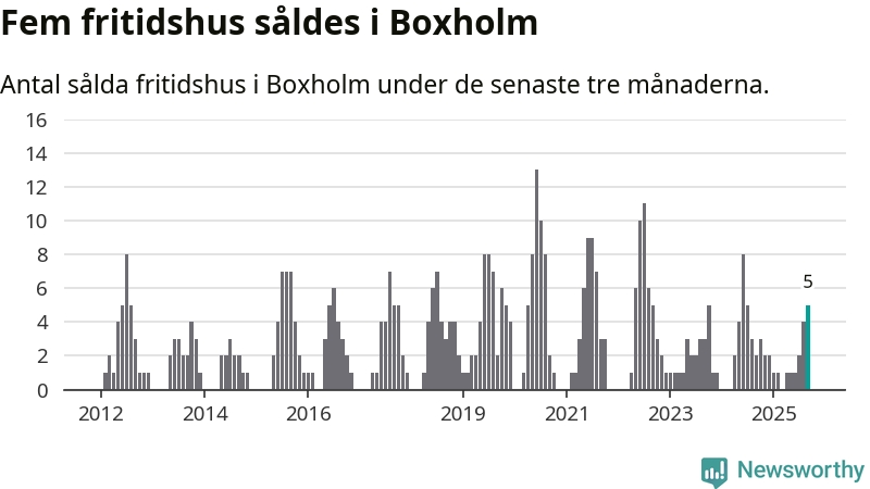 Mellan juli och september gjordes sammanlagt fem affärer med fritidshus i Boxholms kommun. Det kan jämföras med två vid motsvarande tid i fjol.