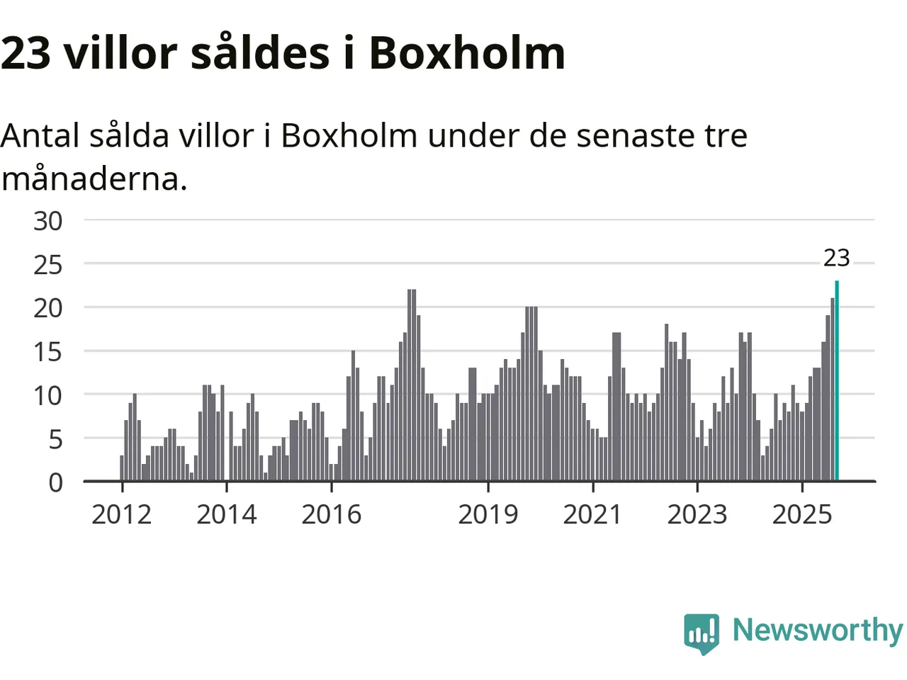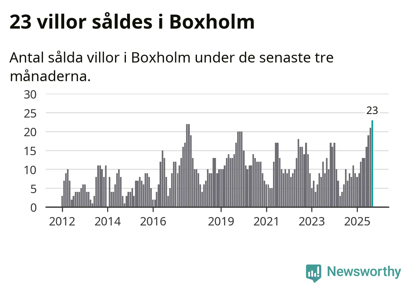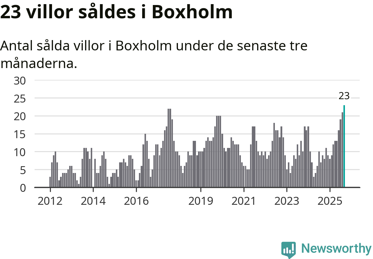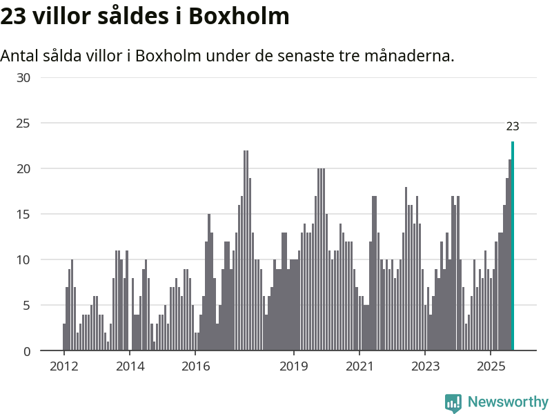 Mellan juli och september såldes 23 villor i Boxholms kommun. Det är fler än någon tremånadersperiod sedan 2012.