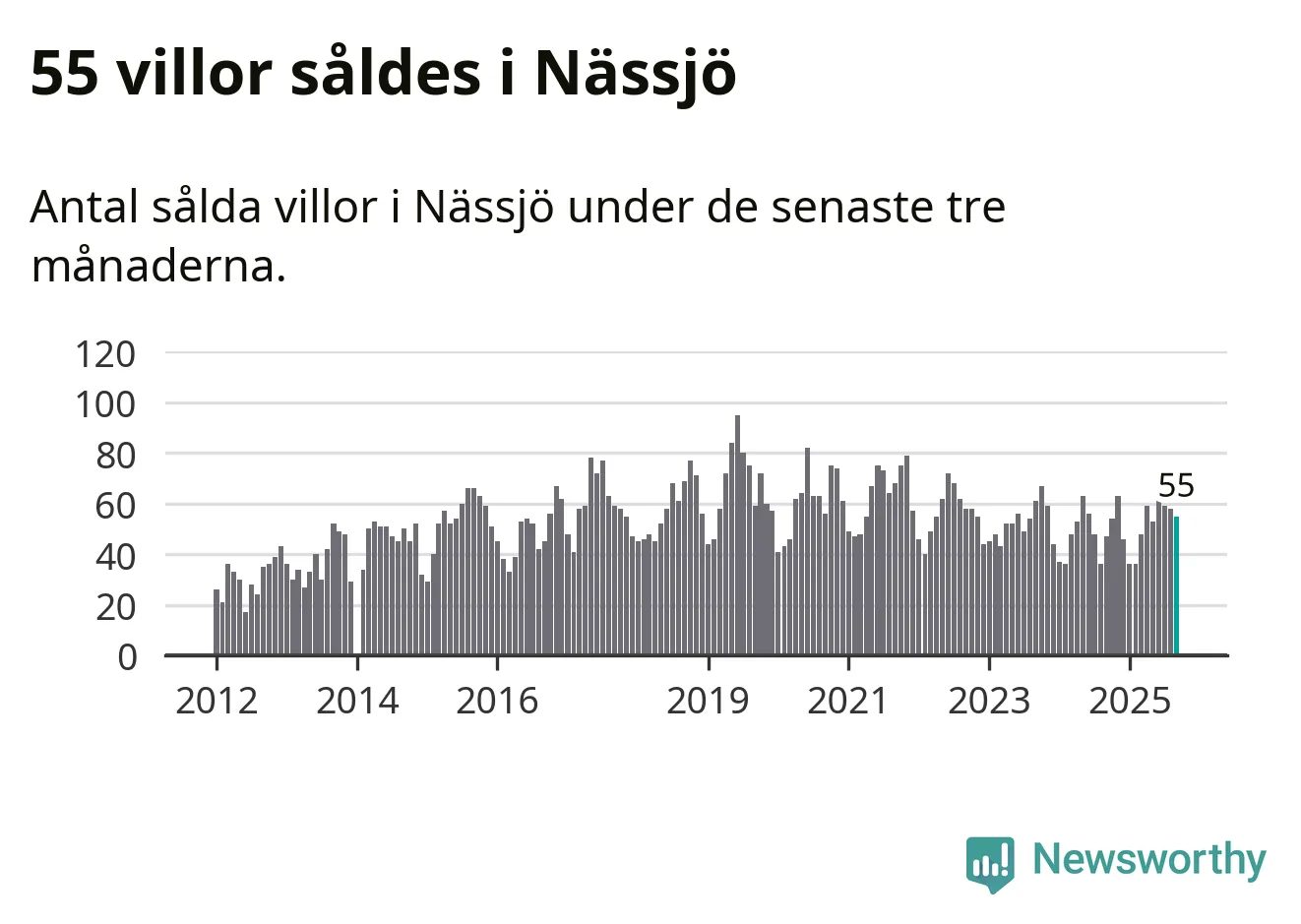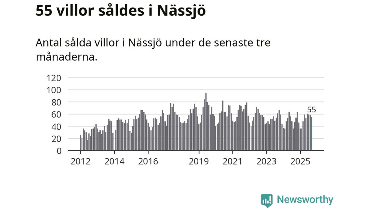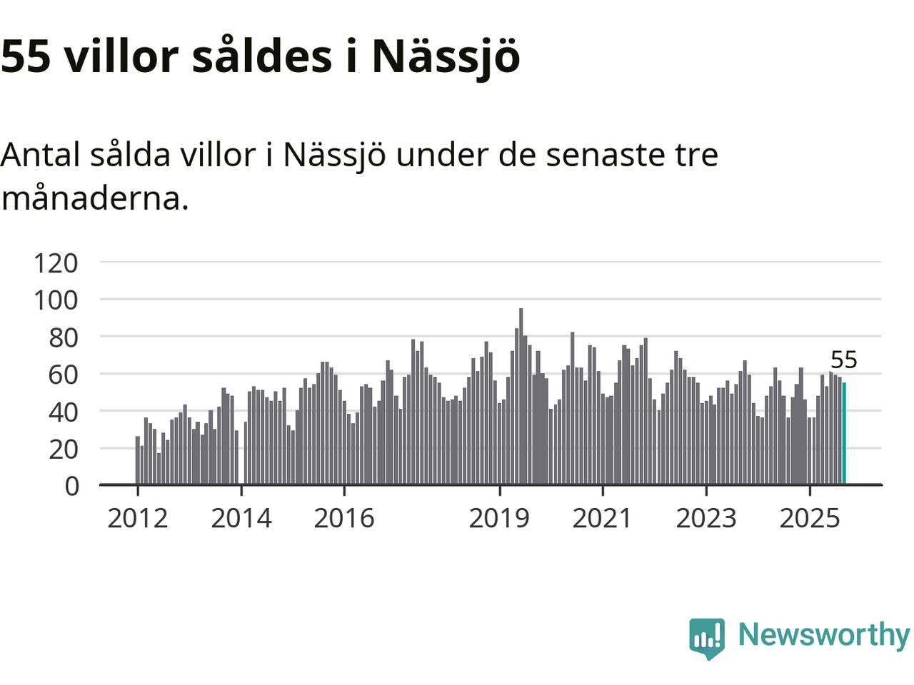 Sammanlagt såldes 55 villor i Nässjö kommun mellan juli och september till ett genomsnittligt pris på 2,1 miljoner kronor. I fjol gjordes 47 affärer vid den här tiden på året.