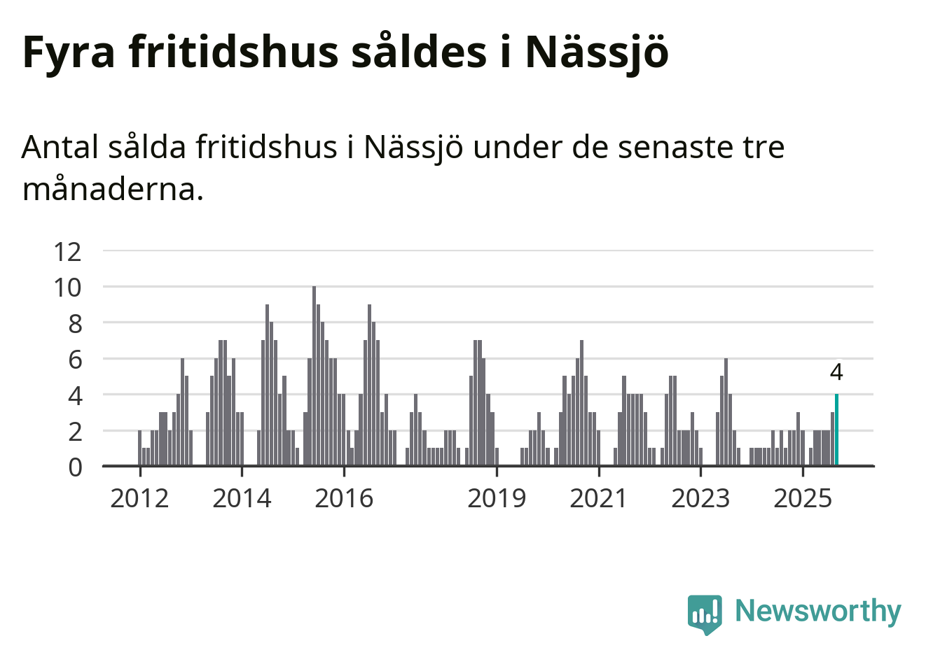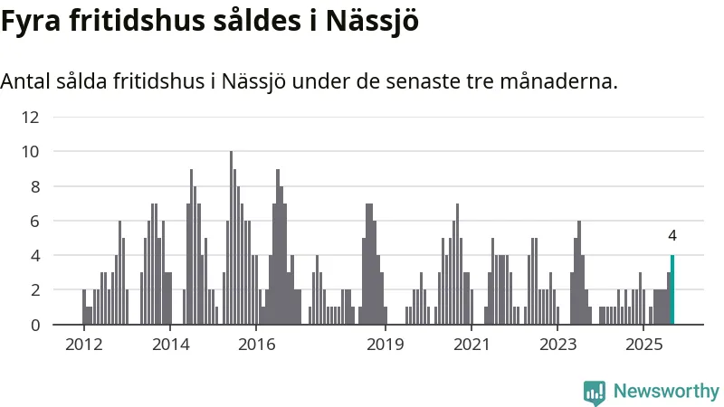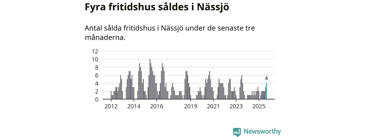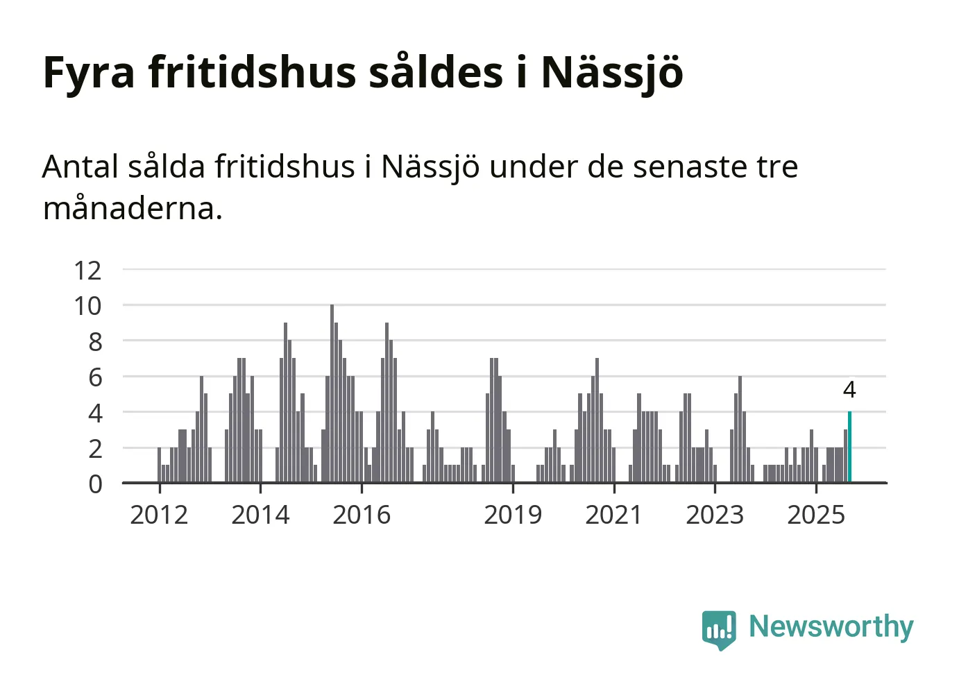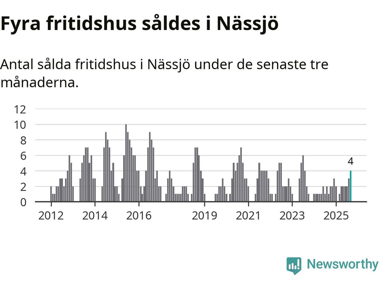 Mellan juli och september gjordes sammanlagt fyra affärer med fritidshus i Nässjö kommun. Det kan jämföras med ett vid motsvarande tid i fjol.