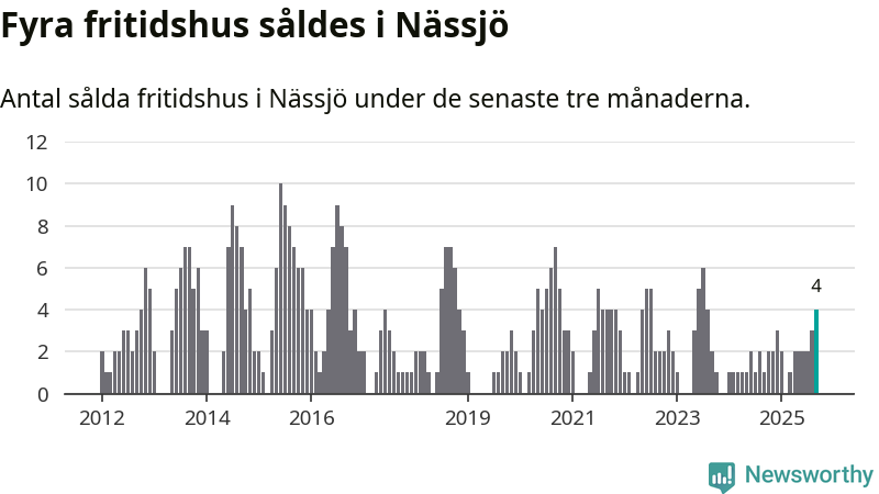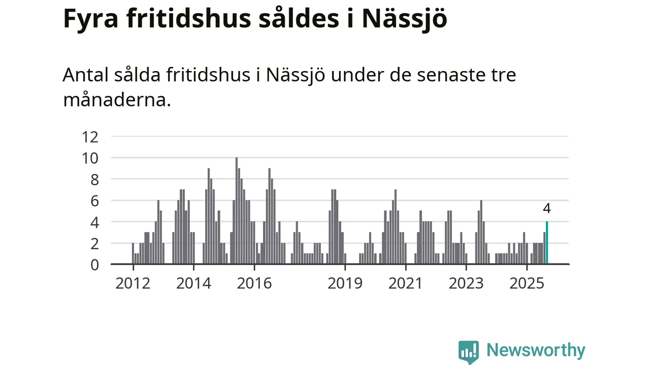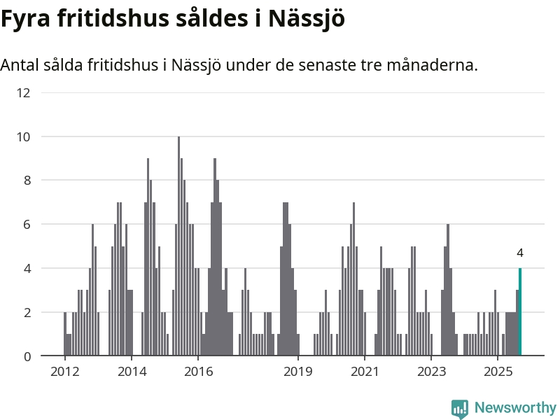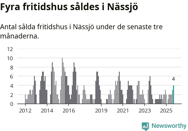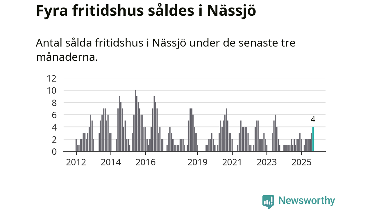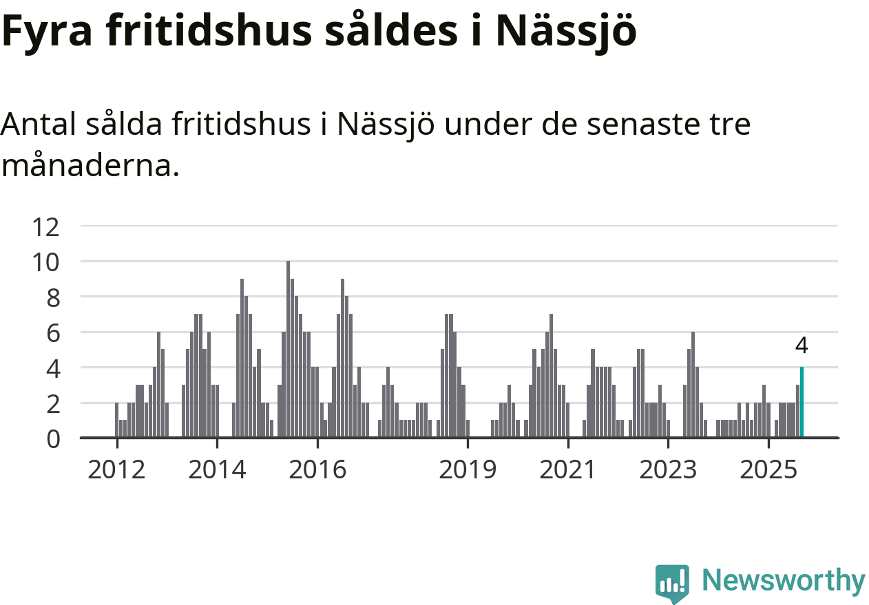 Mellan juli och september gjordes sammanlagt fyra affärer med fritidshus i Nässjö kommun. Det kan jämföras med ett vid motsvarande tid i fjol.