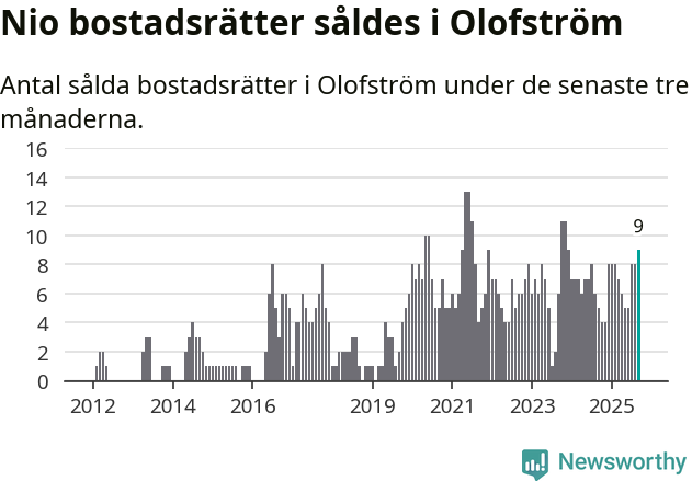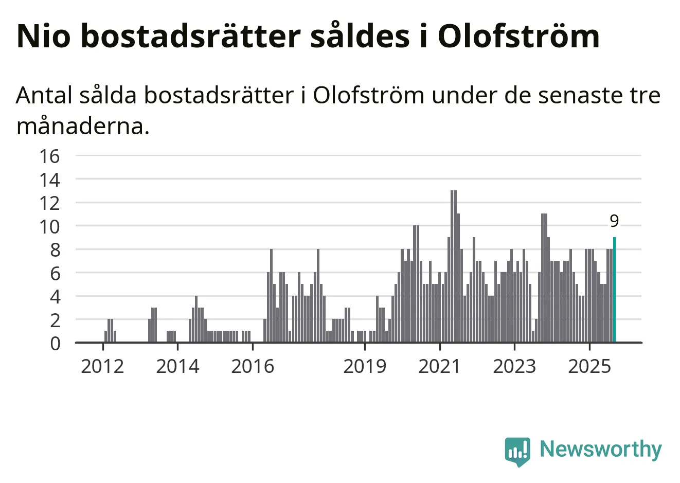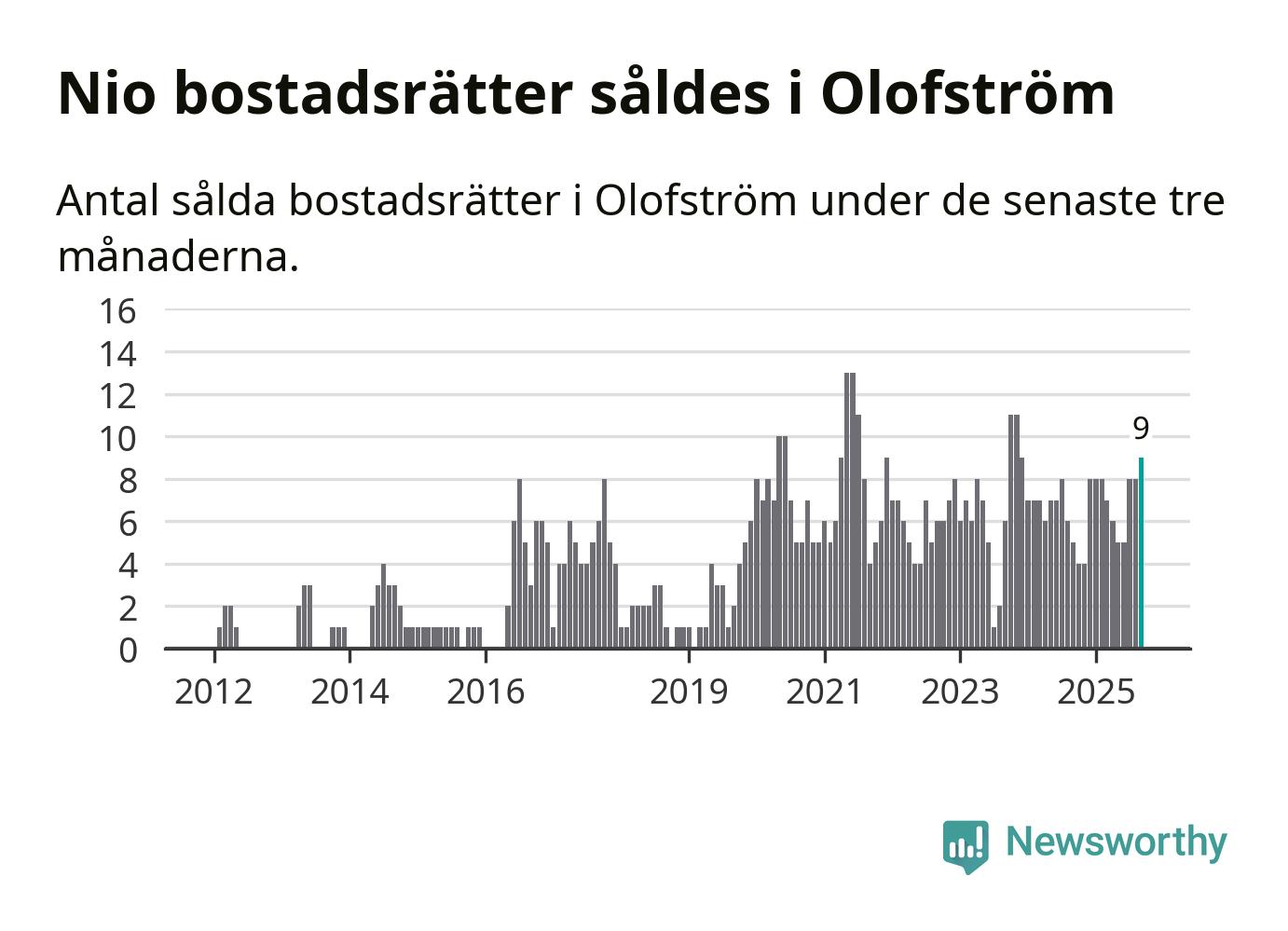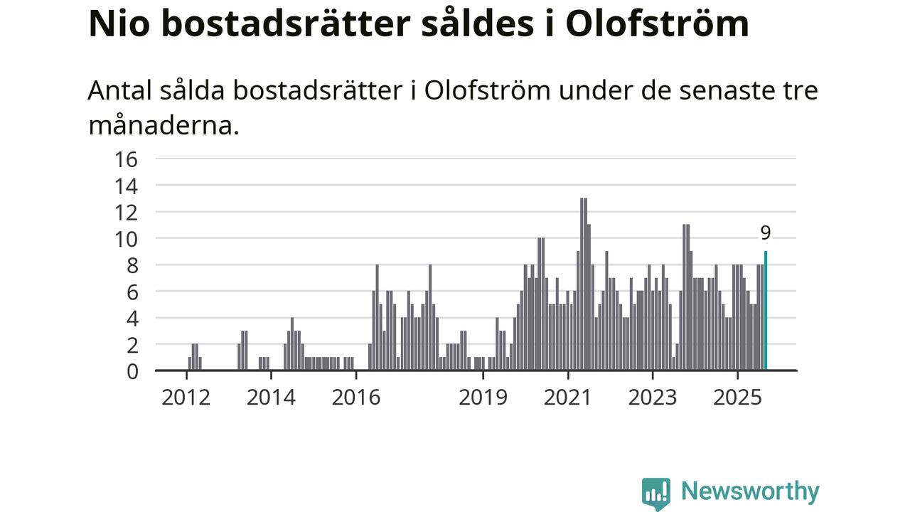 Mellan juli och september gjordes sammanlagt nio affärer med bostadsrätter i Olofströms kommun. Det kan jämföras med fem vid motsvarande tid i fjol.