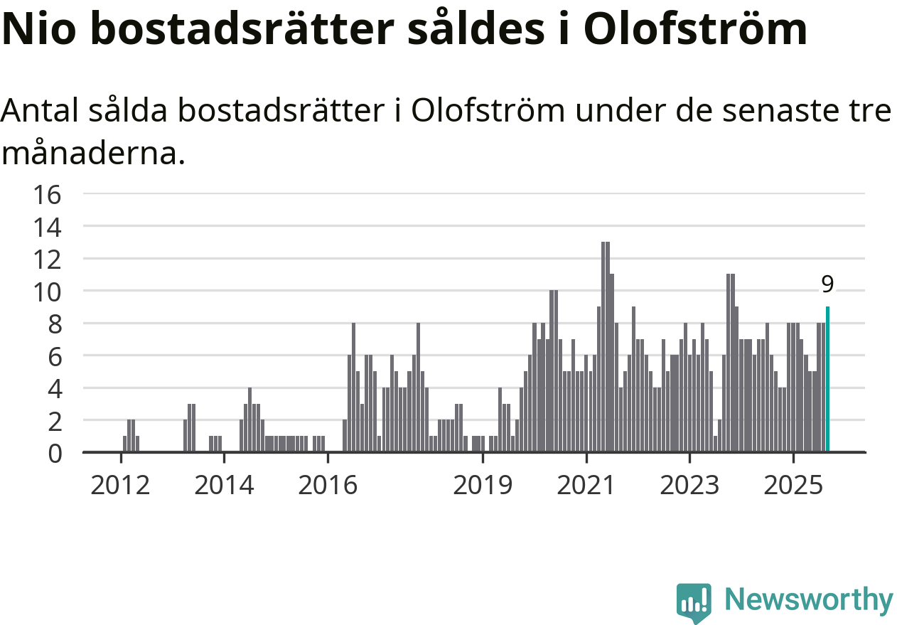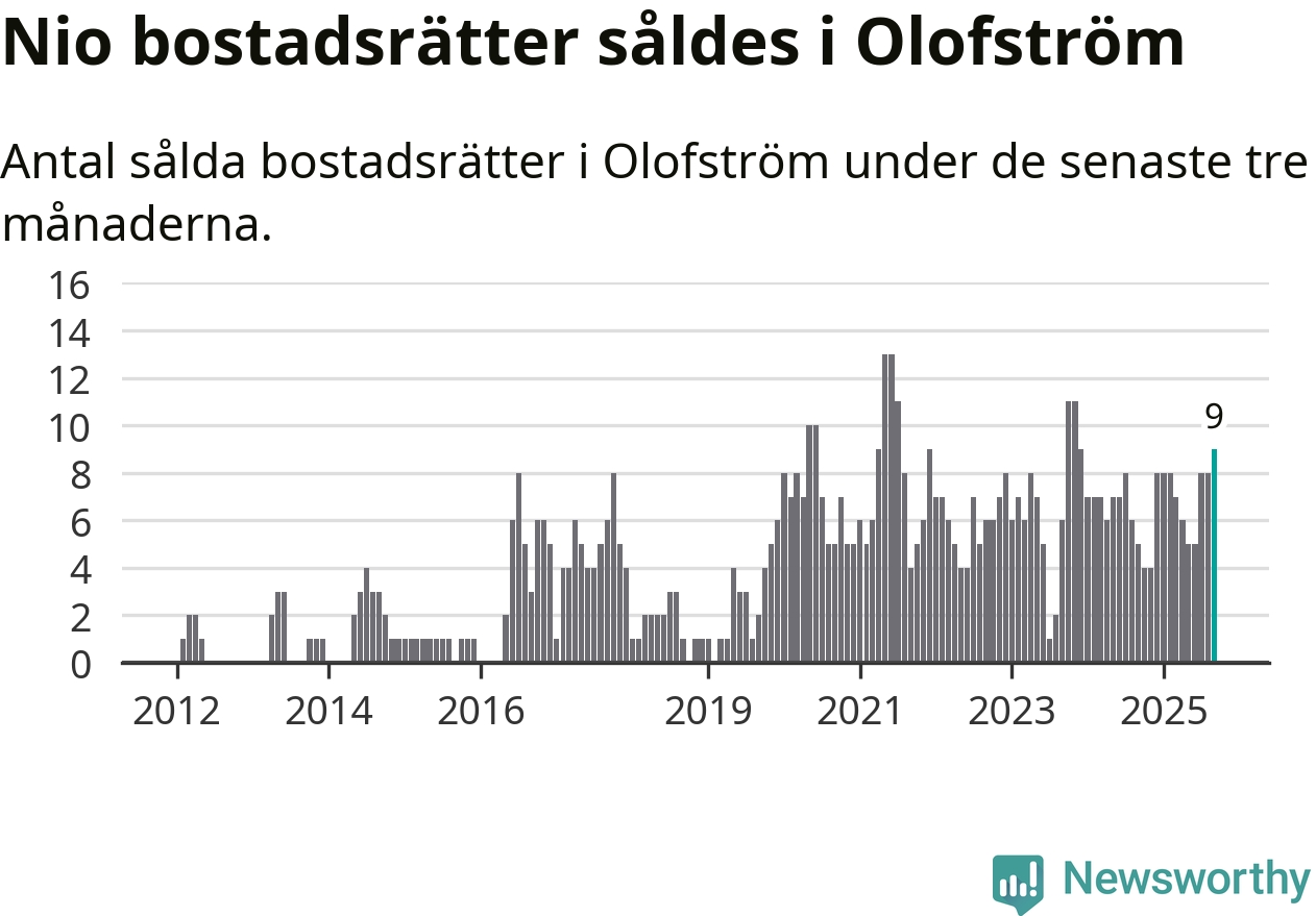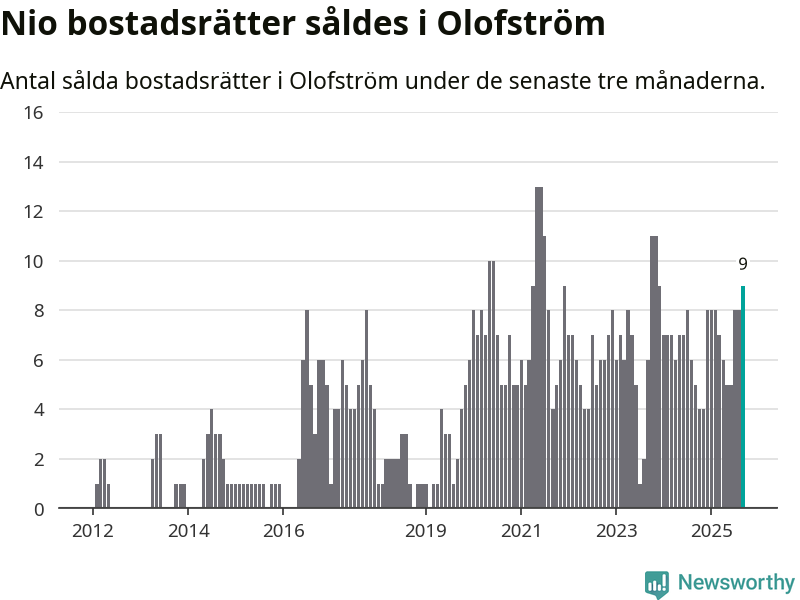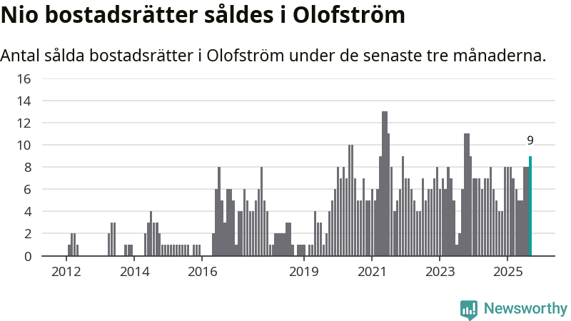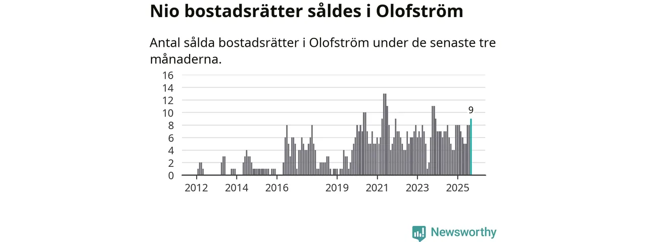 Mellan juli och september gjordes sammanlagt nio affärer med bostadsrätter i Olofströms kommun. Det kan jämföras med fem vid motsvarande tid i fjol.