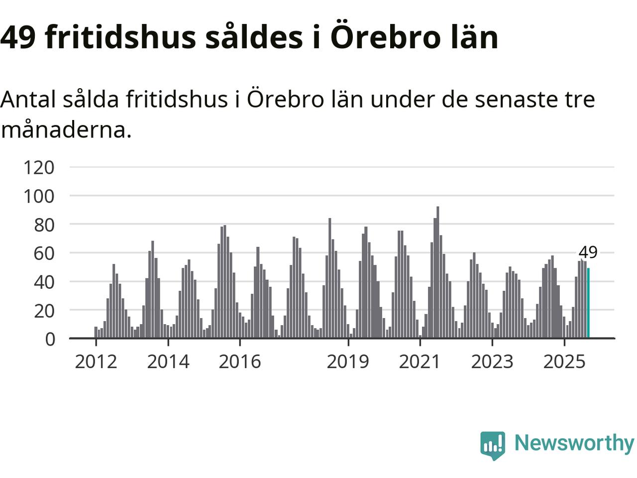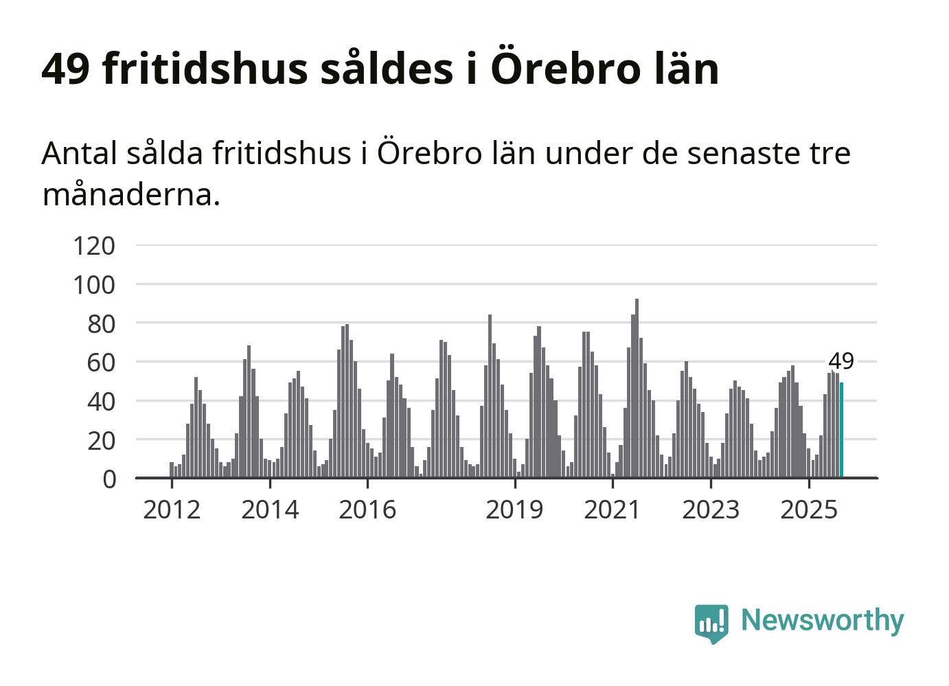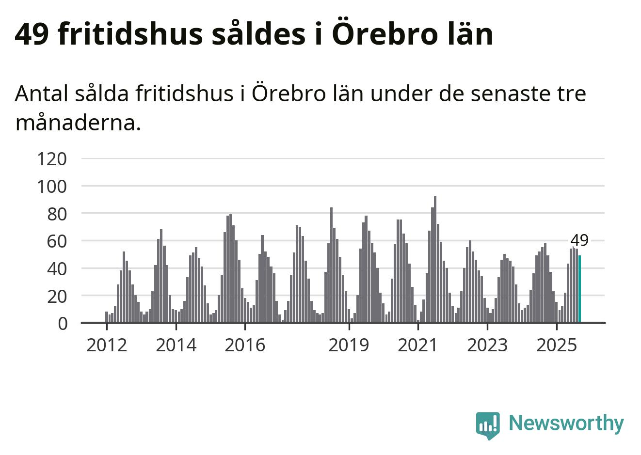 Sammanlagt såldes 49 fritidshus i Örebro län mellan juli och september till ett genomsnittligt pris på 1,3 miljoner kronor. I fjol gjordes 58 affärer vid den här tiden på året.