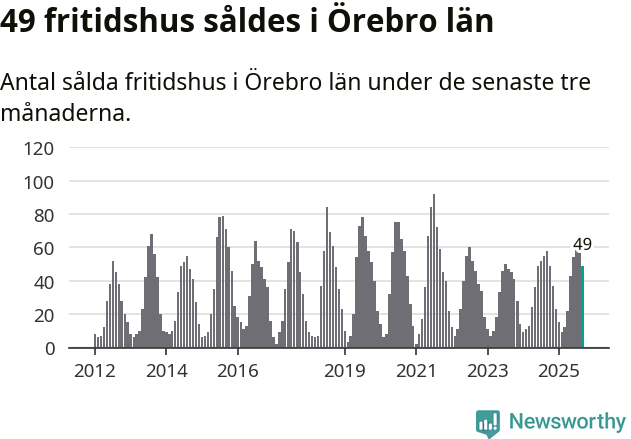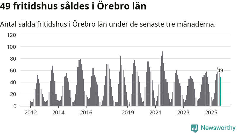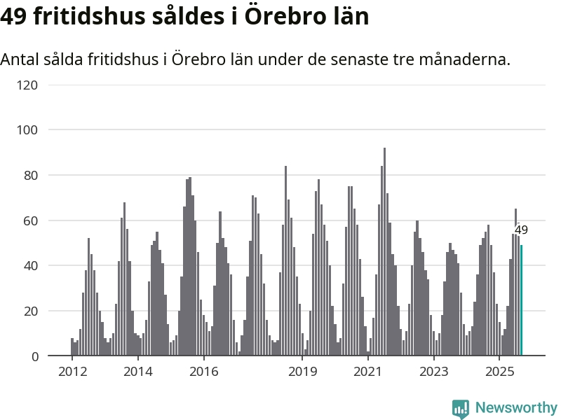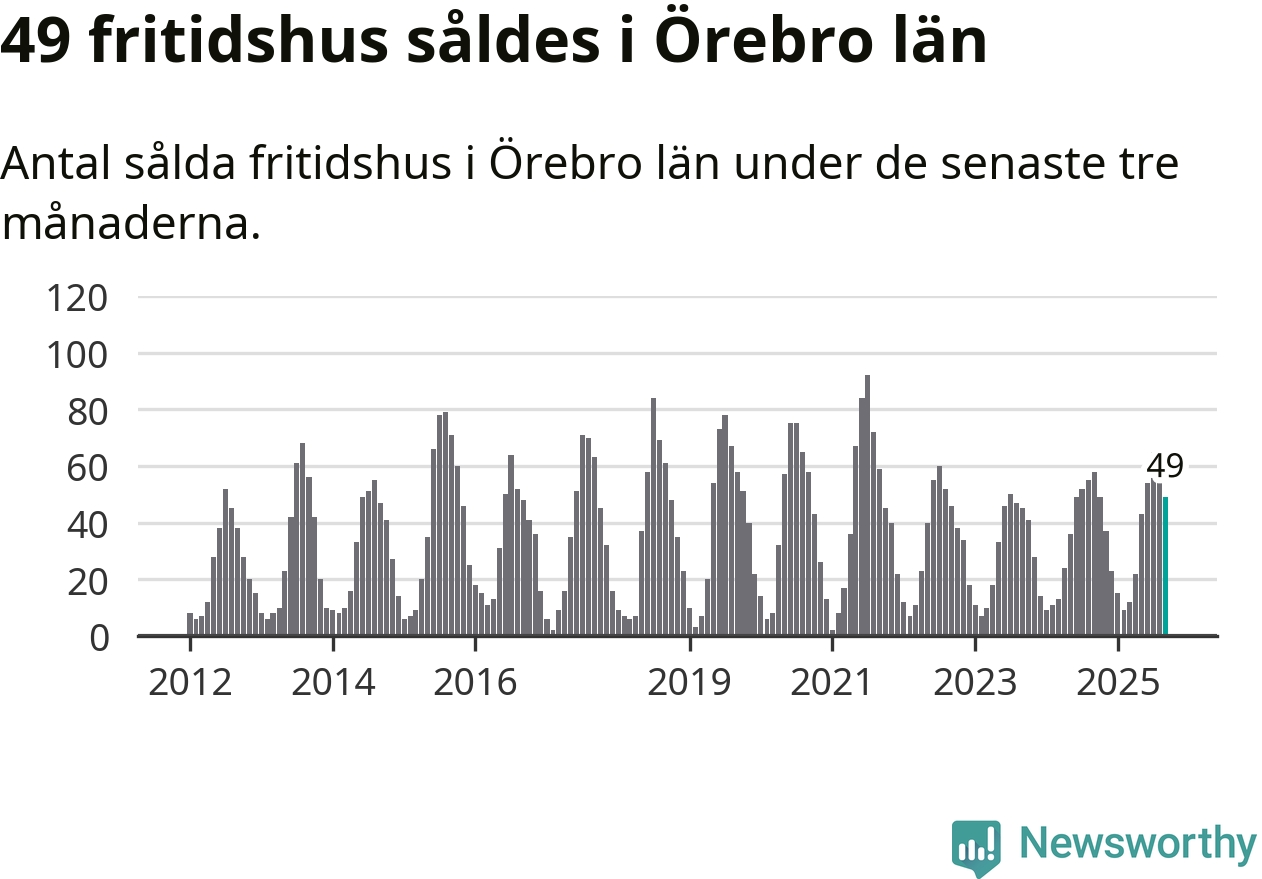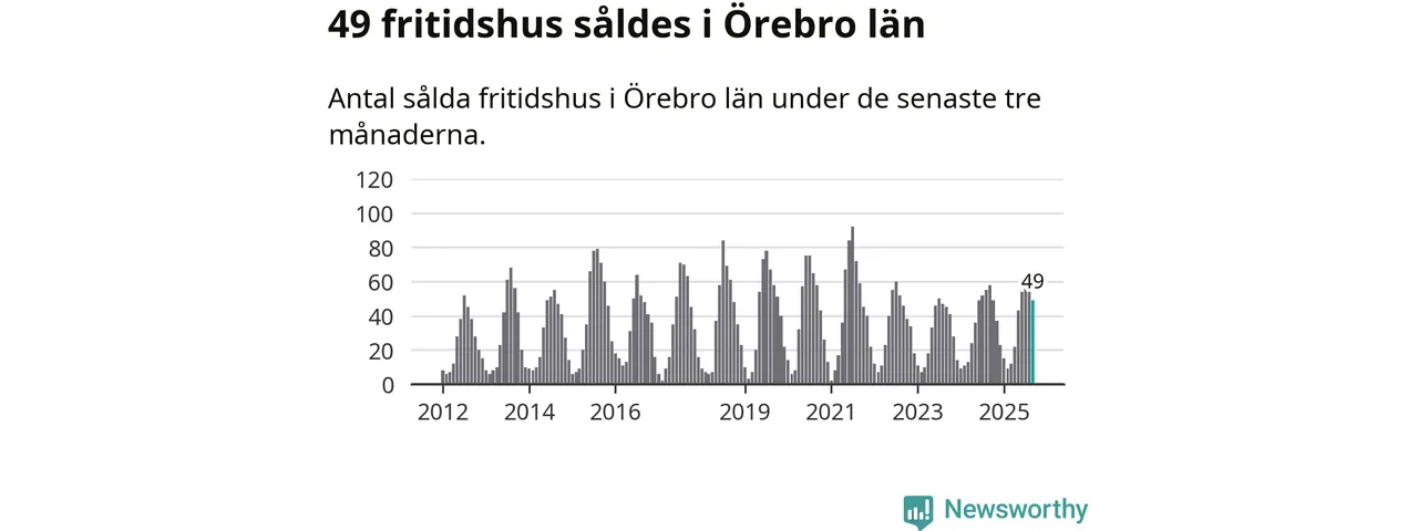 Sammanlagt såldes 49 fritidshus i Örebro län mellan juli och september till ett genomsnittligt pris på 1,3 miljoner kronor. I fjol gjordes 58 affärer vid den här tiden på året.