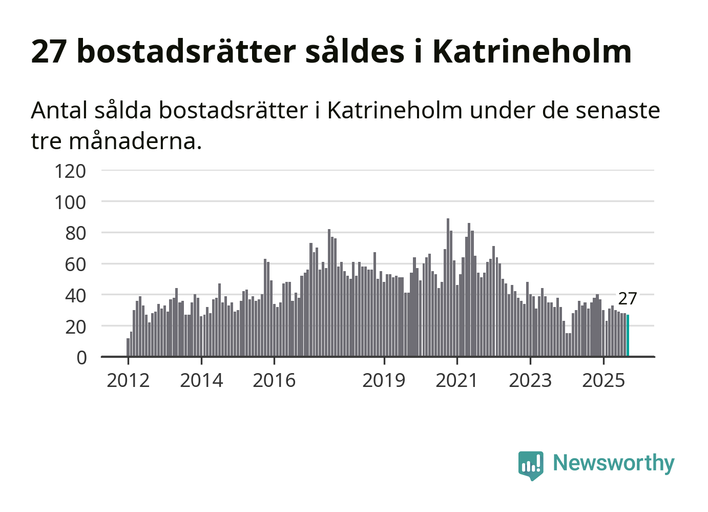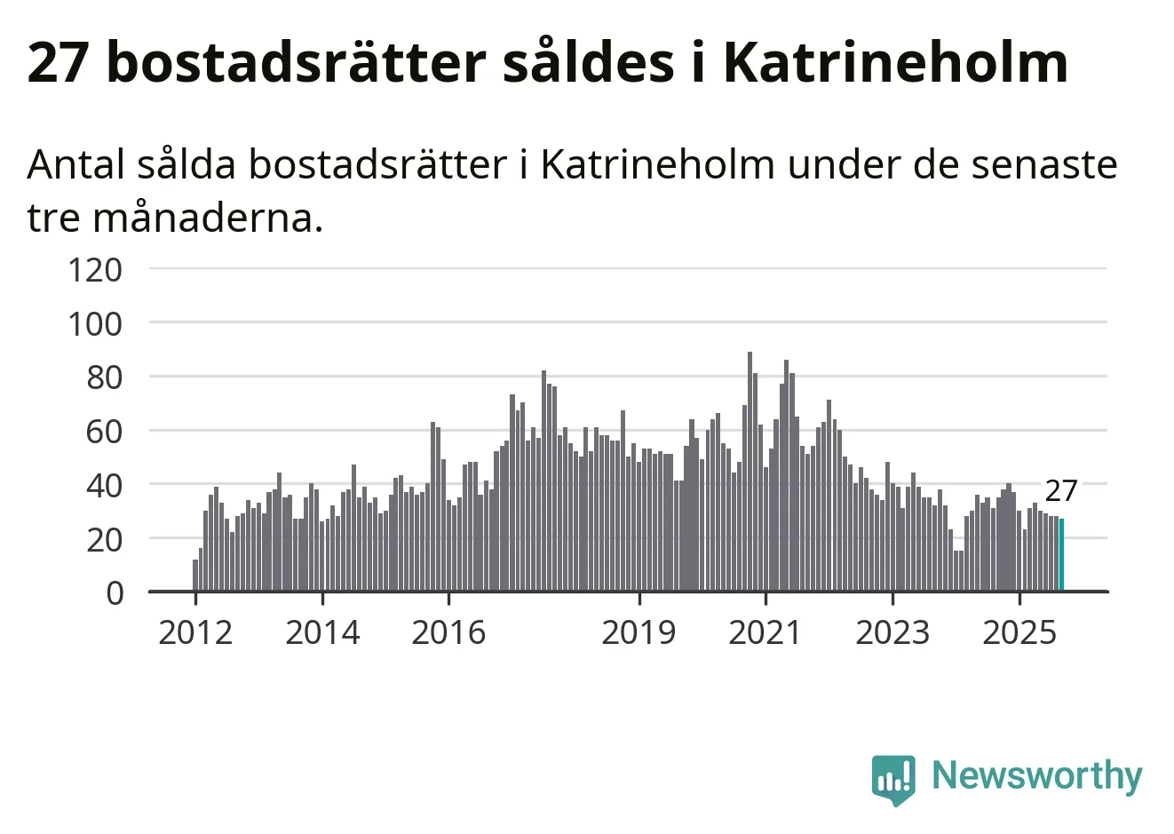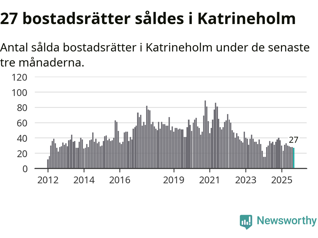 Graf: Antal sålda bostadsrätter i Katrineholms kommun