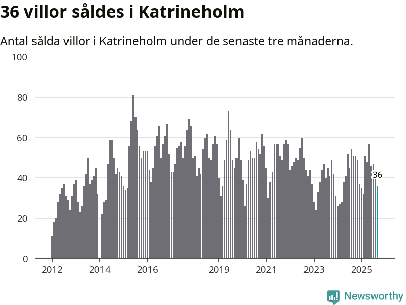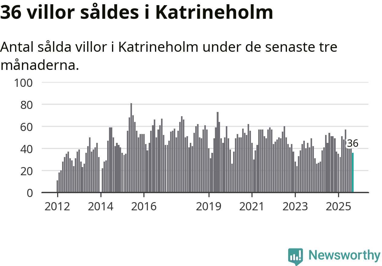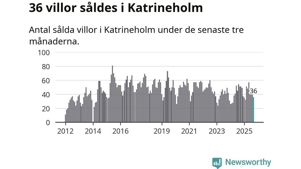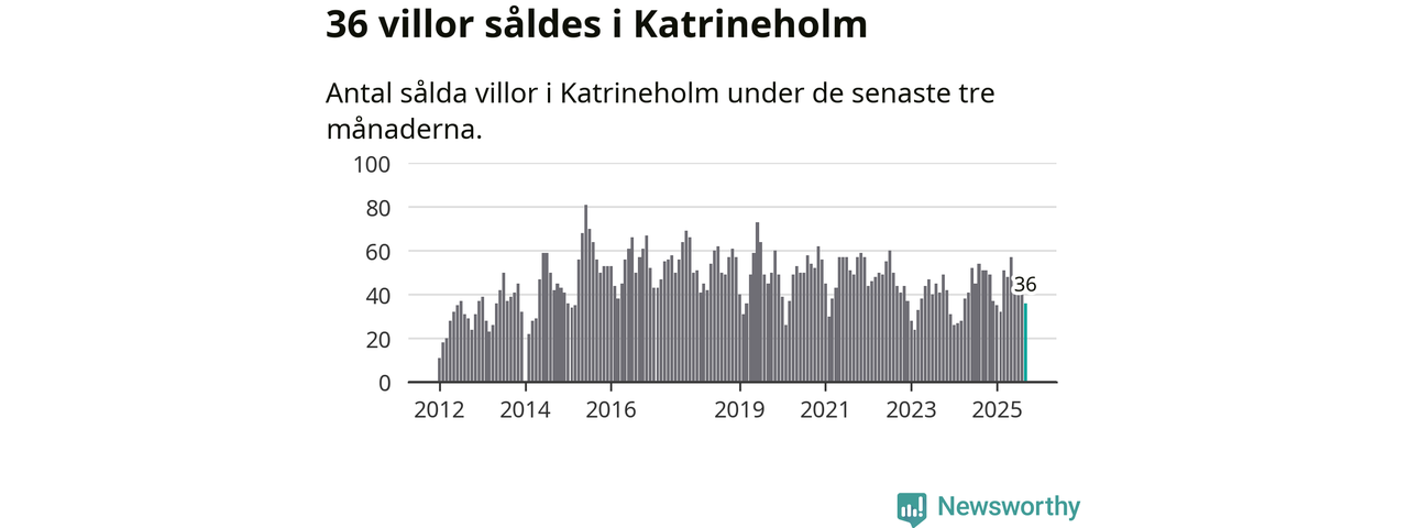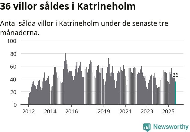 Sammanlagt såldes 36 villor i Katrineholms kommun mellan juli och september till ett genomsnittligt pris på 2,8 miljoner kronor. I fjol gjordes 51 affärer vid den här tiden på året.