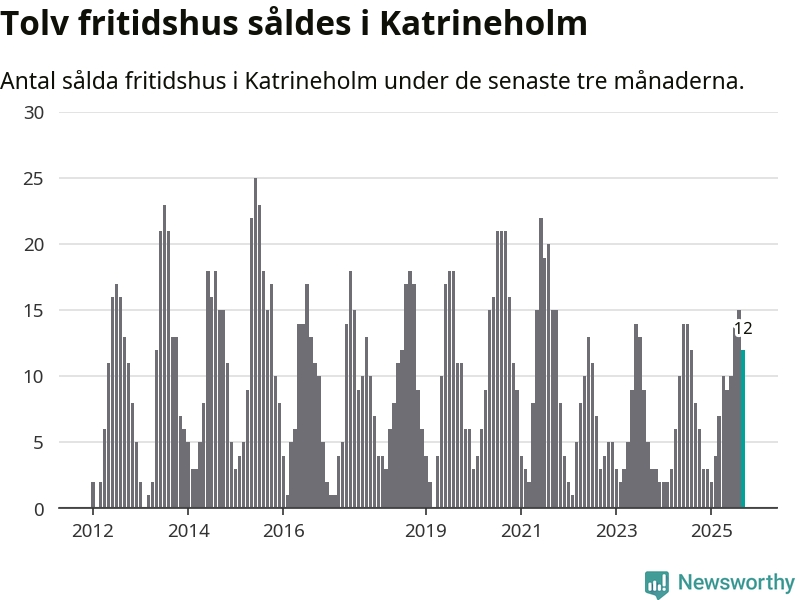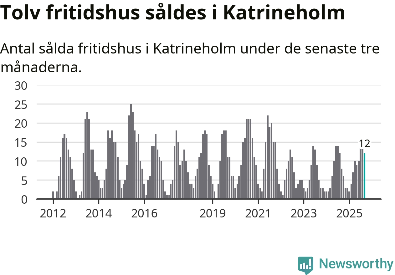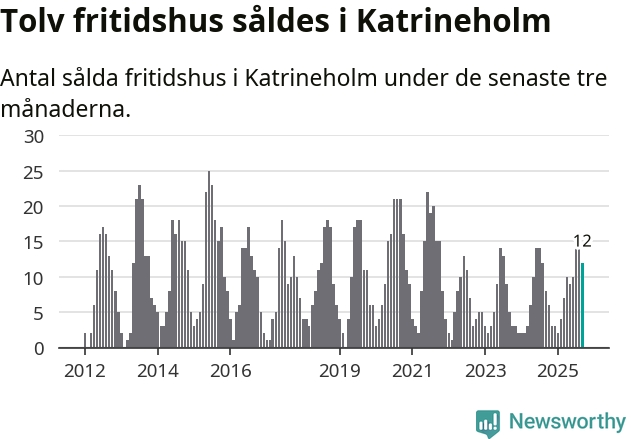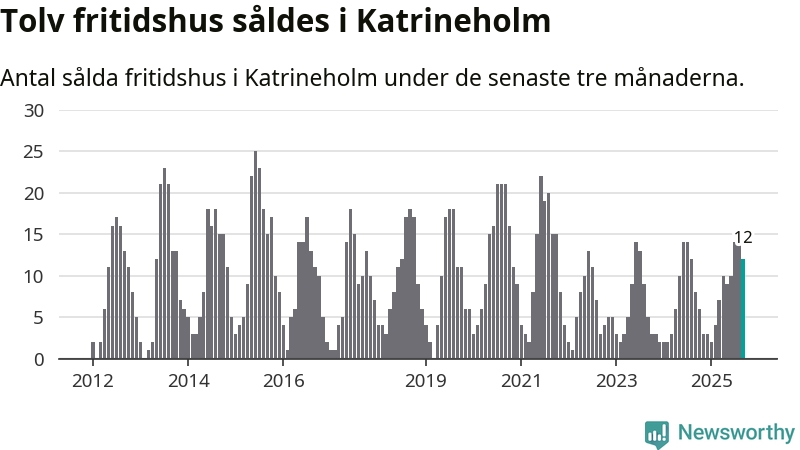 Sammanlagt såldes tolv fritidshus i Katrineholms kommun mellan juli och september till ett genomsnittligt pris på 2,0 miljoner kronor. I fjol gjordes åtta affärer vid den här tiden på året.