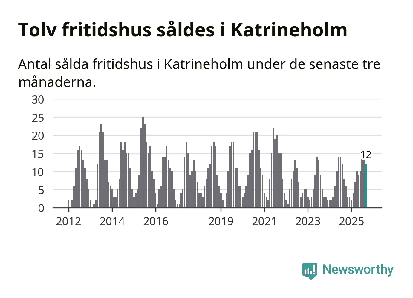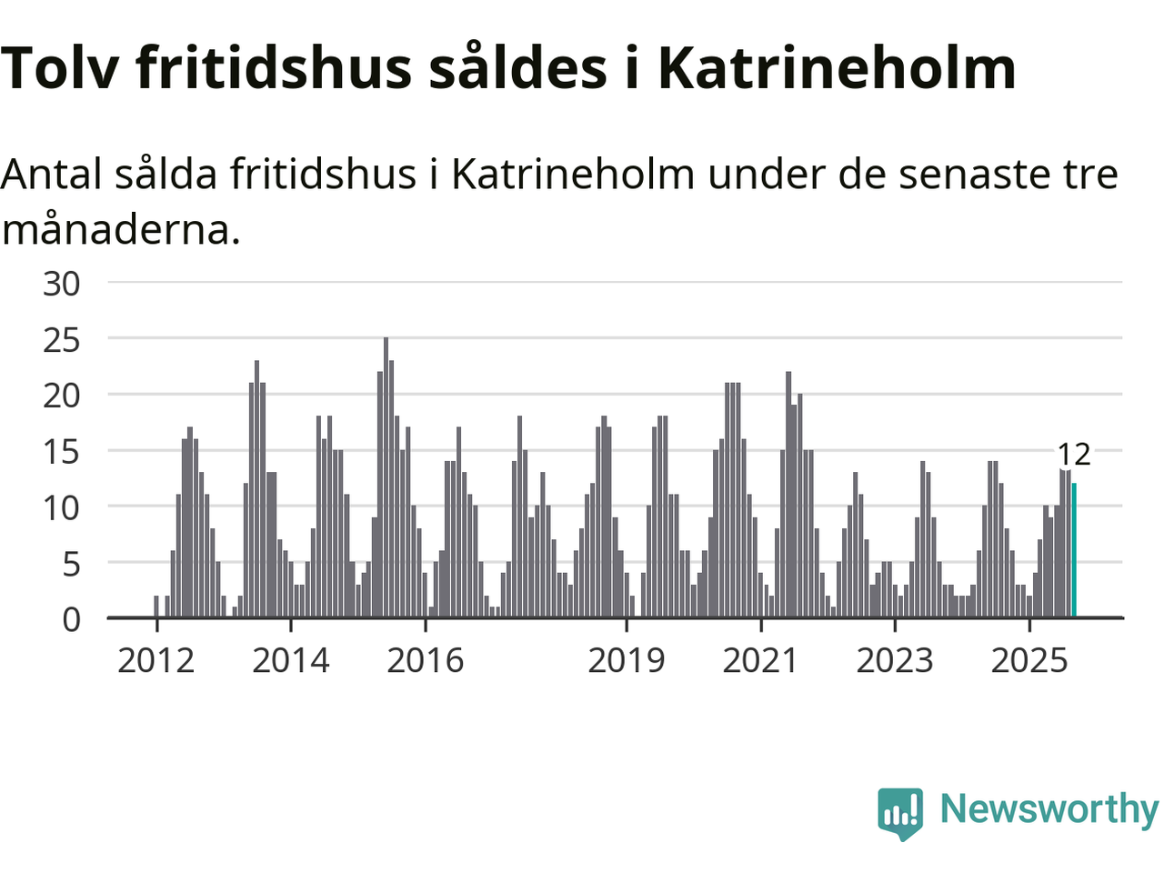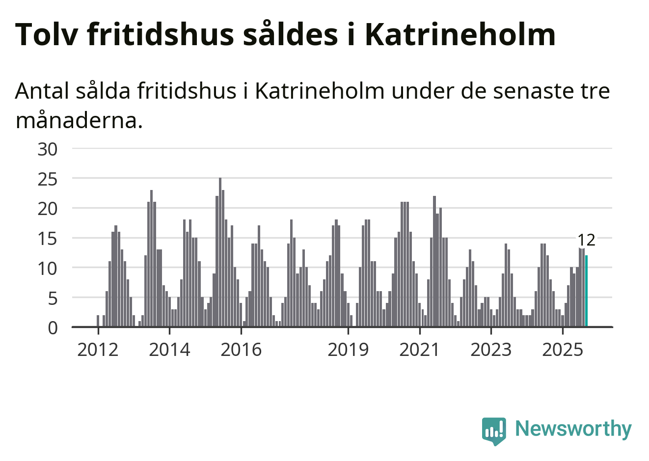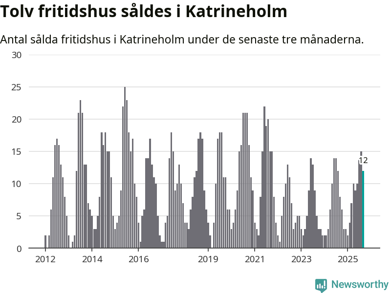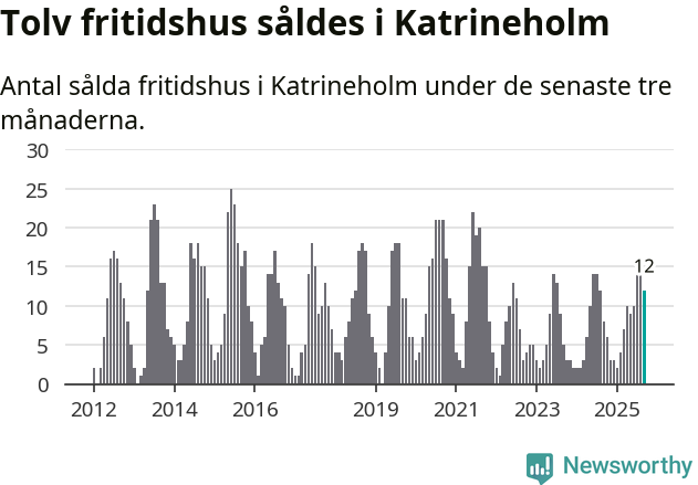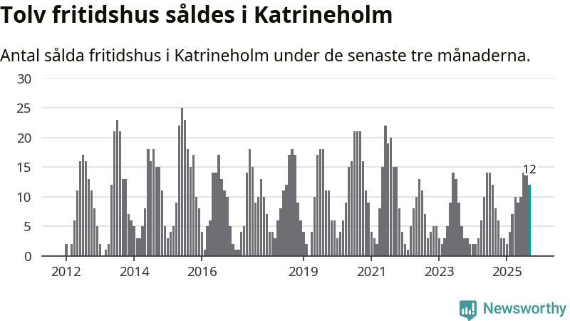 Graf: Antal sålda fritidshus i Katrineholms kommun