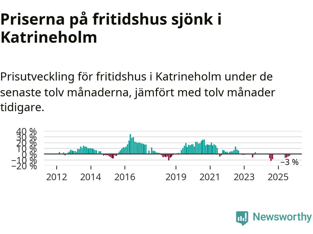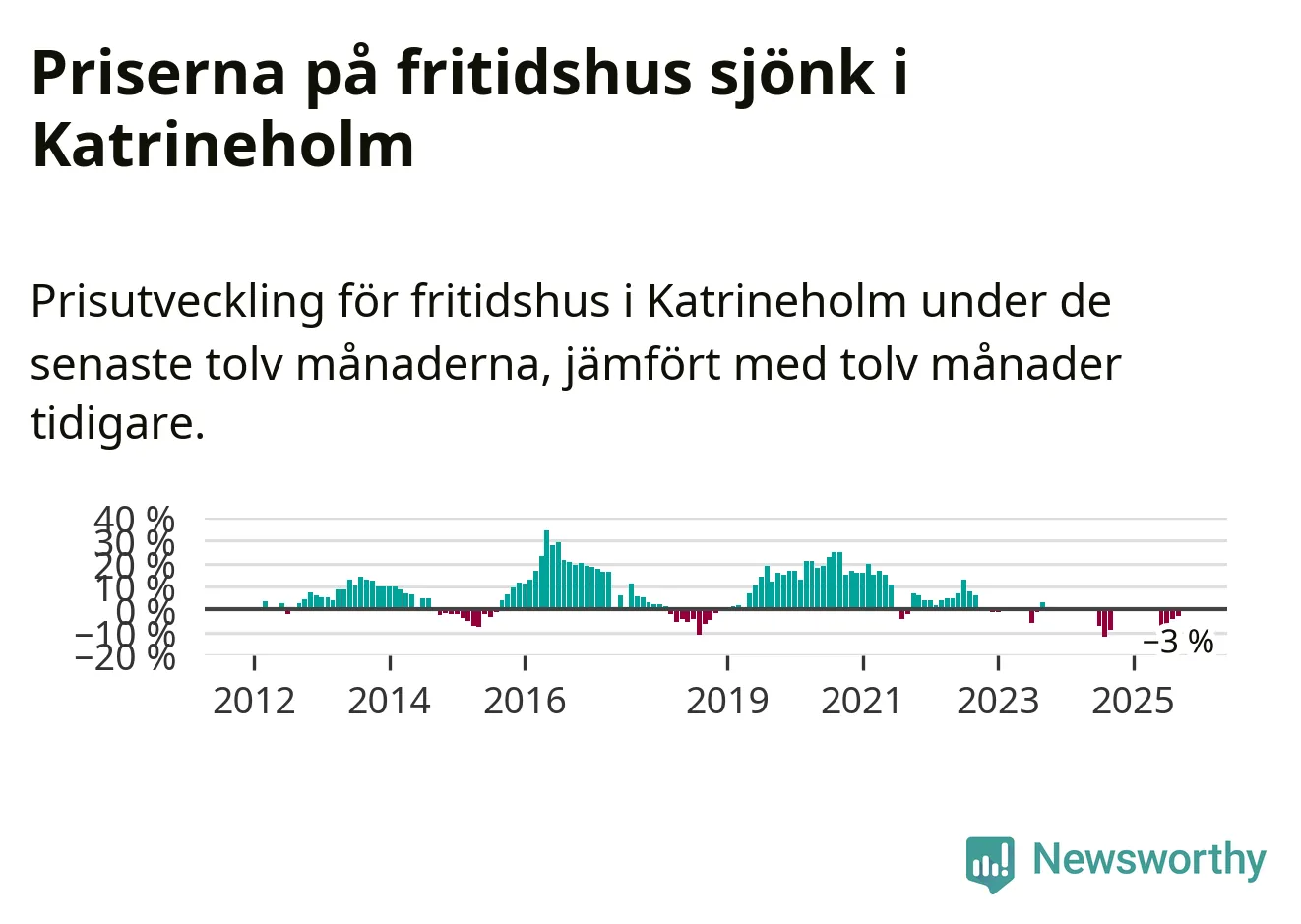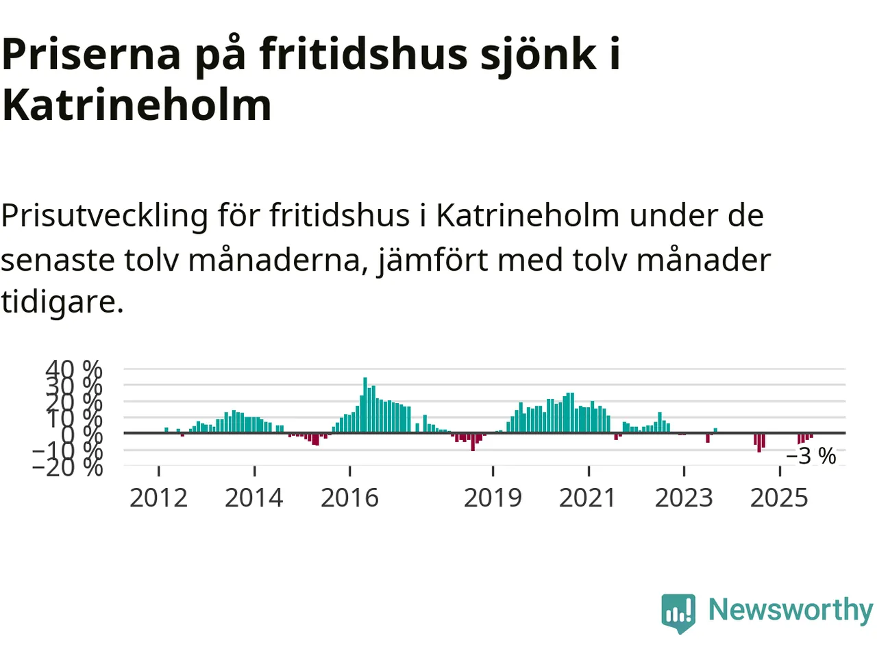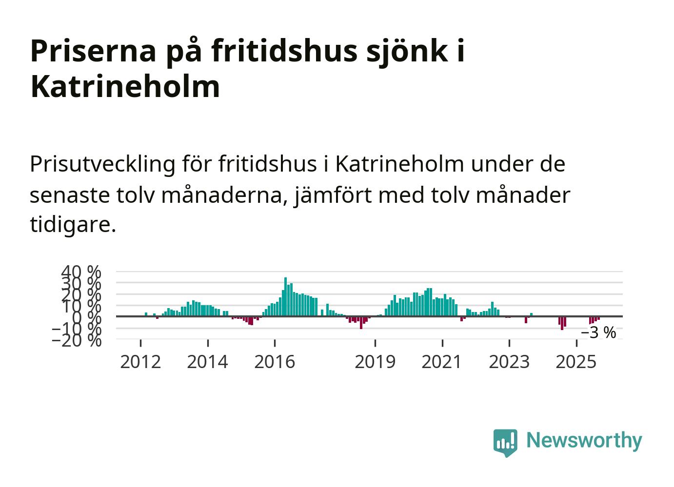 Priserna på fritidshus har gått ner i Katrineholms kommun. Medelpriset på försäljningarna under de senaste tolv månaderna visar på en nedgång med 3 procent.