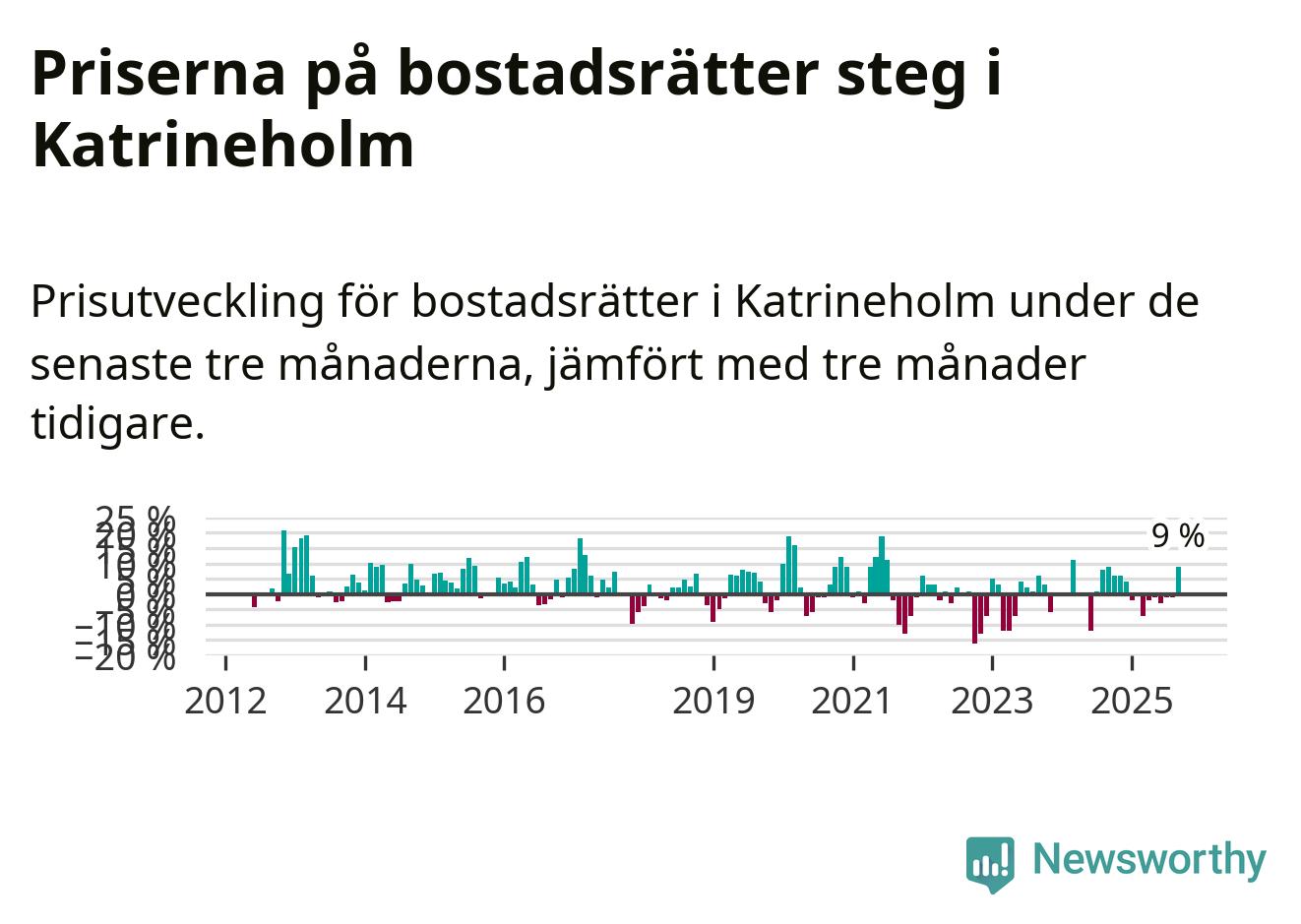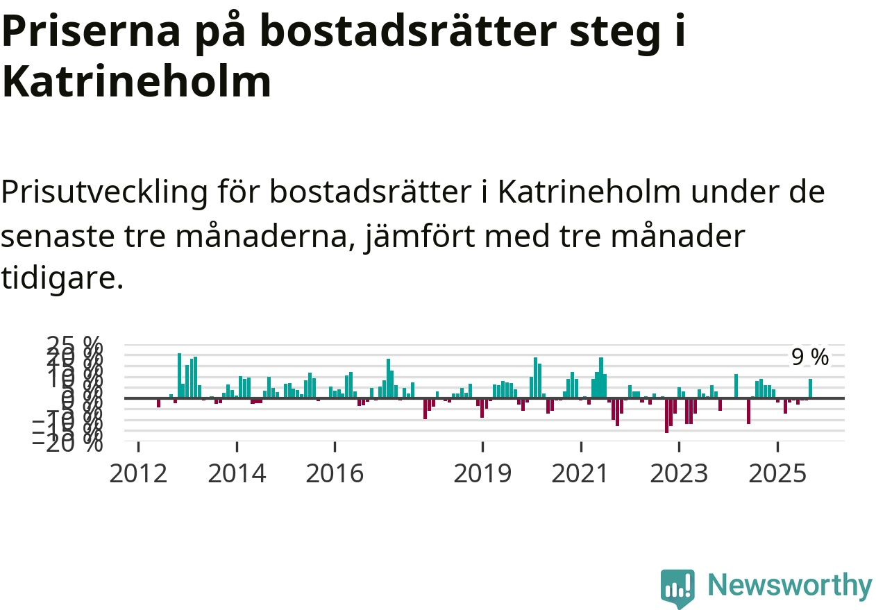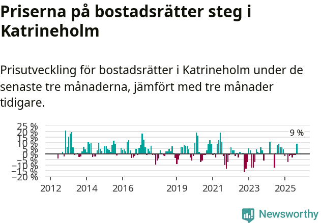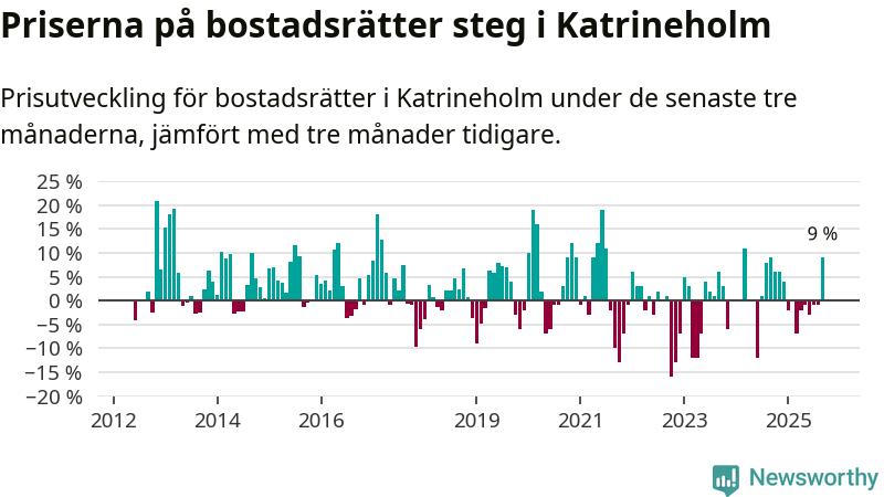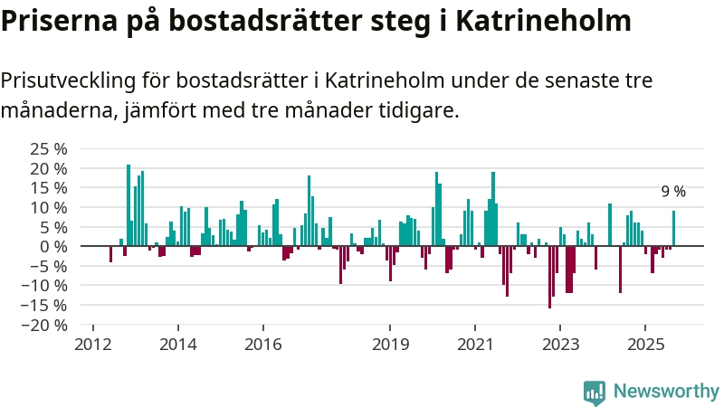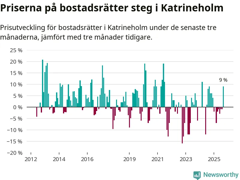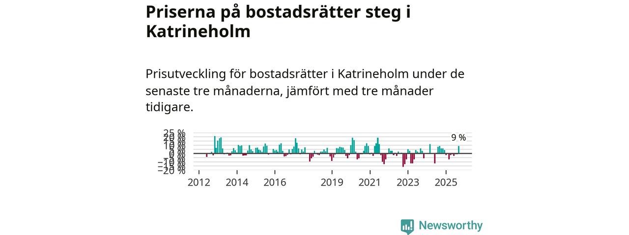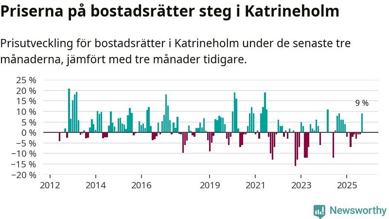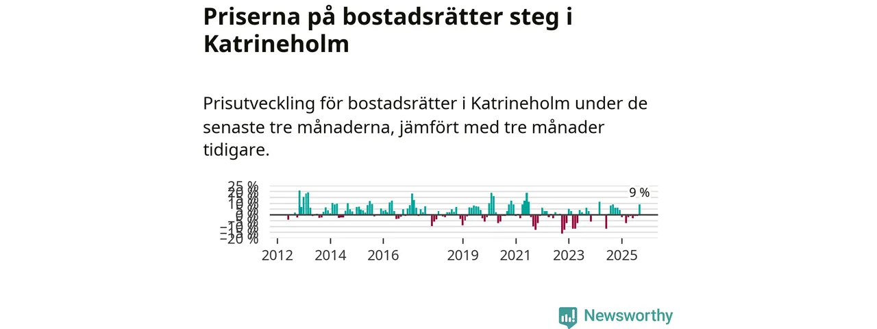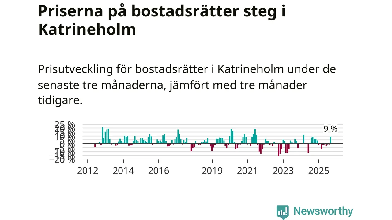 Sedan december 2024 har priserna på bostadsrätter sjunkit i Katrineholms kommun, men försäljningarna under de senaste tre månaderna visar på en uppgång med 9 procent.
