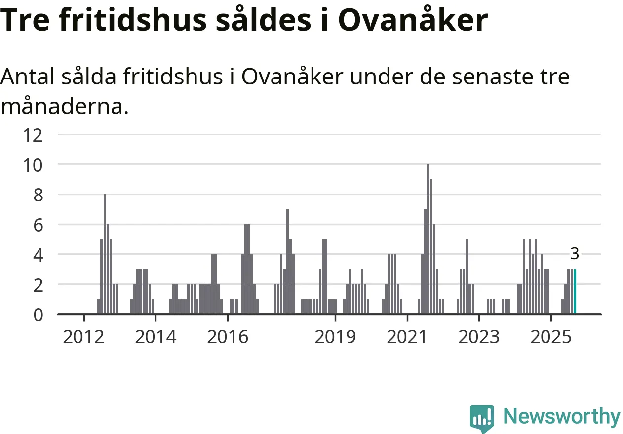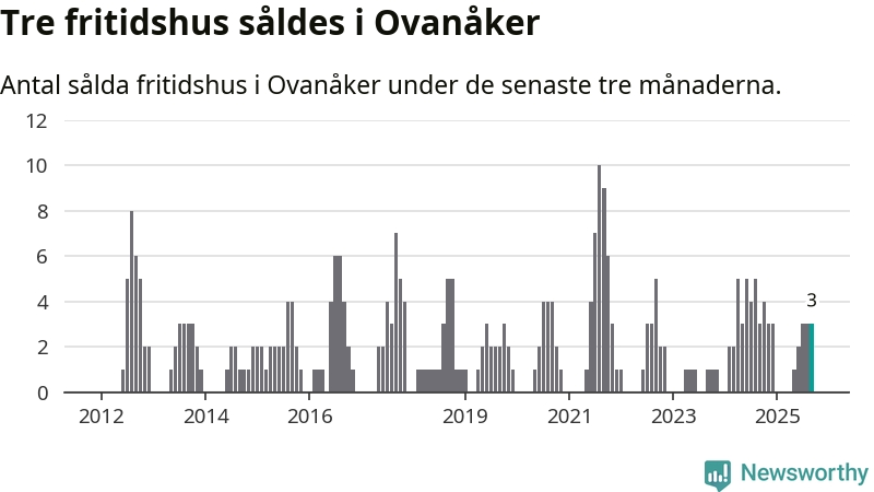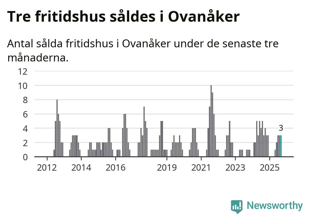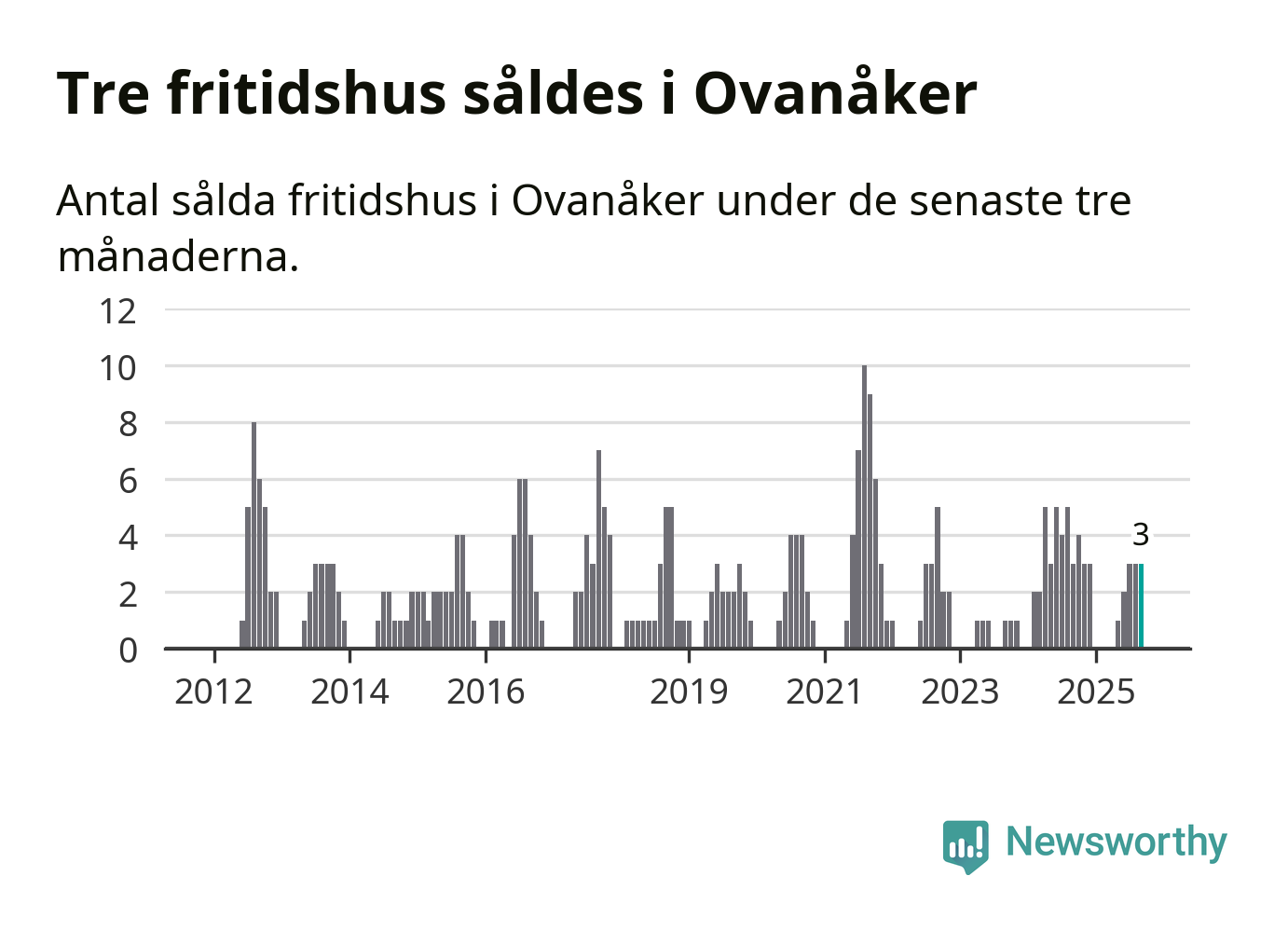 Mellan juli och september gjordes sammanlagt tre affärer med fritidshus i Ovanåkers kommun. Det är lika många affärer som vid motsvarande tid i fjol.