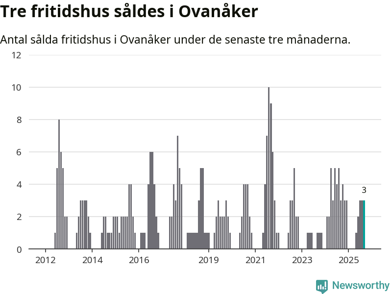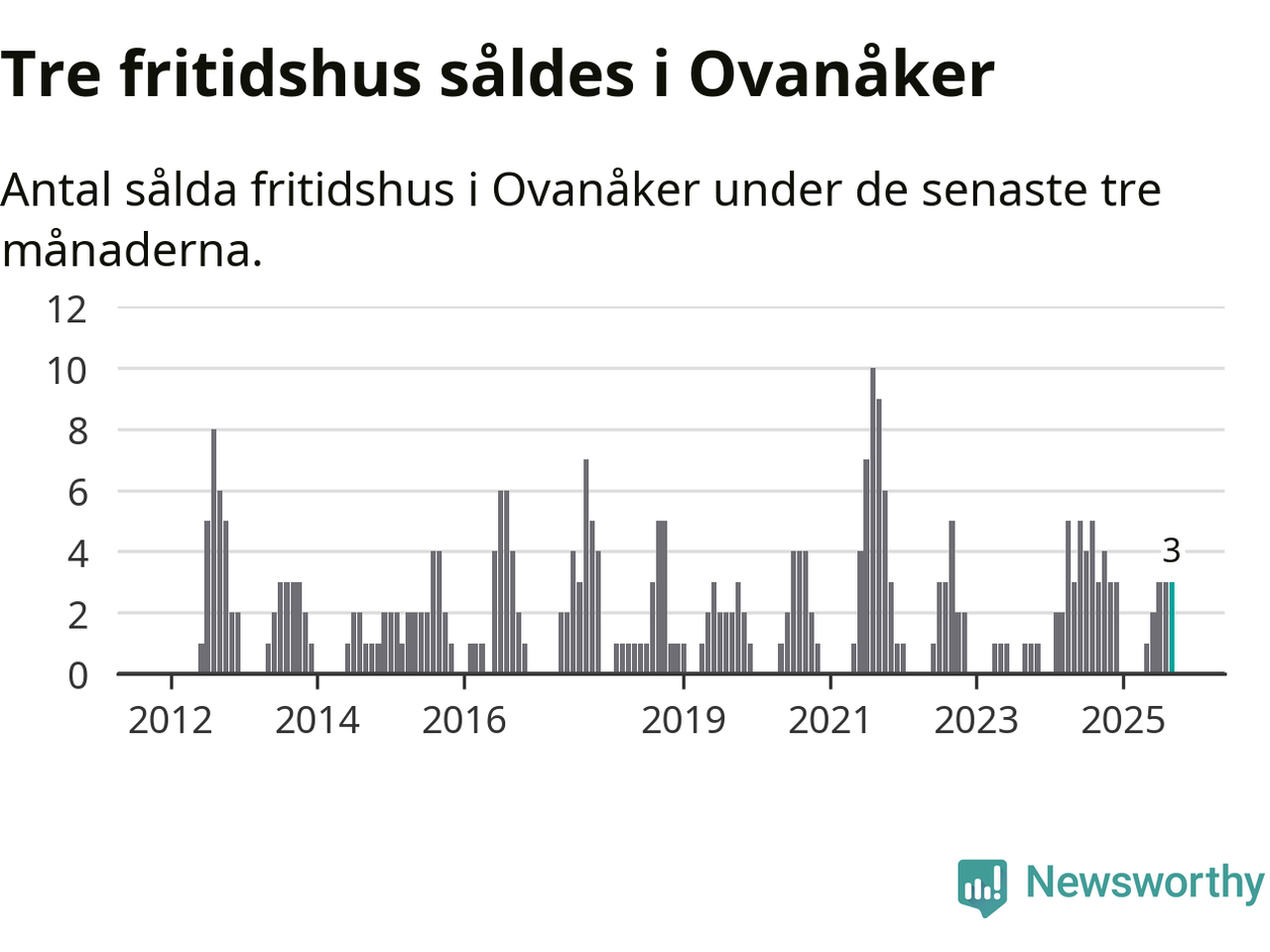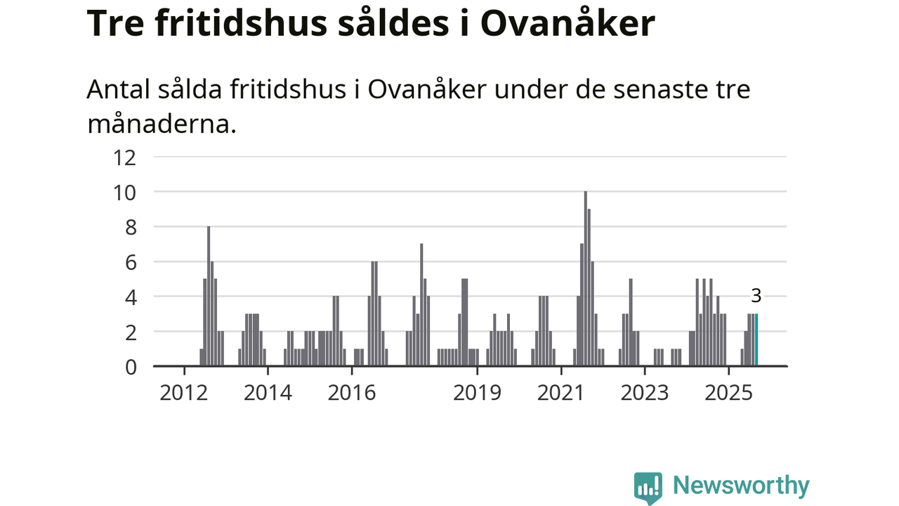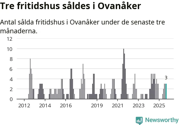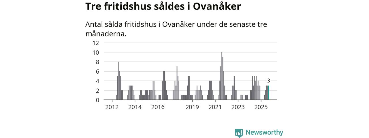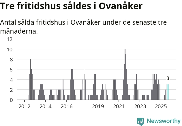 Mellan juli och september gjordes sammanlagt tre affärer med fritidshus i Ovanåkers kommun. Det är lika många affärer som vid motsvarande tid i fjol.