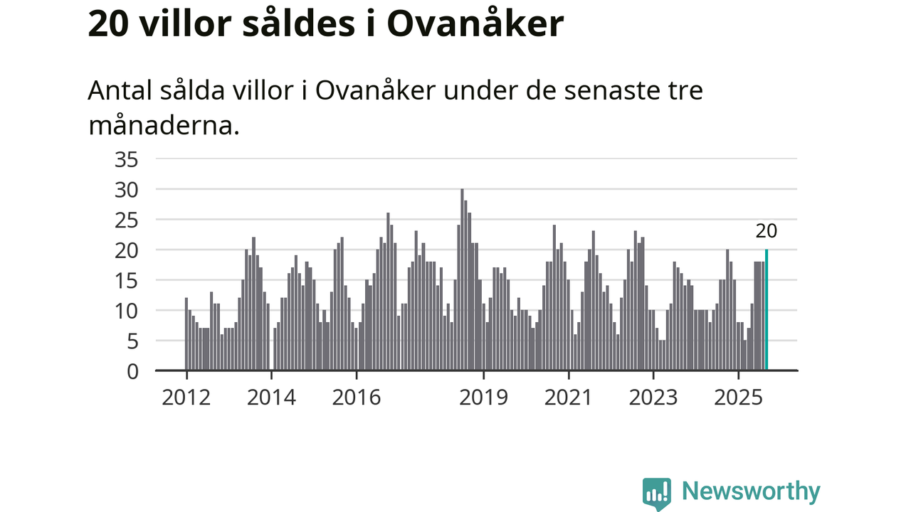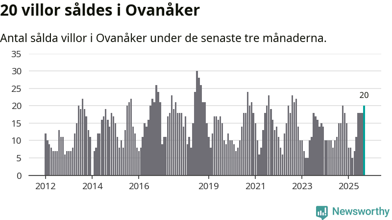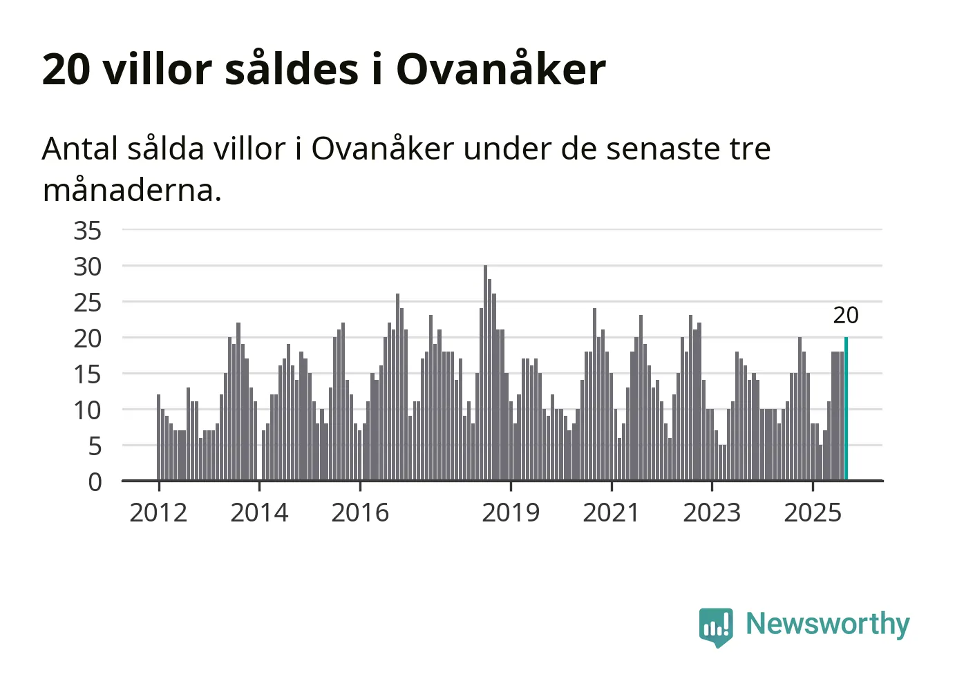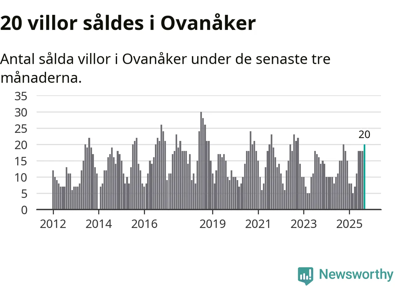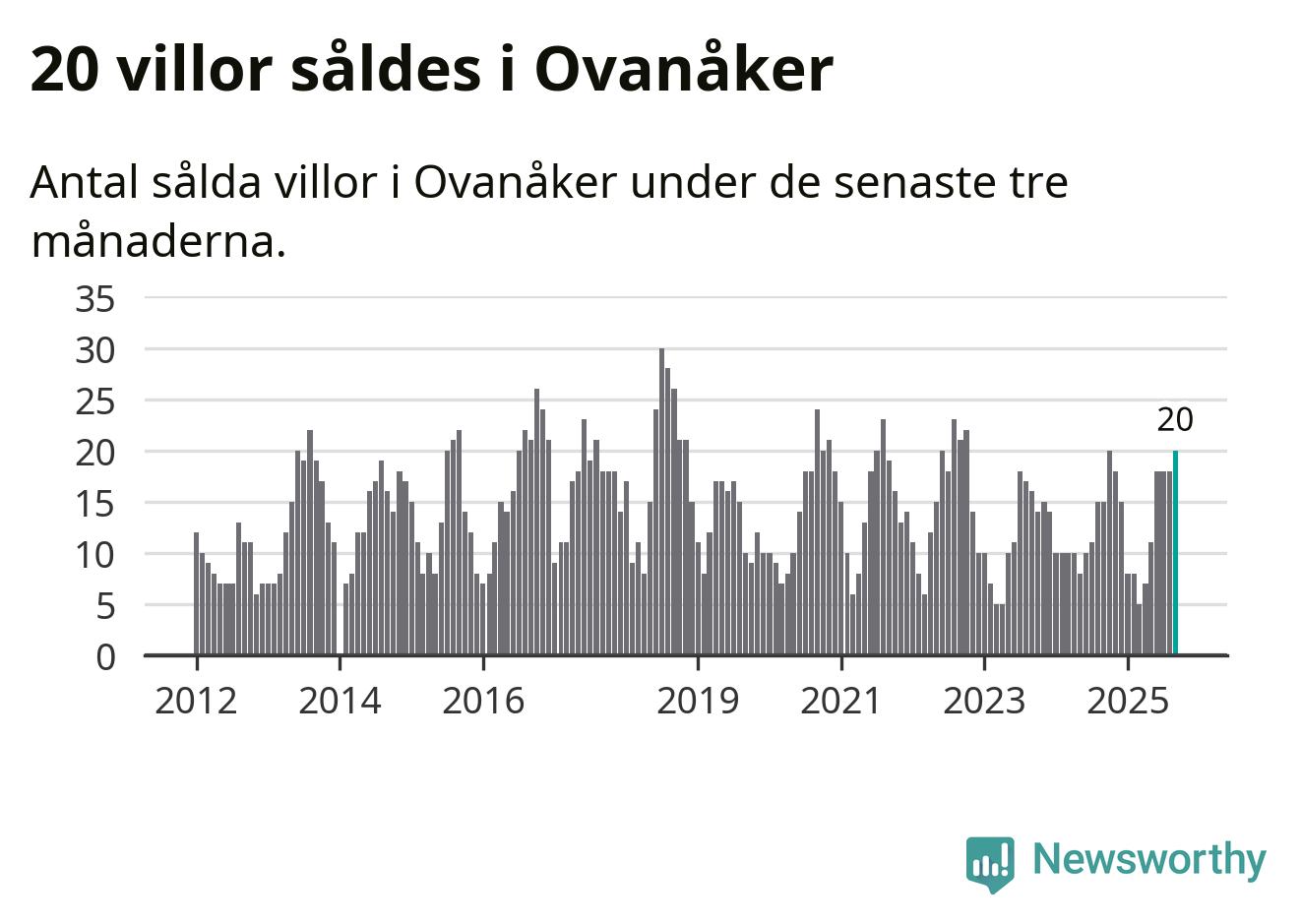 Mellan juli och september gjordes sammanlagt 20 affärer med villor i Ovanåkers kommun. Det kan jämföras med 15 vid motsvarande tid i fjol.