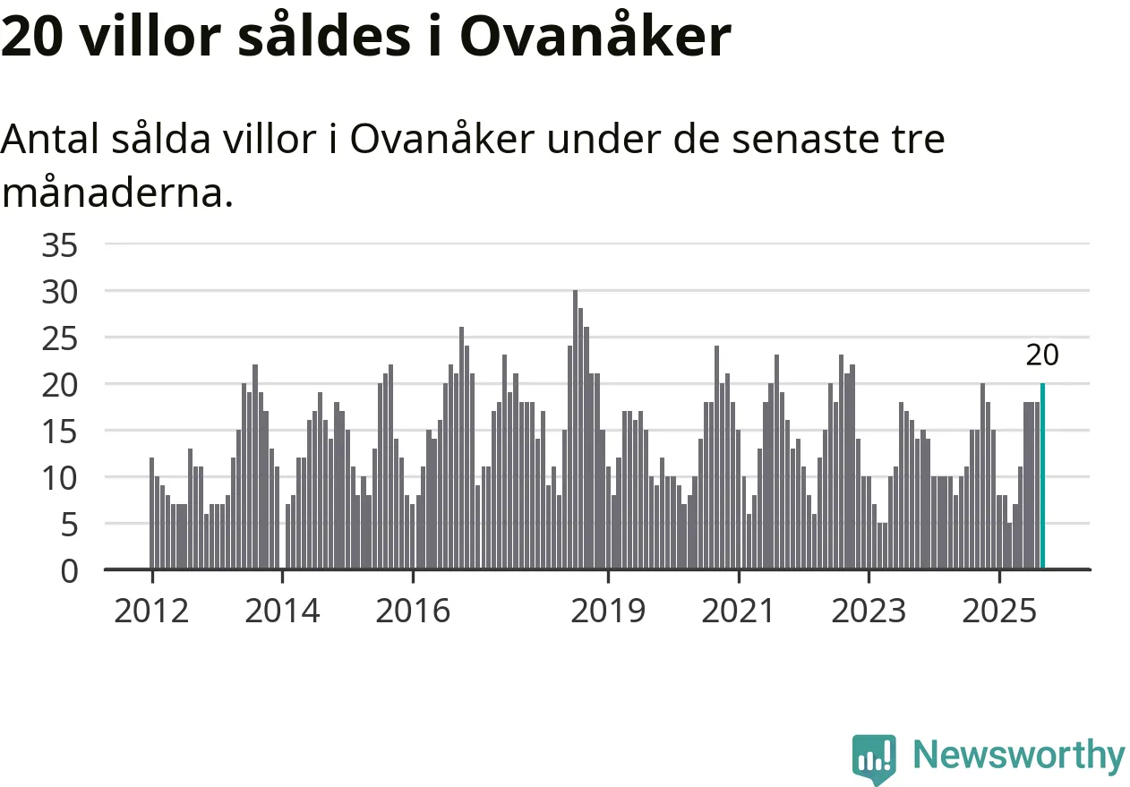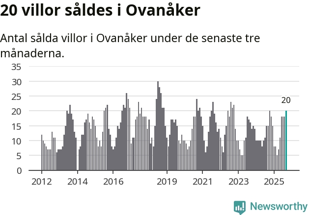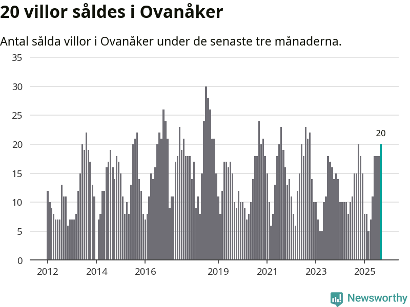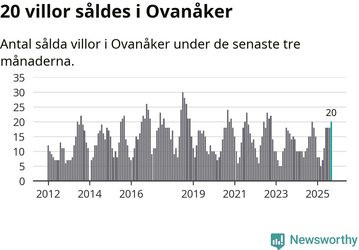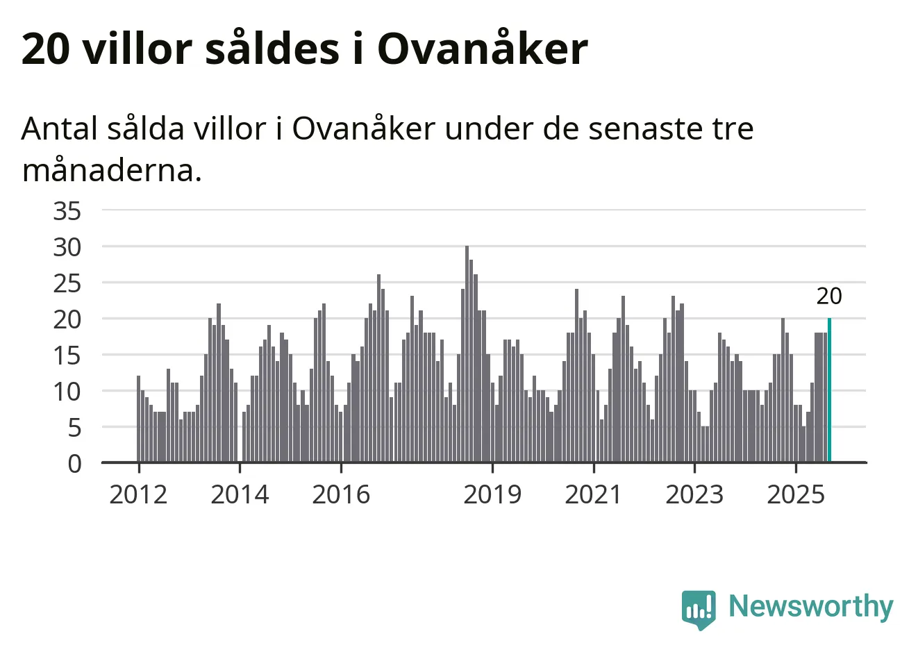 Mellan juli och september gjordes sammanlagt 20 affärer med villor i Ovanåkers kommun. Det kan jämföras med 15 vid motsvarande tid i fjol.