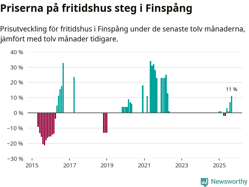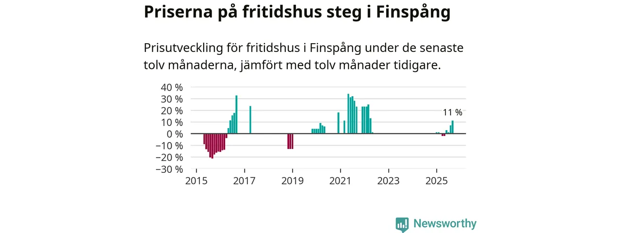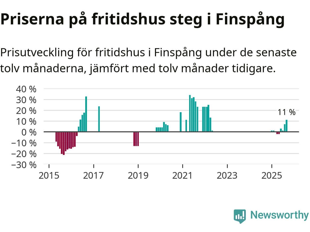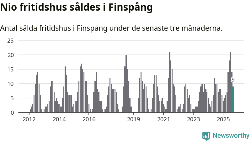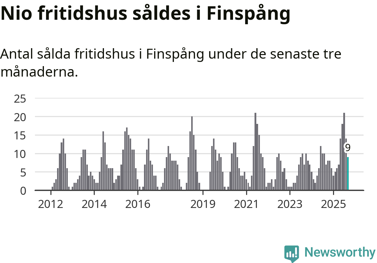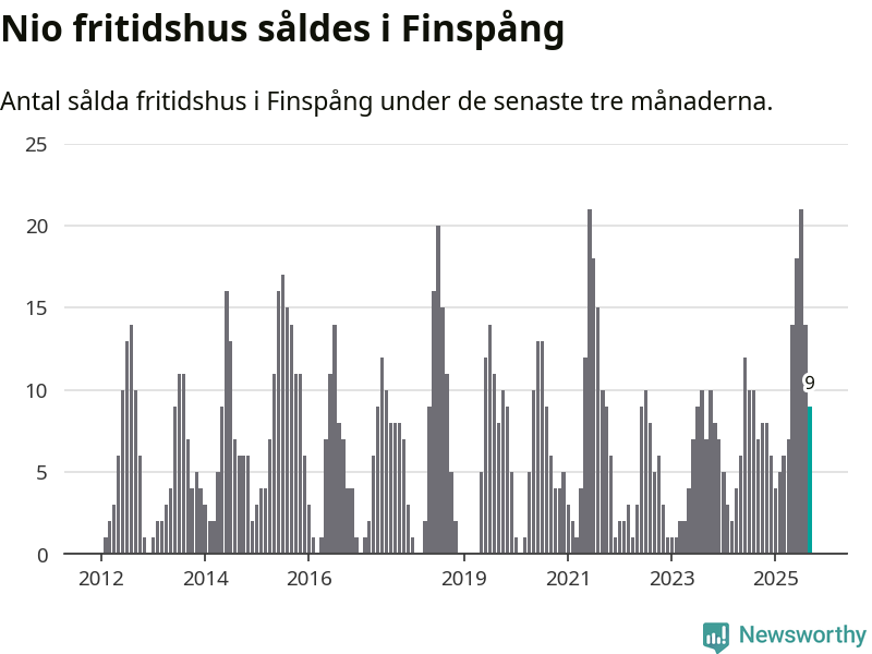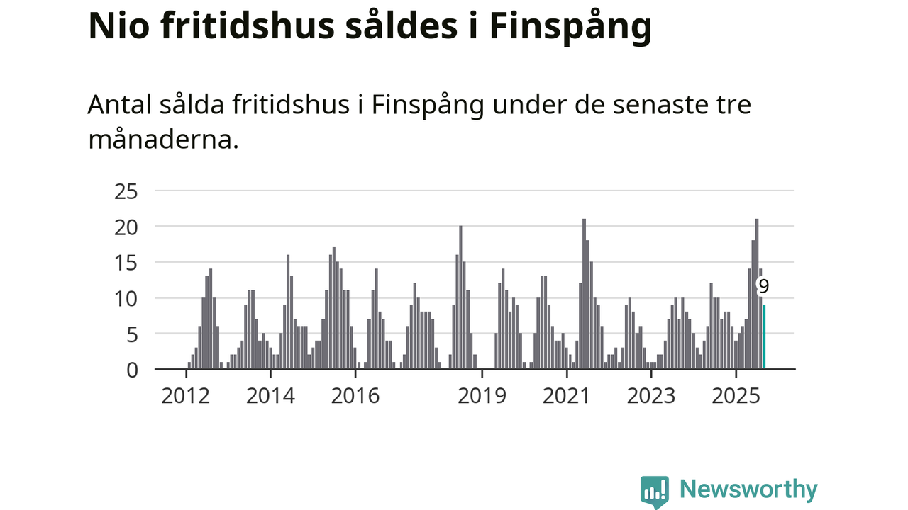Mellan juli och september gjordes sammanlagt nio affärer med fritidshus i Finspångs kommun. Det kan jämföras med sju vid motsvarande tid i fjol.