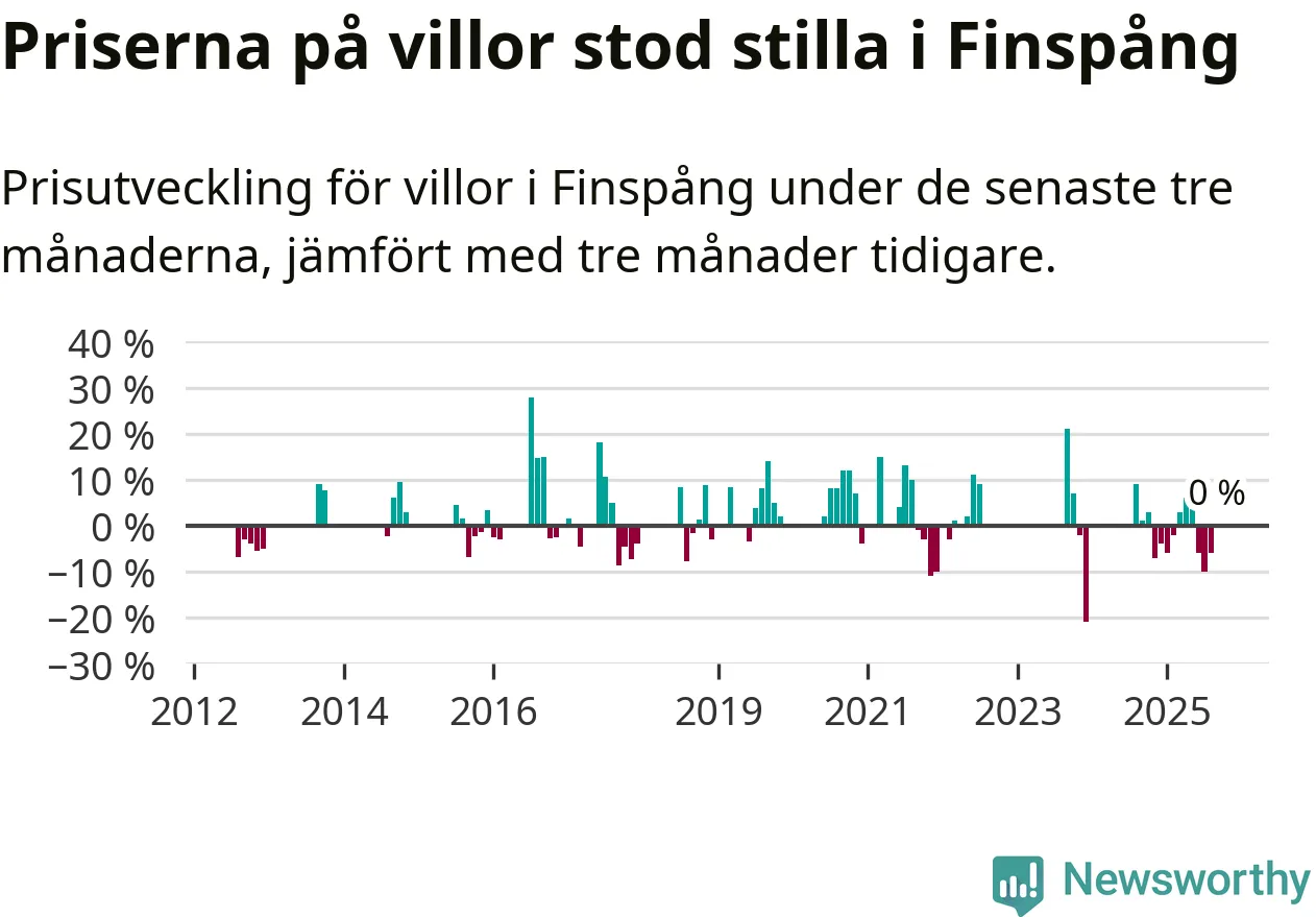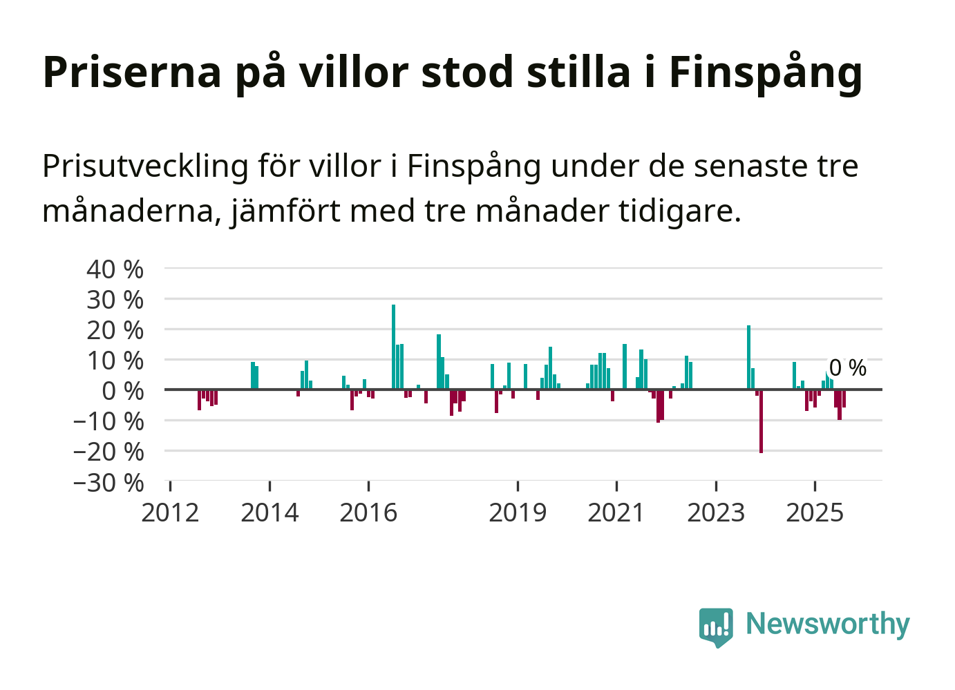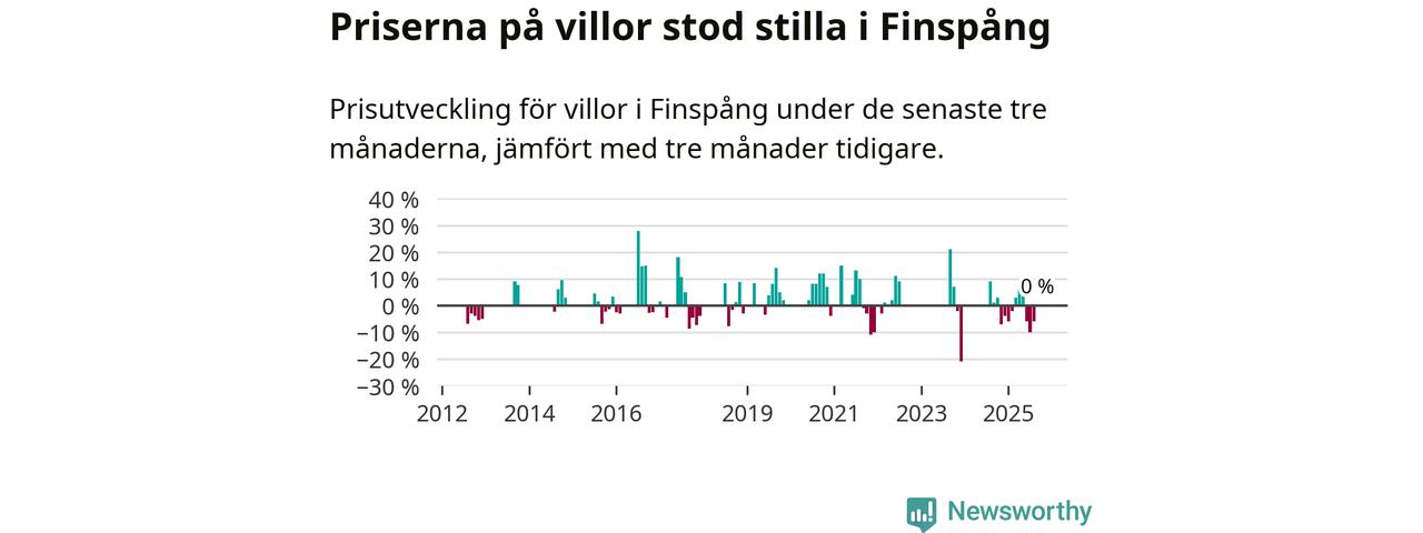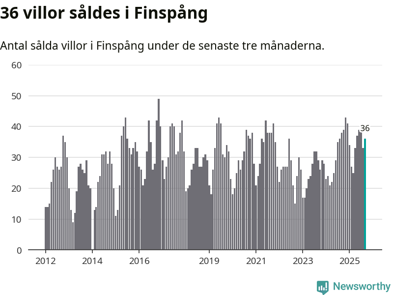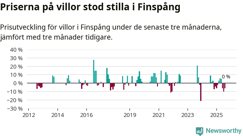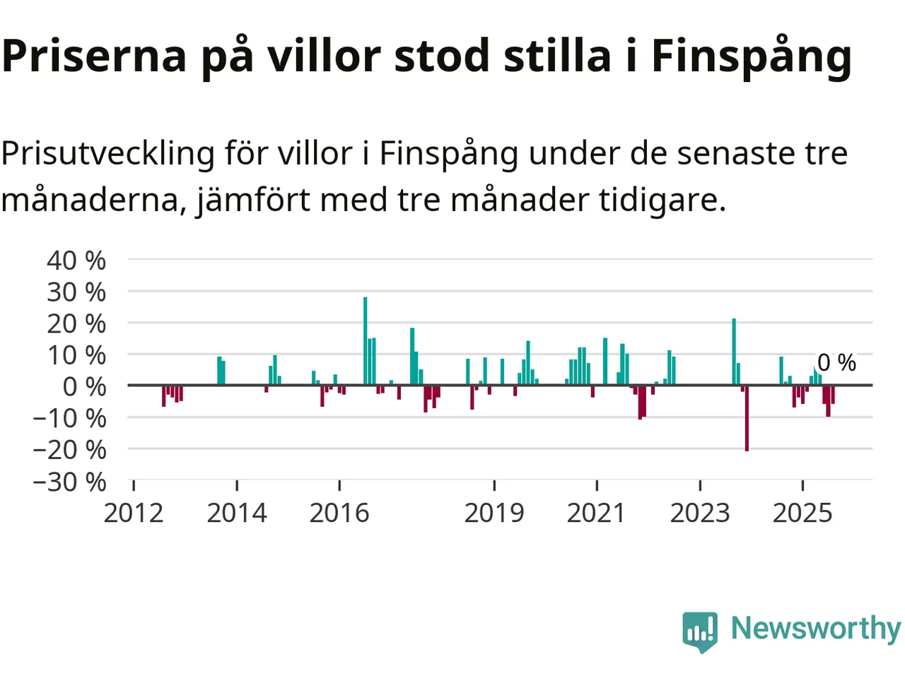 Mellan juli och september gjordes sammanlagt 36 affärer med villor i Finspångs kommun. Det kan jämföras med 38 vid motsvarande tid i fjol.