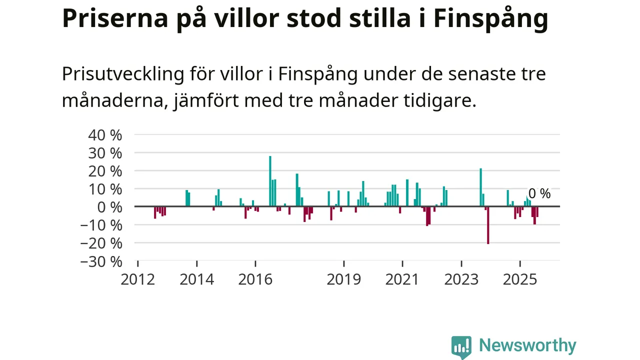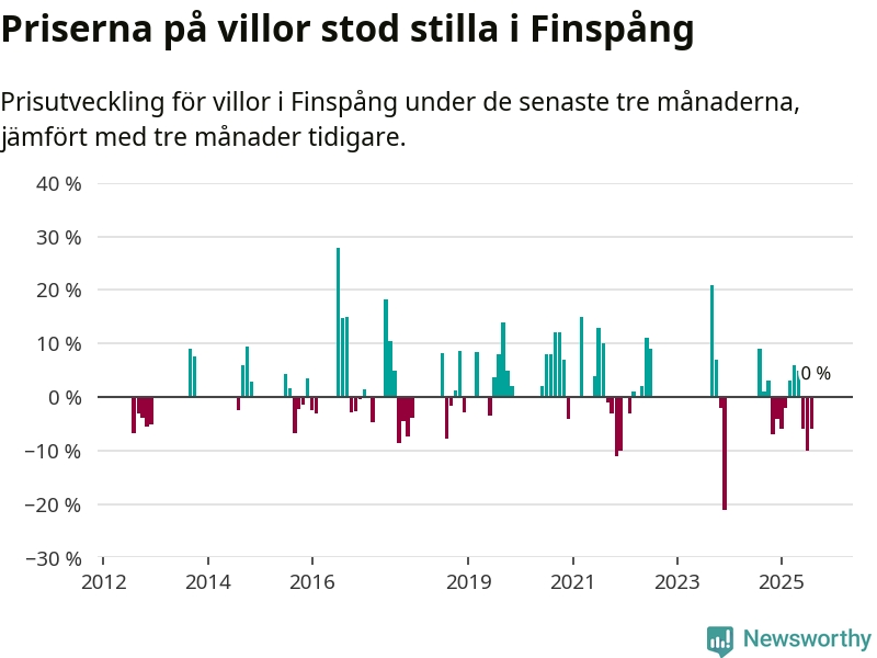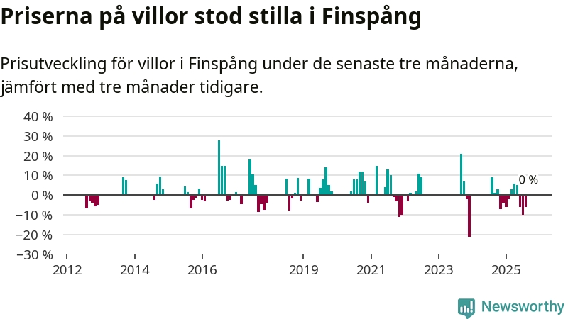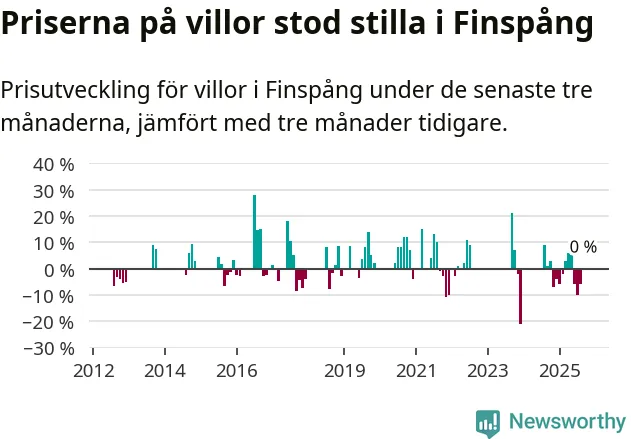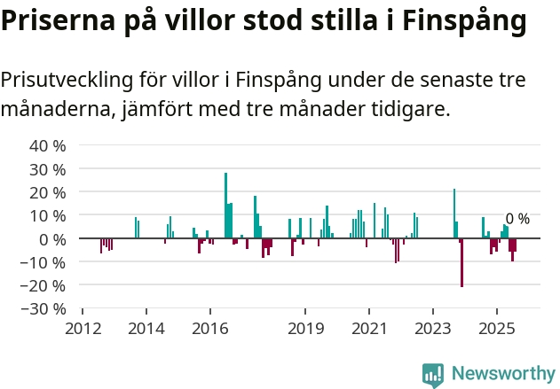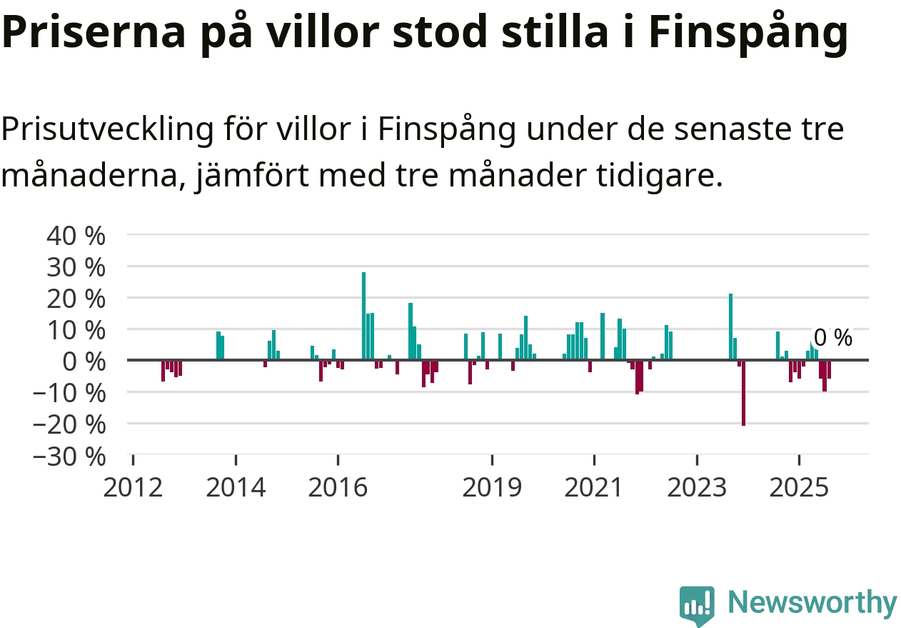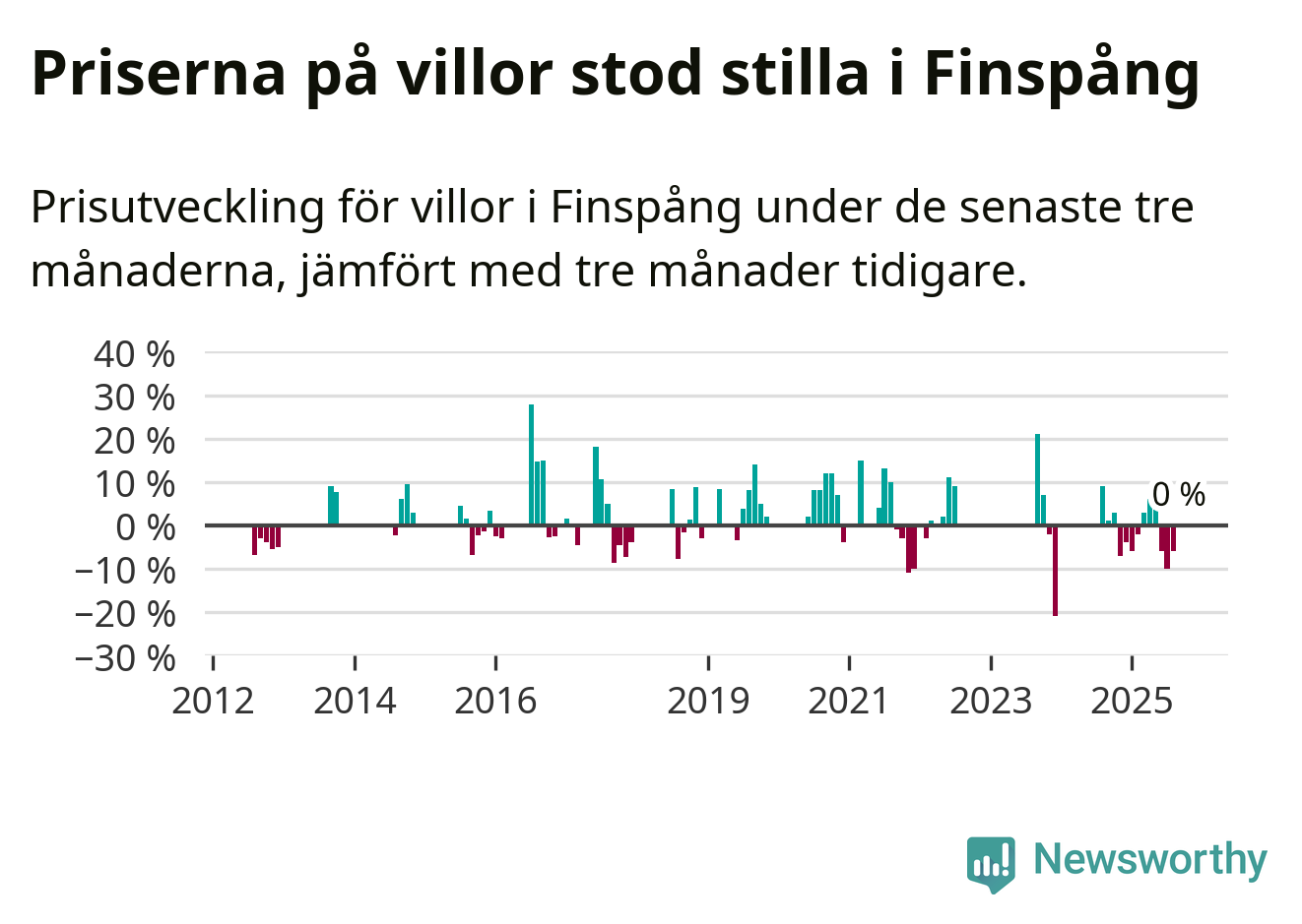 Mellan juli och september gjordes sammanlagt 36 affärer med villor i Finspångs kommun. Det kan jämföras med 38 vid motsvarande tid i fjol.