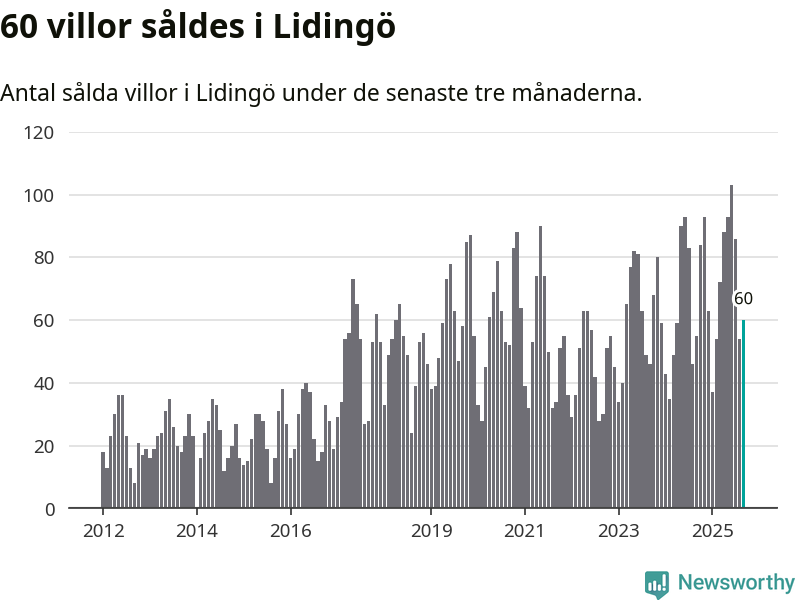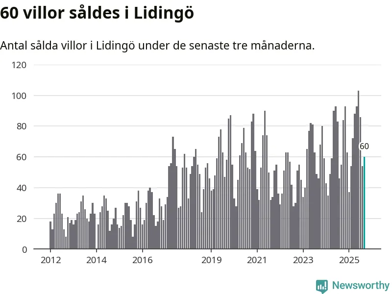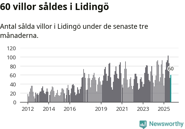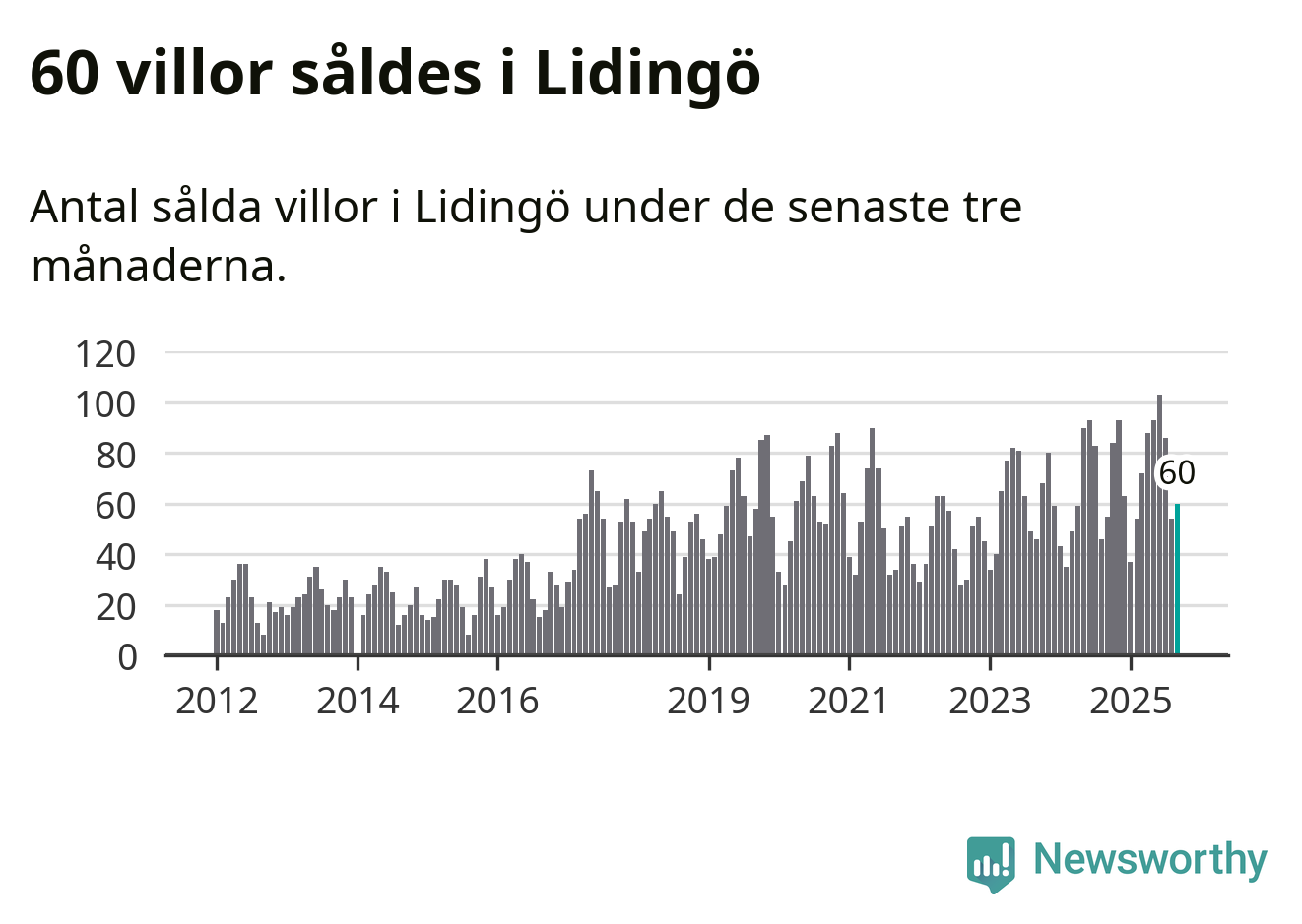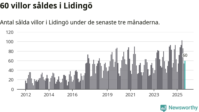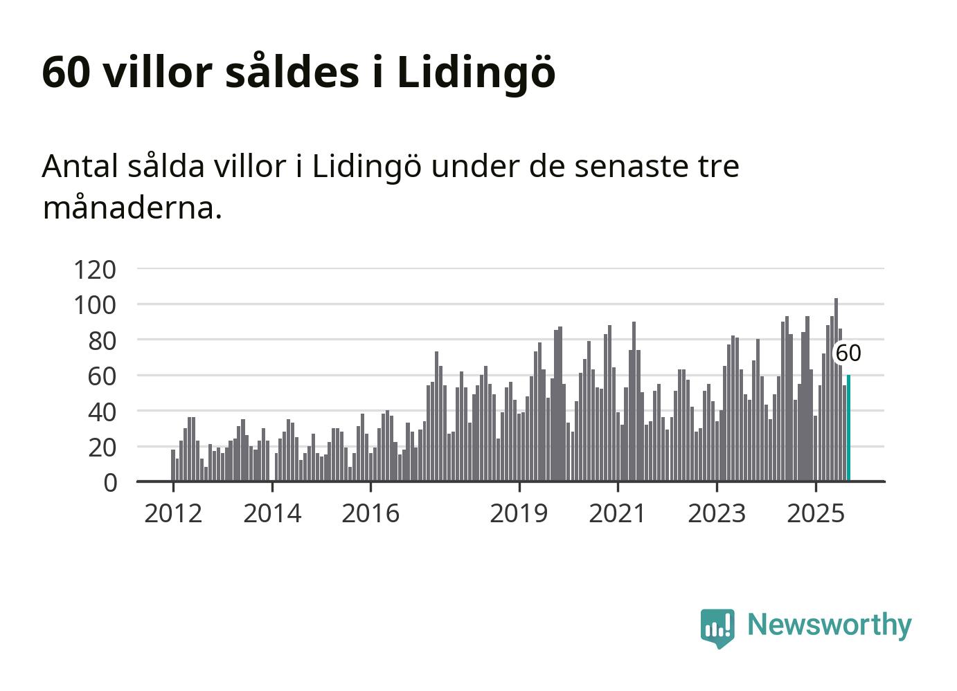 Sammanlagt såldes 60 villor i Lidingö kommun mellan juli och september till ett genomsnittligt pris på 14,8 miljoner kronor. I fjol gjordes 55 affärer vid den här tiden på året.