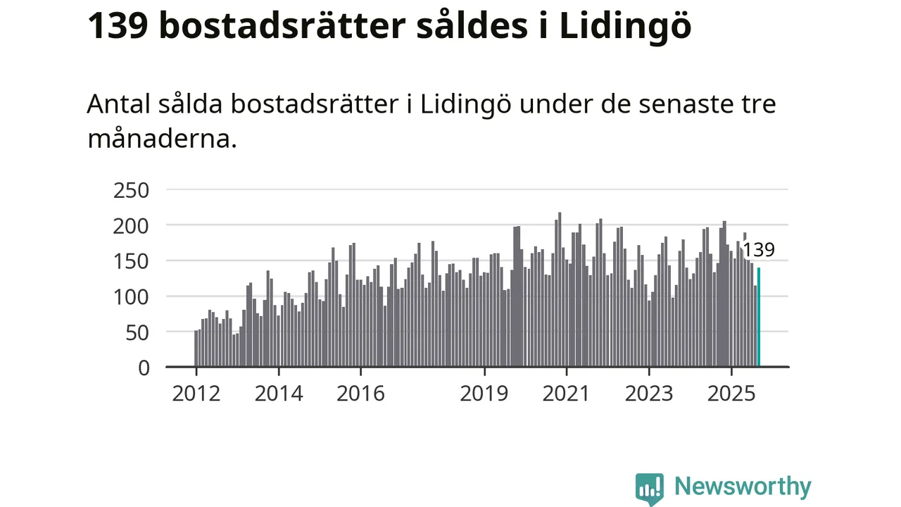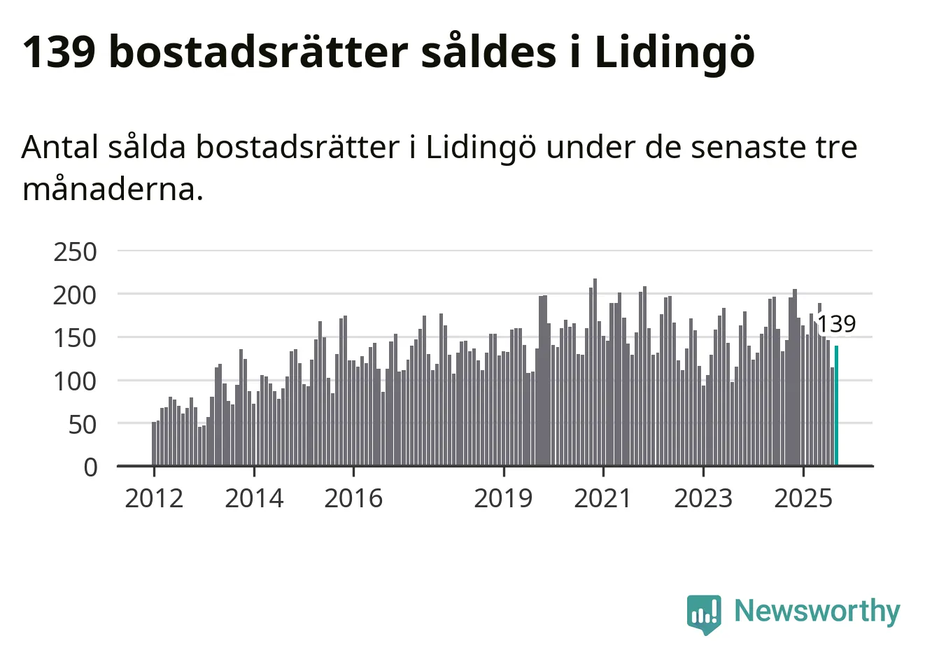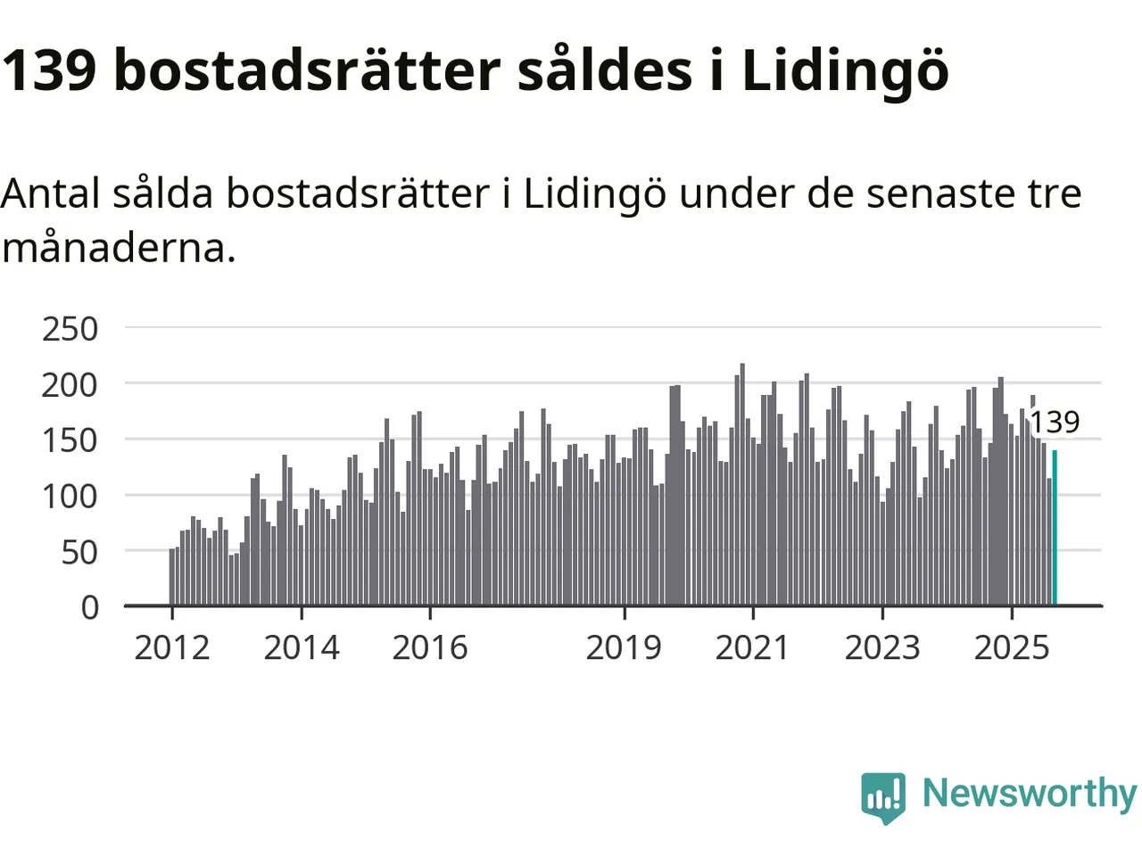 Lidingö | +6 % ▲ | 139 | 5,0 miljoner |