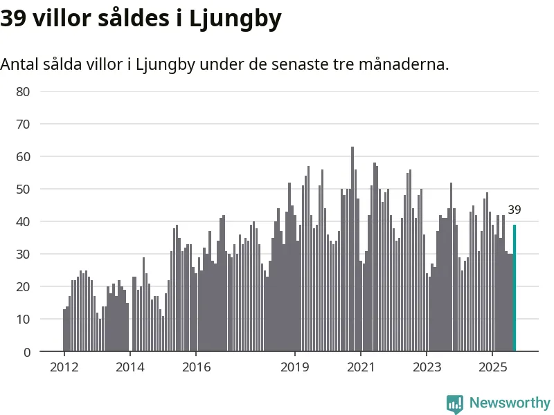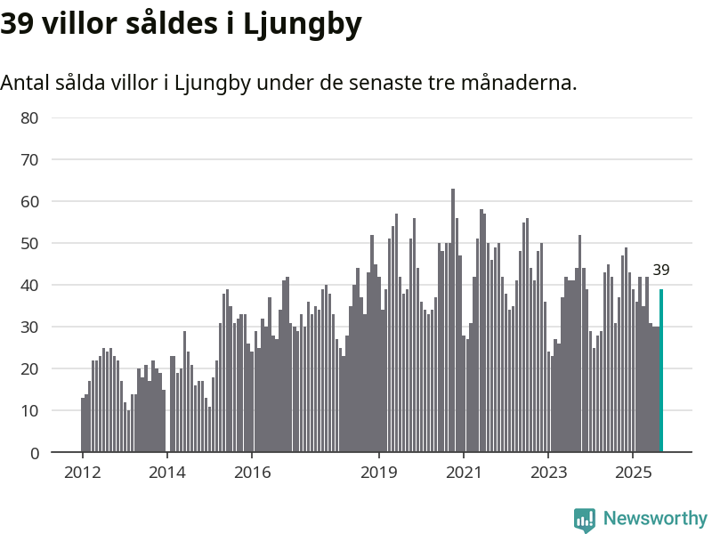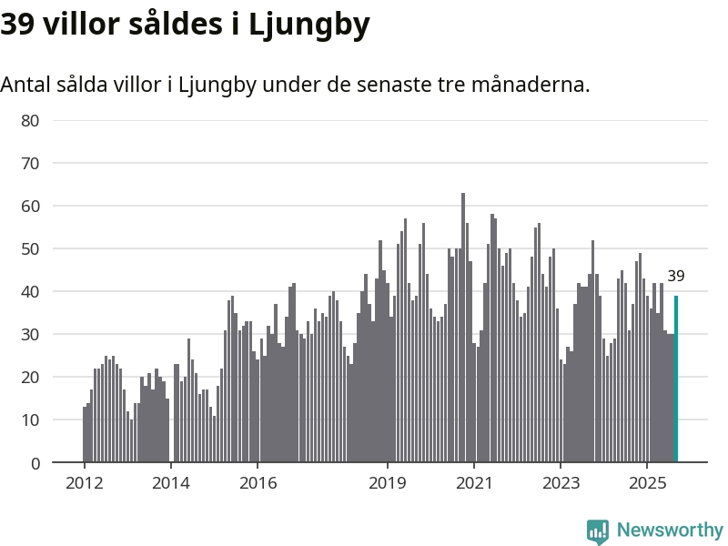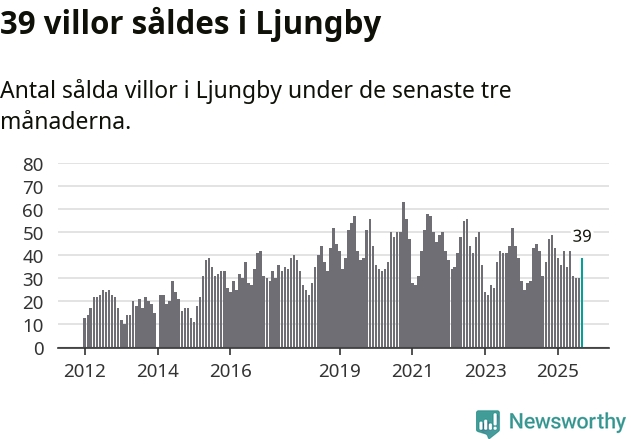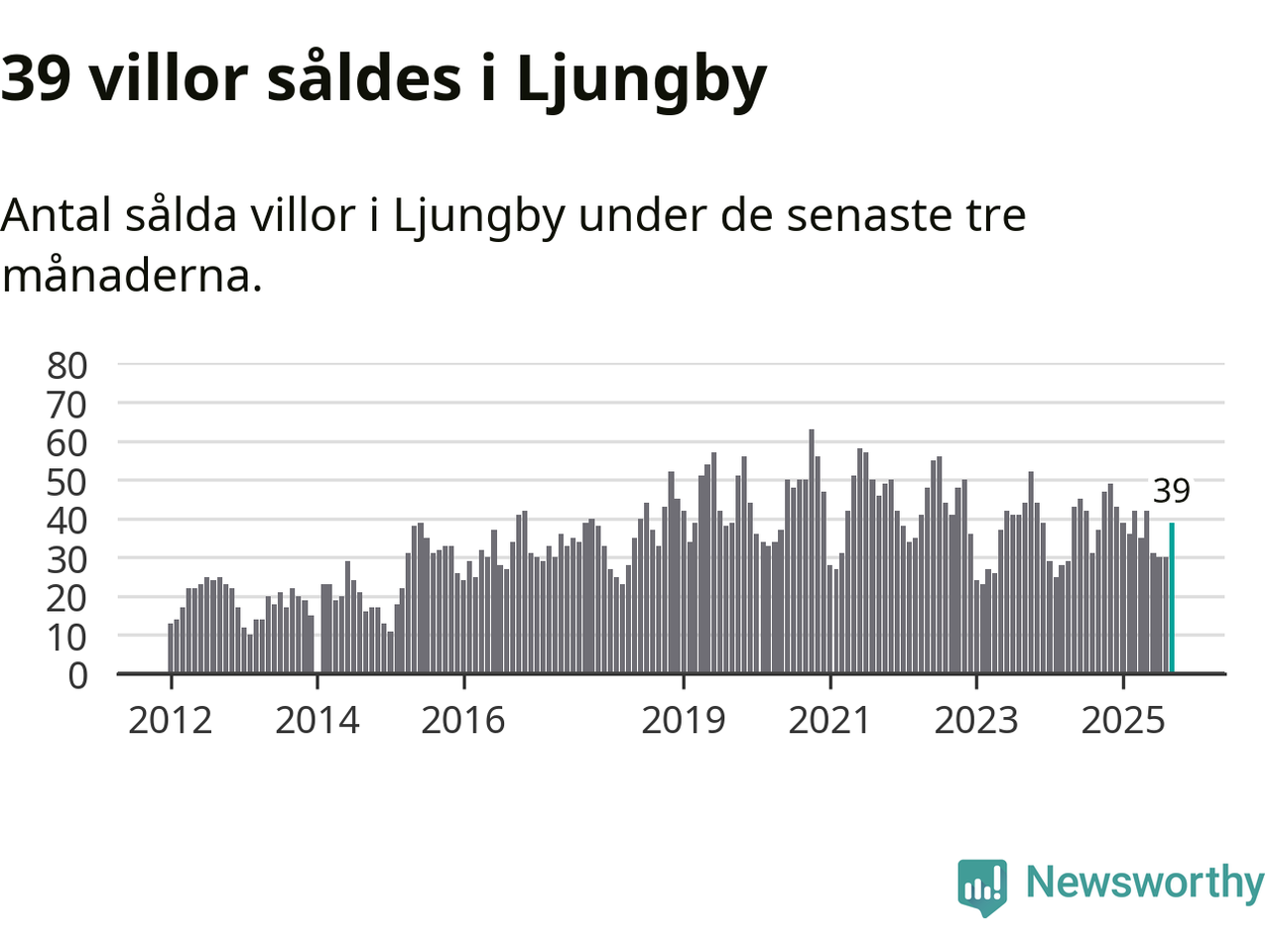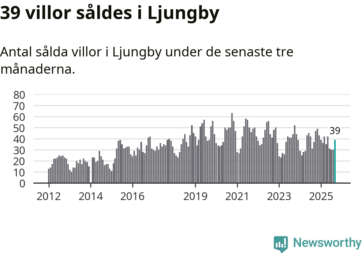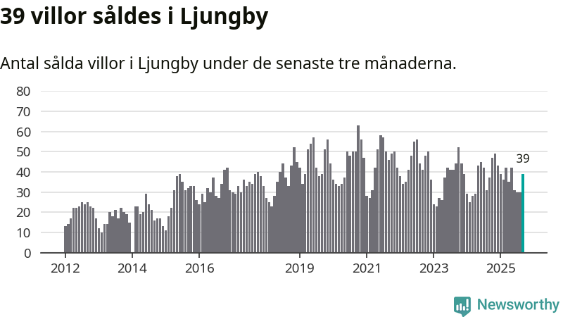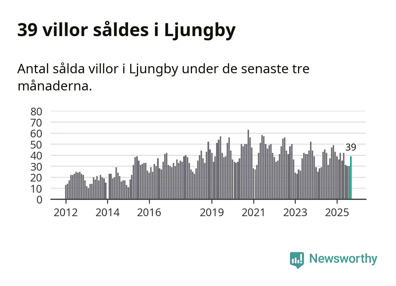 Sammanlagt såldes 39 villor i Ljungby kommun mellan juli och september till ett genomsnittligt pris på 1,8 miljoner kronor. I fjol gjordes 37 affärer vid den här tiden på året.