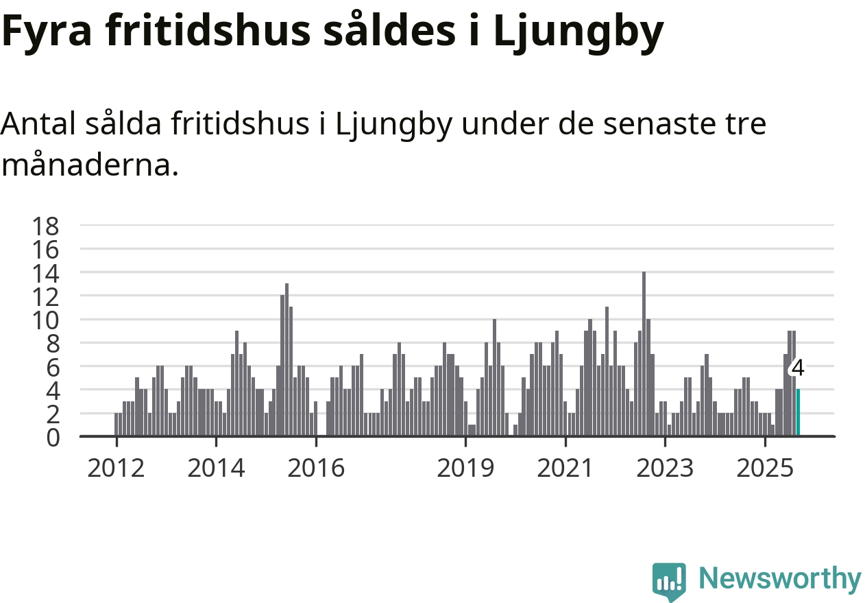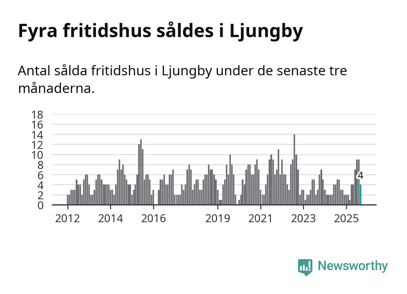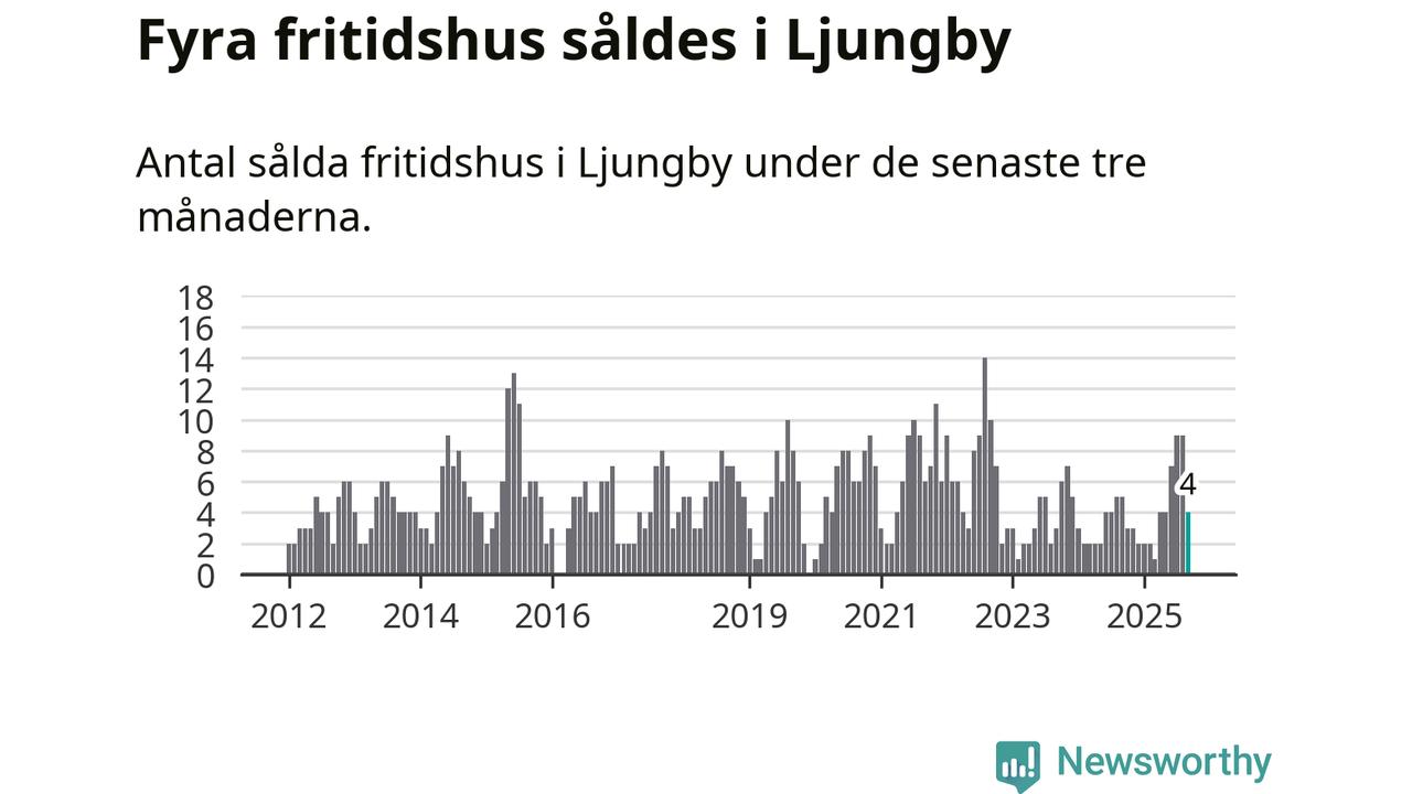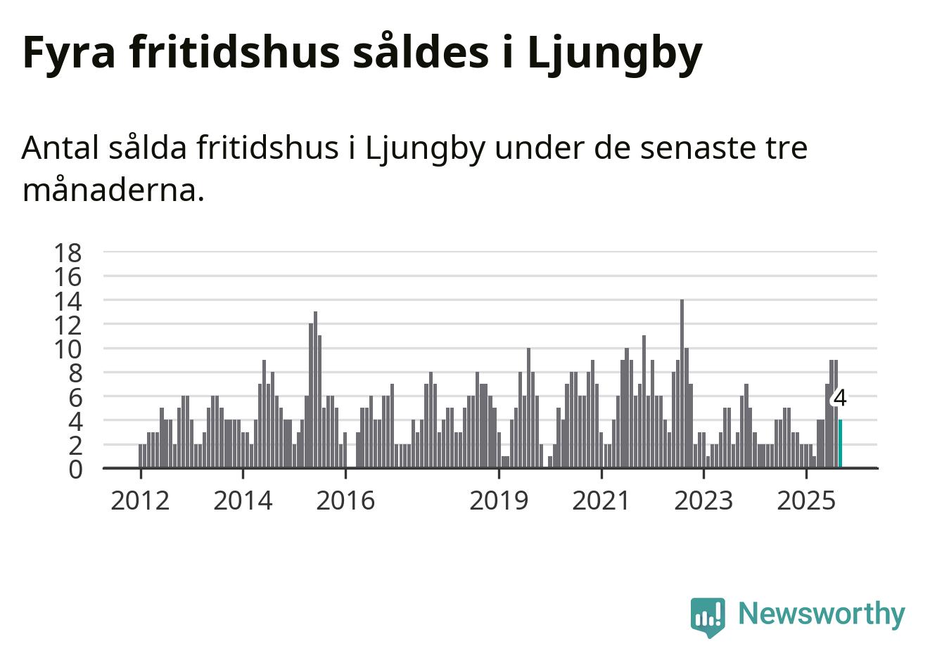 Mellan juli och september gjordes sammanlagt fyra affärer med fritidshus i Ljungby kommun. Det kan jämföras med fem vid motsvarande tid i fjol.