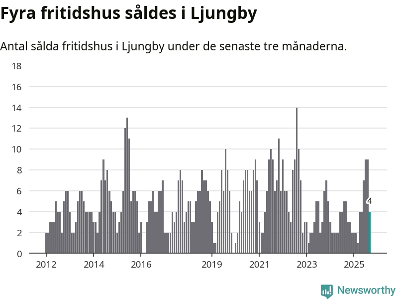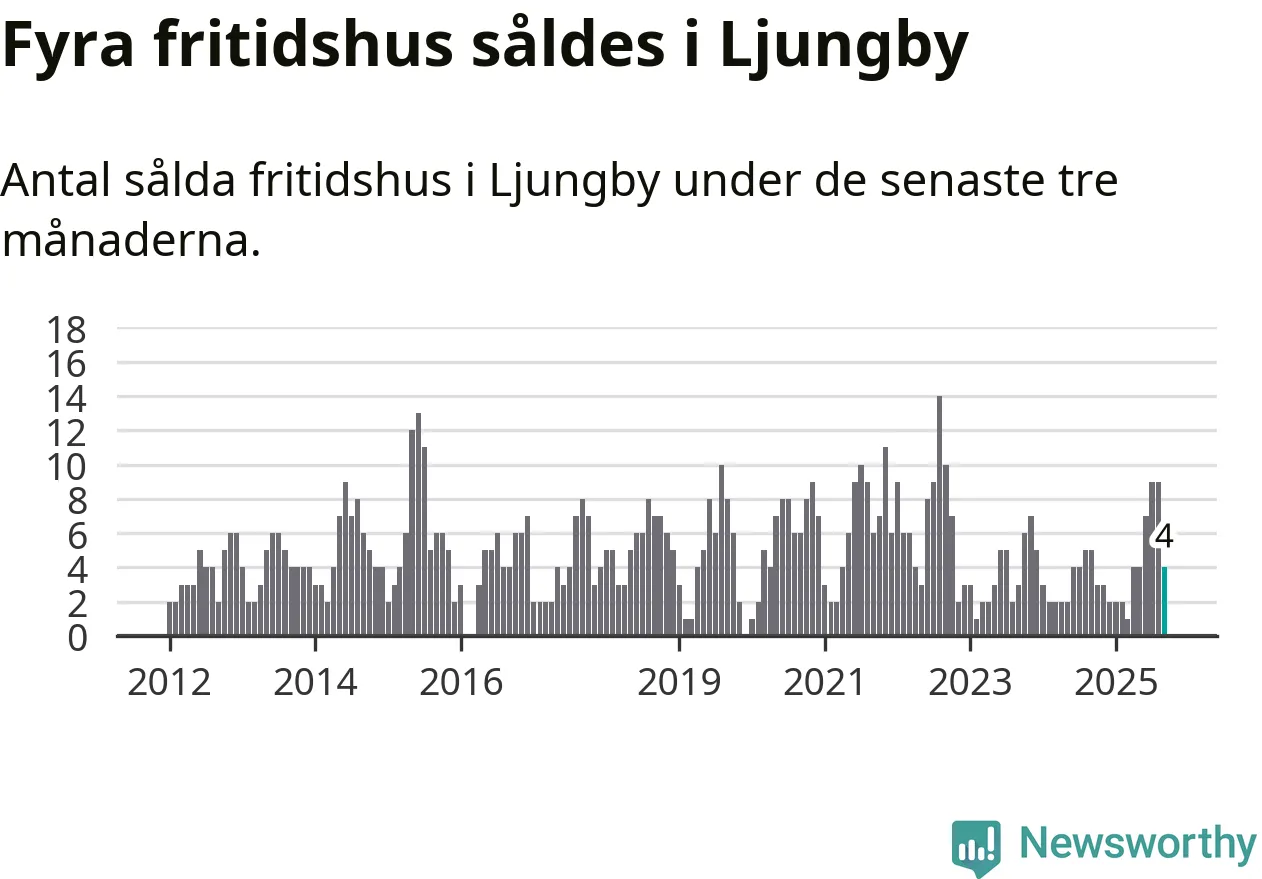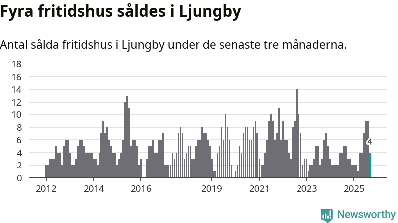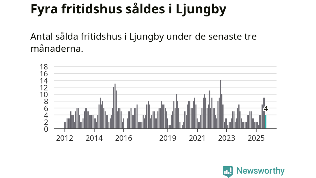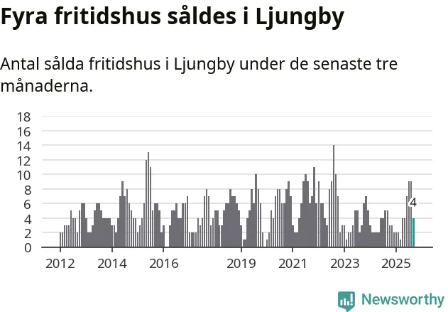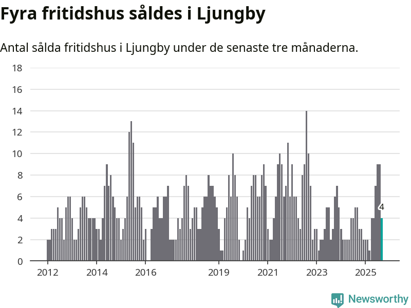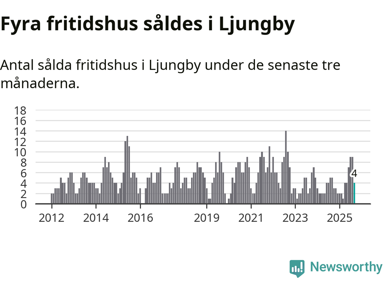 Mellan juli och september gjordes sammanlagt fyra affärer med fritidshus i Ljungby kommun. Det kan jämföras med fem vid motsvarande tid i fjol.