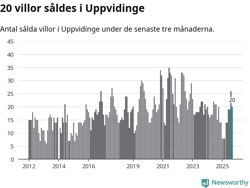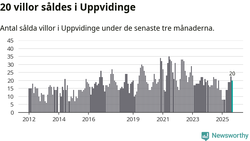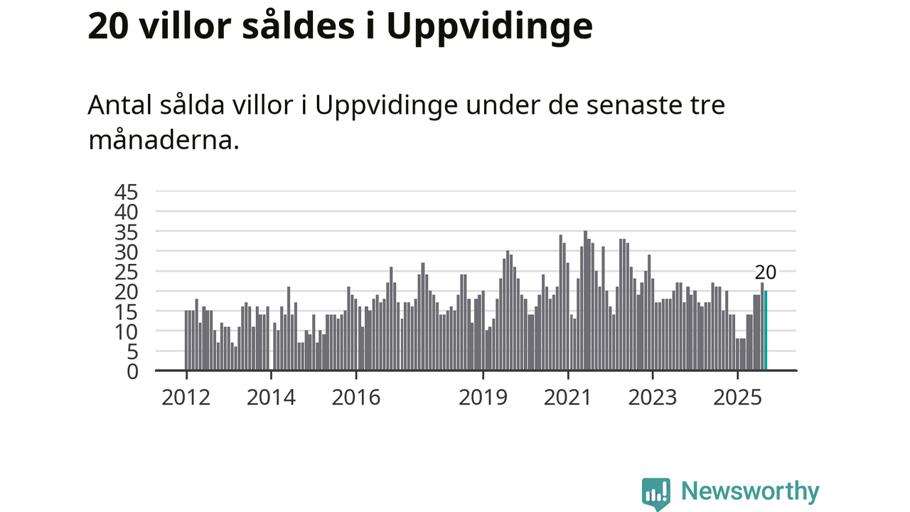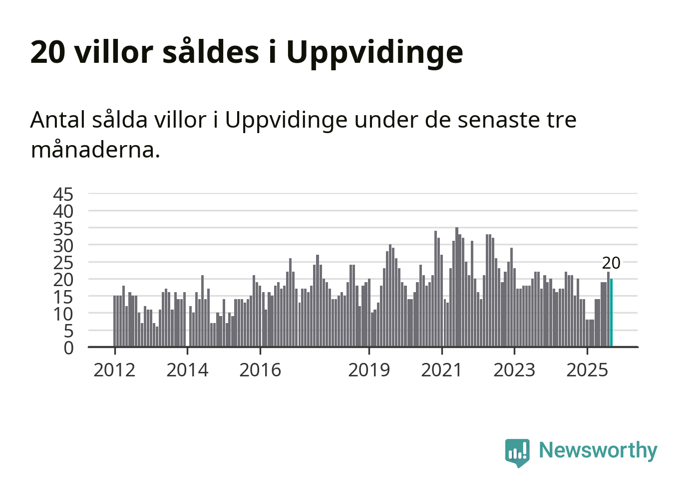 Mellan juli och september gjordes sammanlagt 20 affärer med villor i Uppvidinge kommun. Det kan jämföras med 15 vid motsvarande tid i fjol.