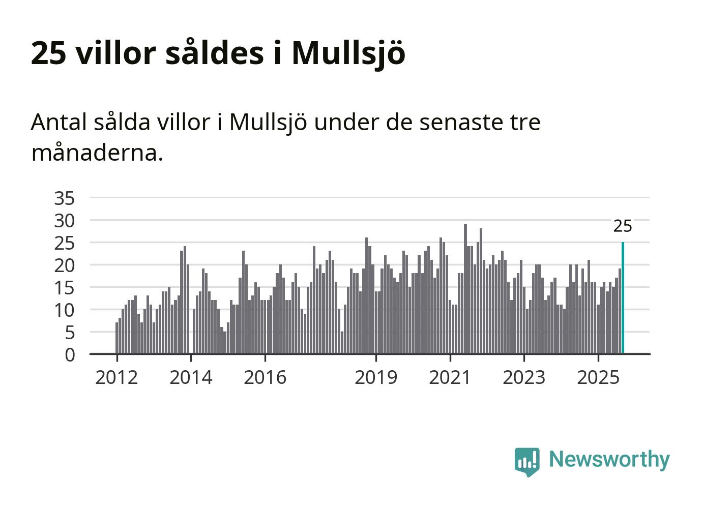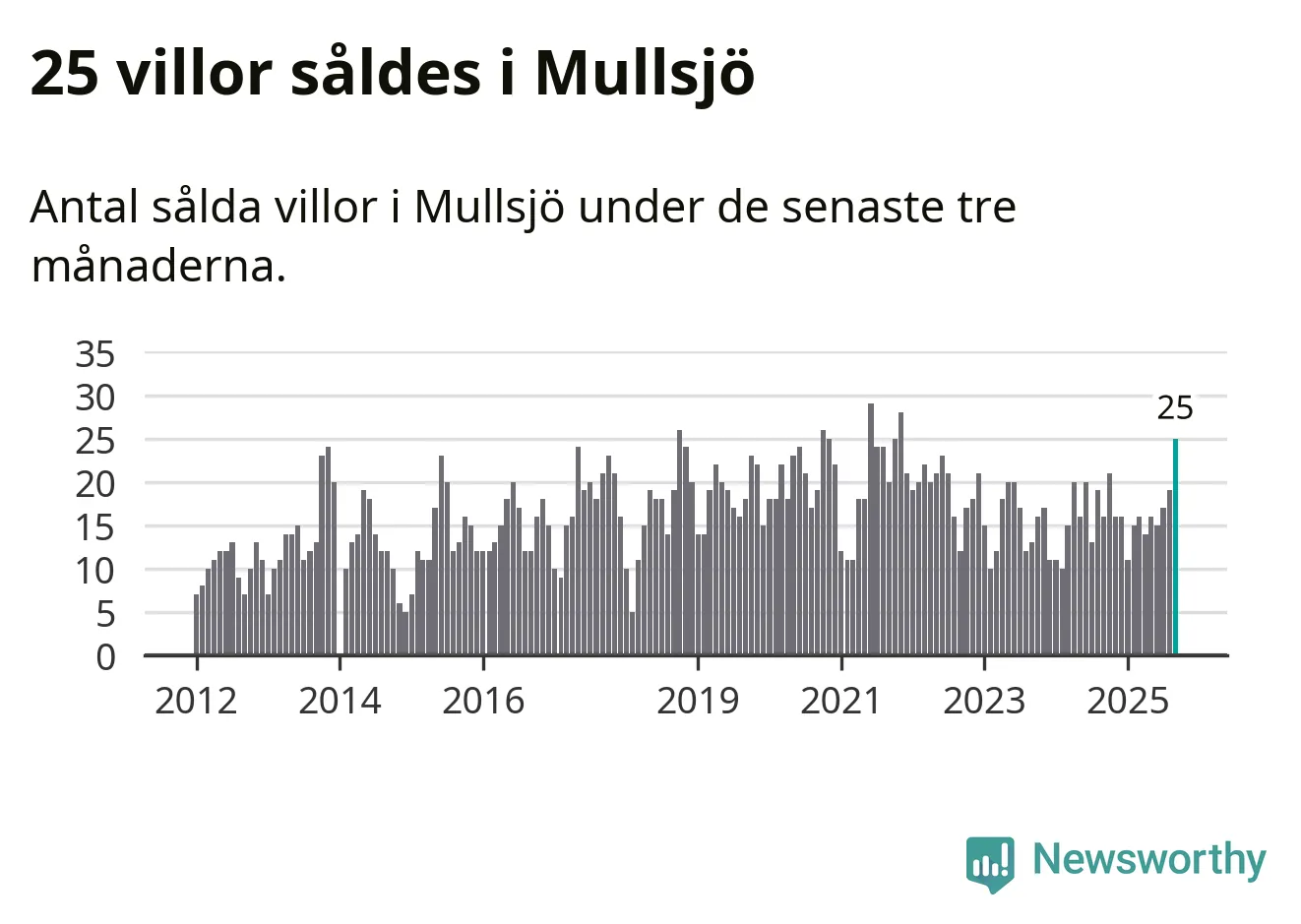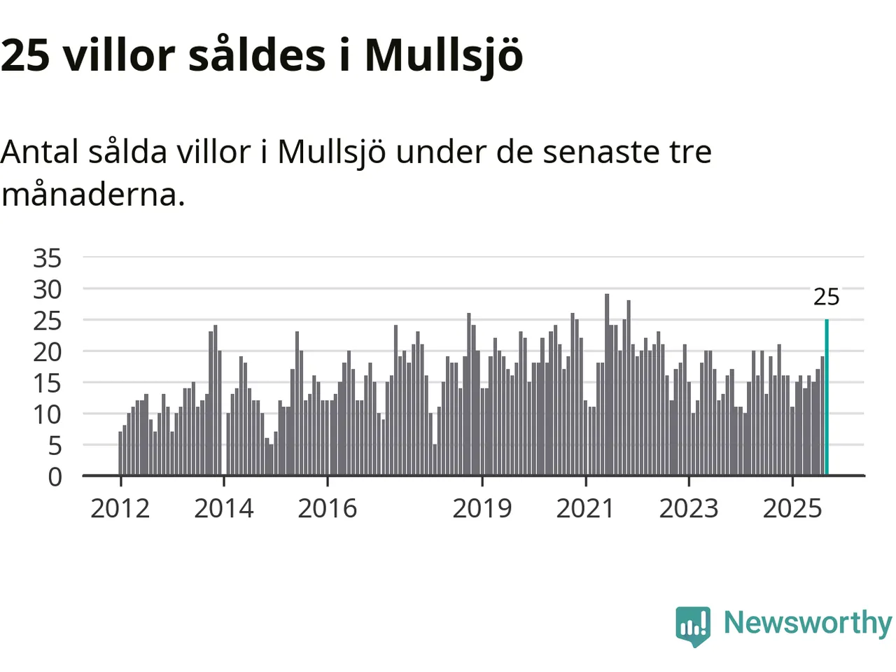 Mellan juli och september såldes 25 villor i Mullsjö kommun. Det är fler än någon tremånadersperiod sedan 2021.