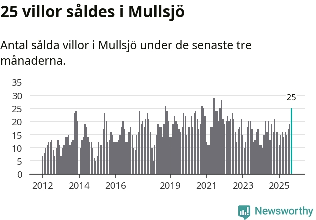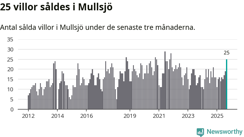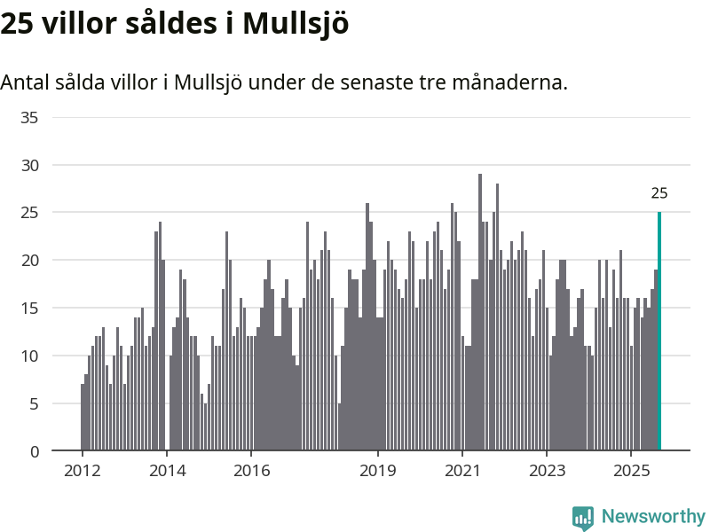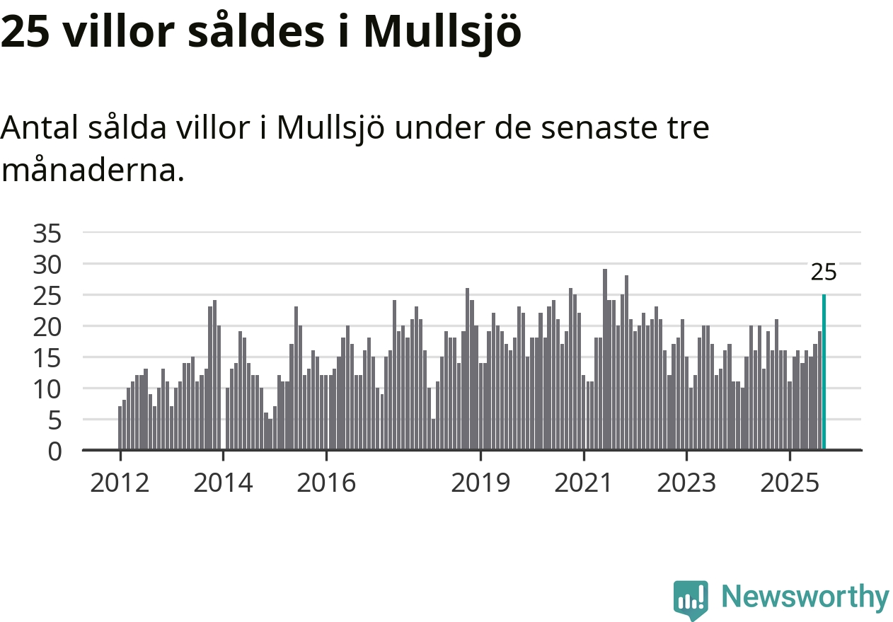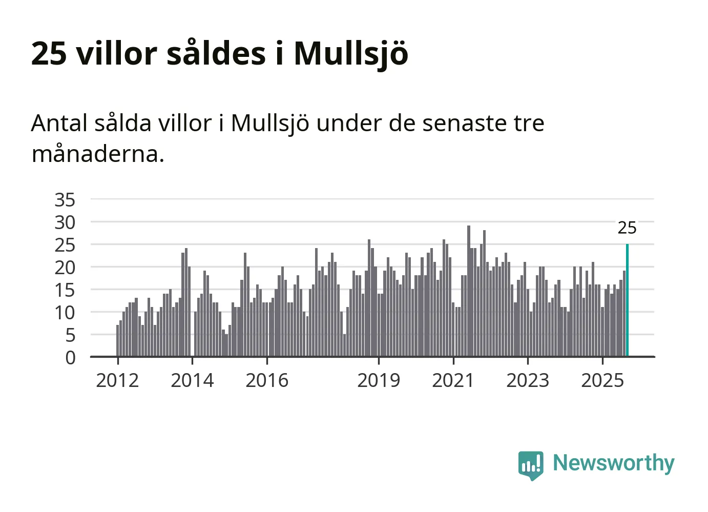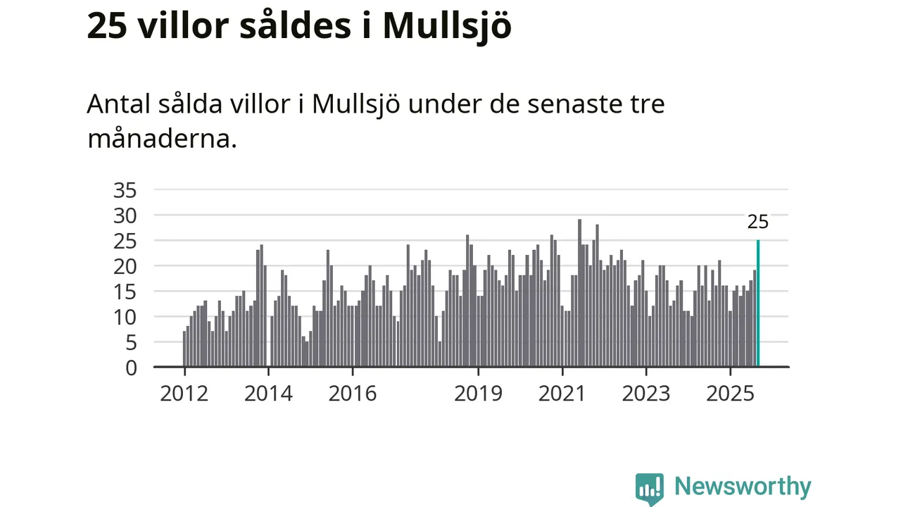 Mellan juli och september såldes 25 villor i Mullsjö kommun. Det är fler än någon tremånadersperiod sedan 2021.