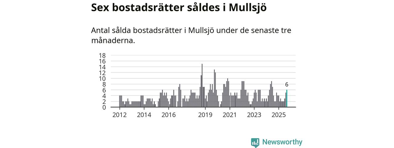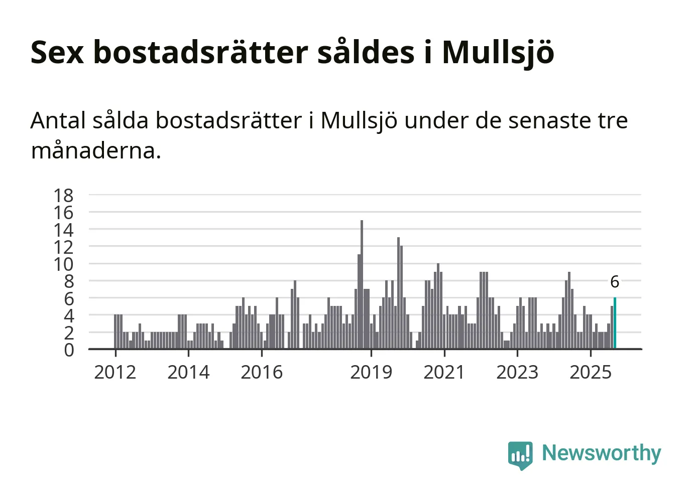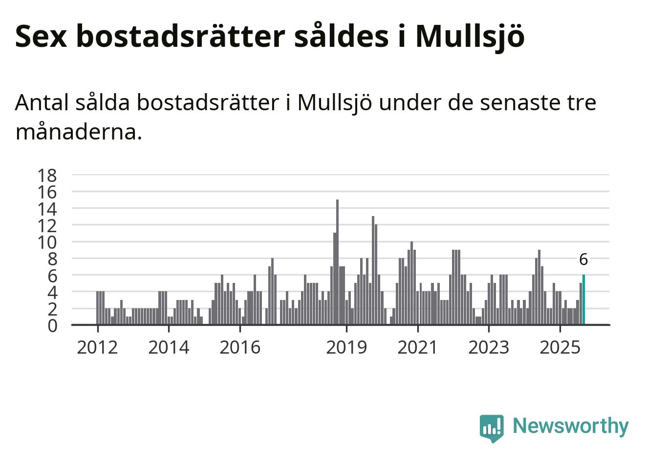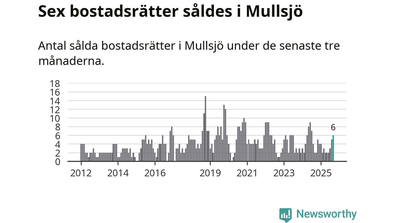 Mellan juli och september gjordes sammanlagt sex affärer med bostadsrätter i Mullsjö kommun. Det kan jämföras med två vid motsvarande tid i fjol.