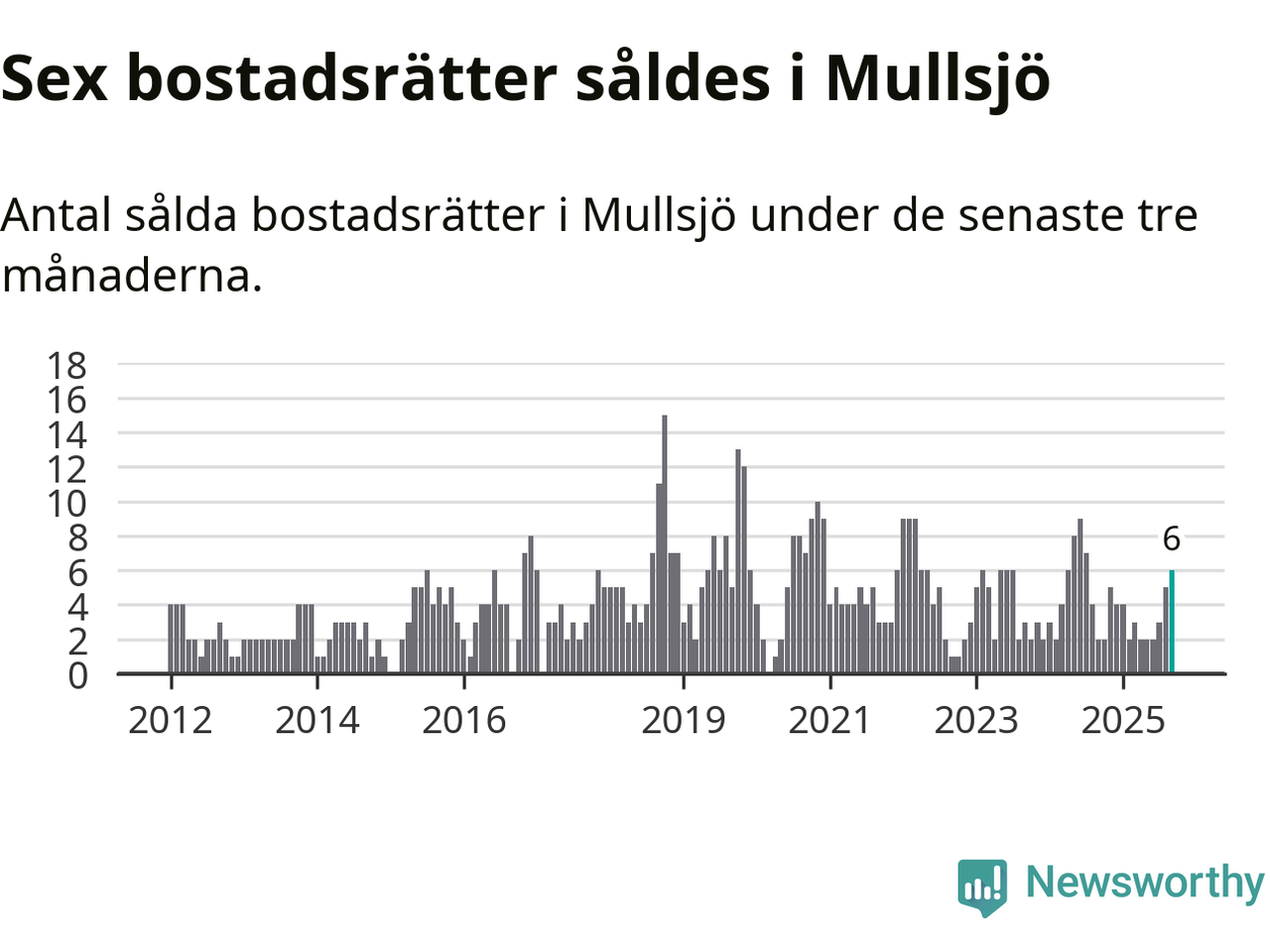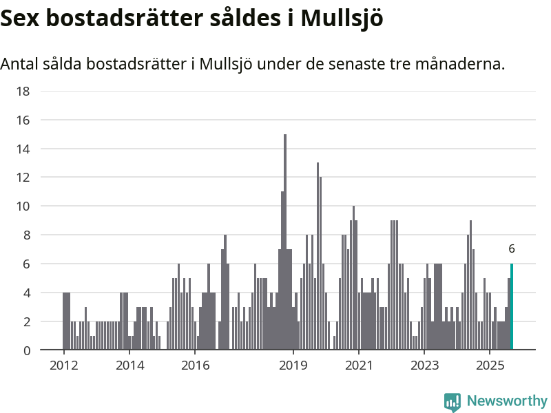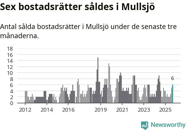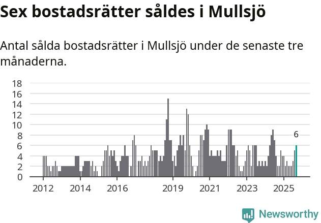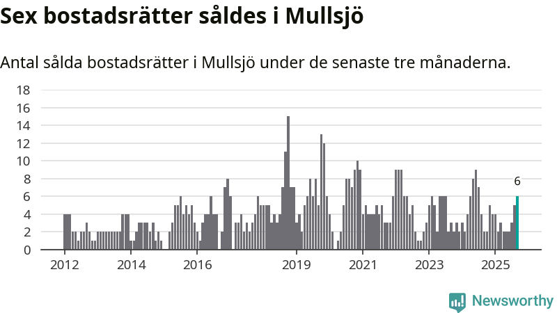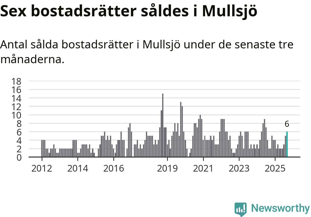 Mellan juli och september gjordes sammanlagt sex affärer med bostadsrätter i Mullsjö kommun. Det kan jämföras med två vid motsvarande tid i fjol.