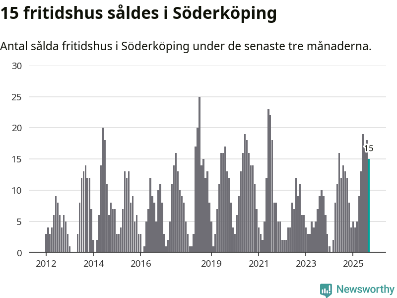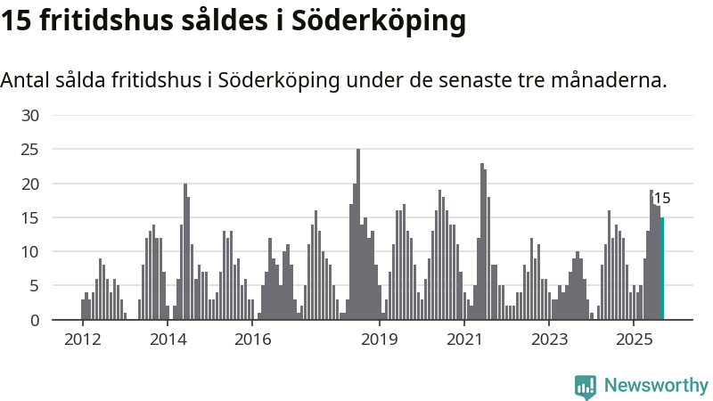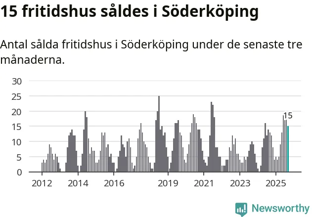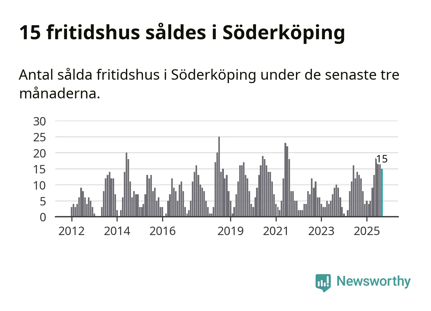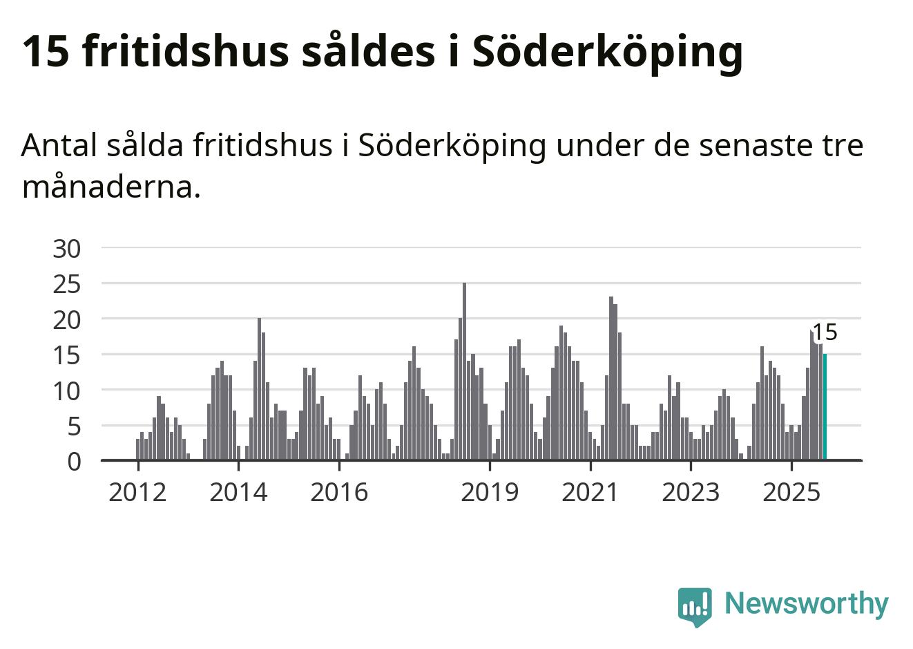 Sammanlagt såldes 15 fritidshus i Söderköpings kommun mellan juli och september till ett genomsnittligt pris på 2,2 miljoner kronor. I fjol gjordes 13 affärer vid den här tiden på året.