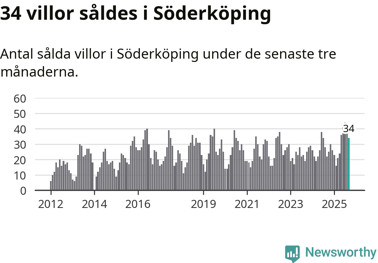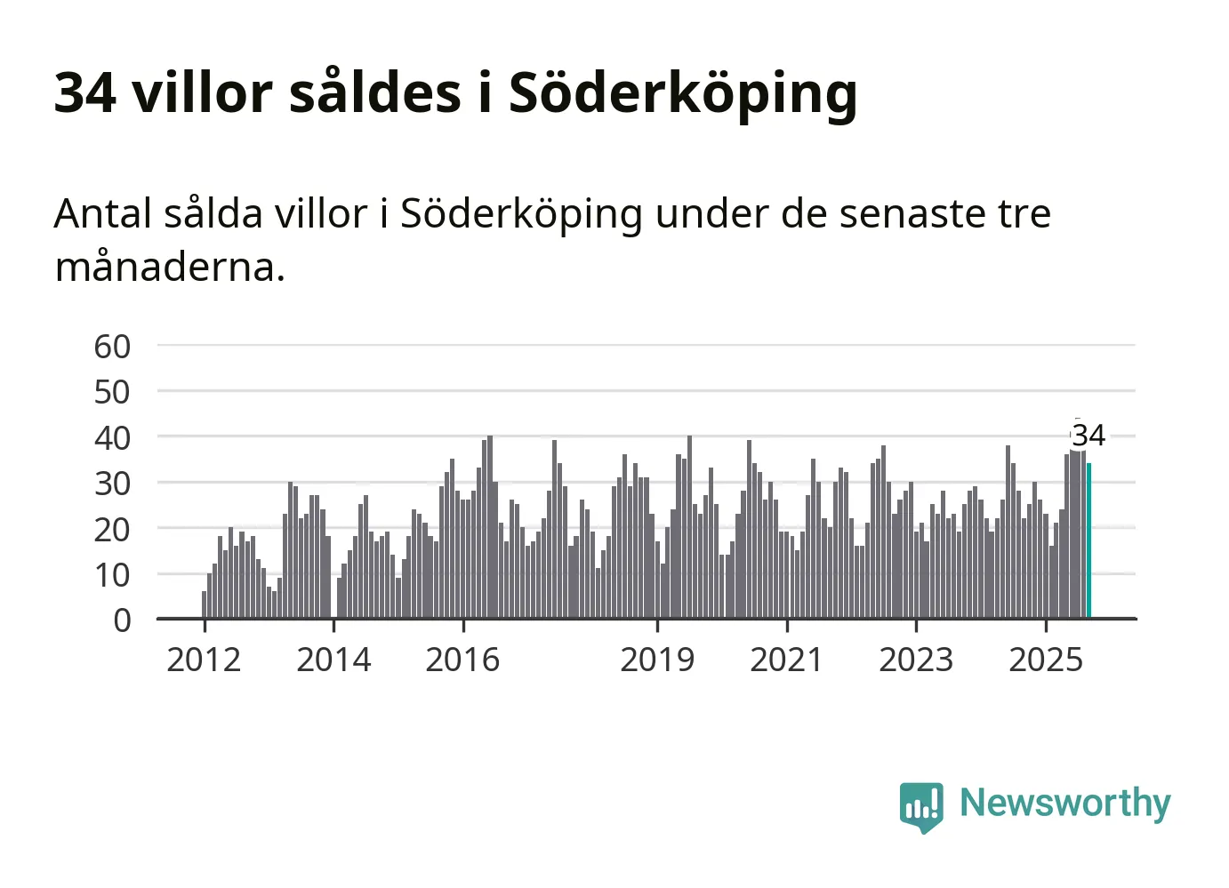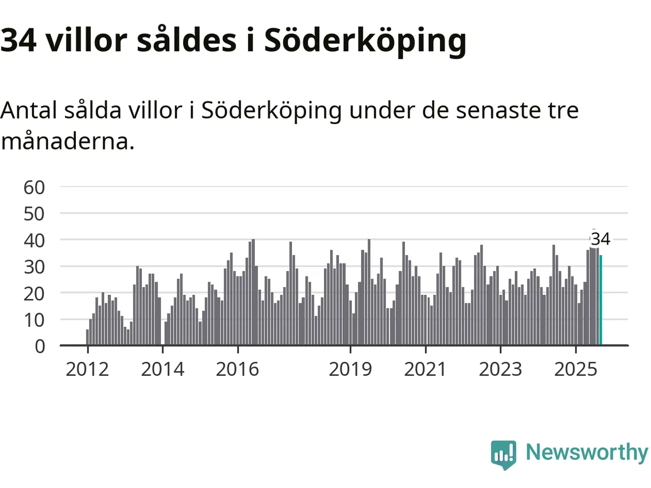Mellan juli och september gjordes sammanlagt 34 affärer med villor i Söderköpings kommun. Det kan jämföras med 22 vid motsvarande tid i fjol.