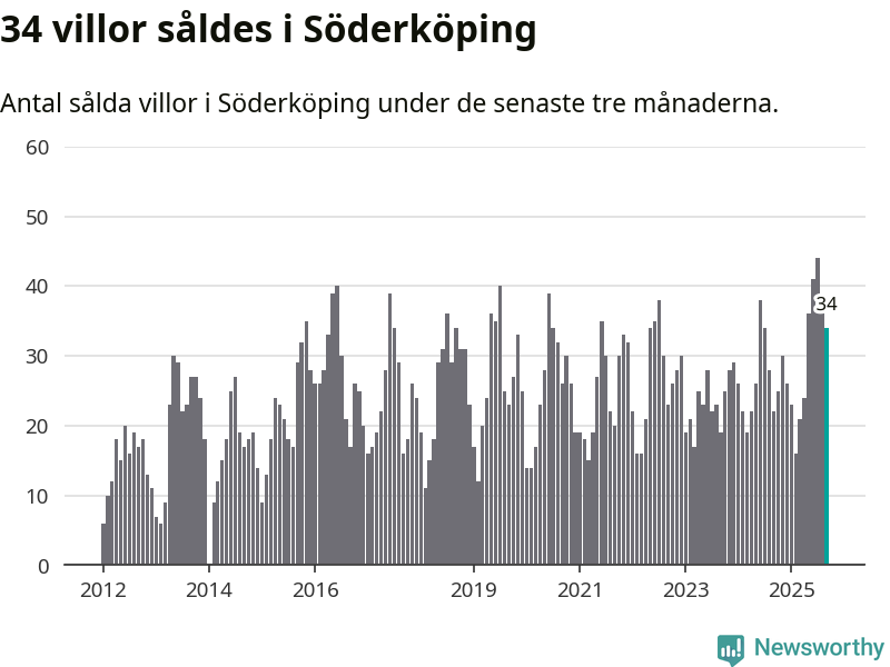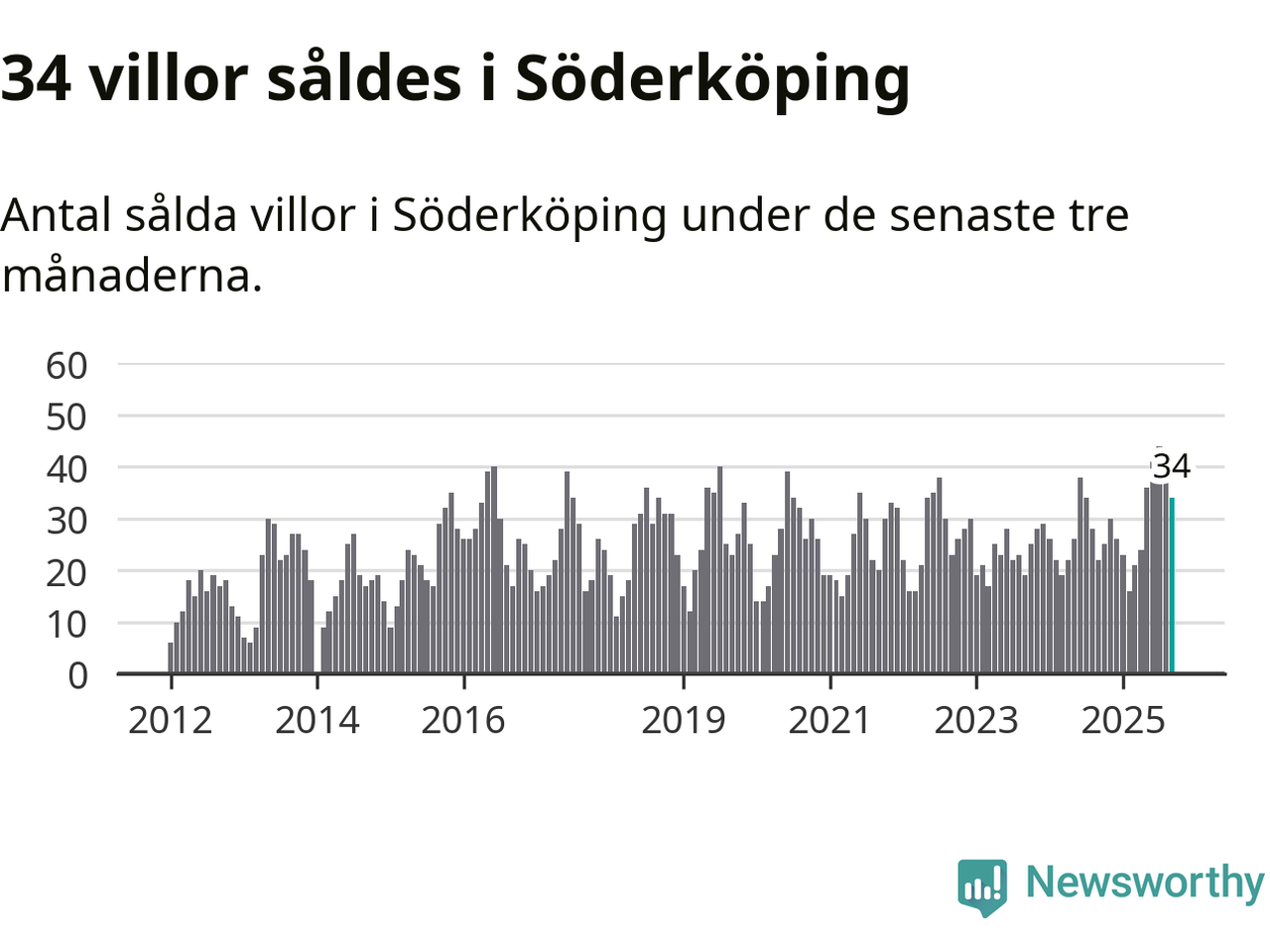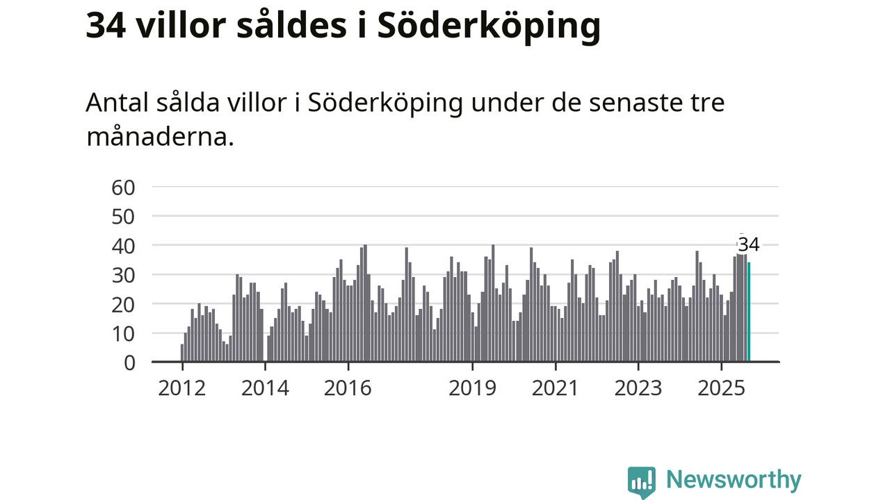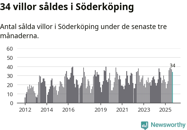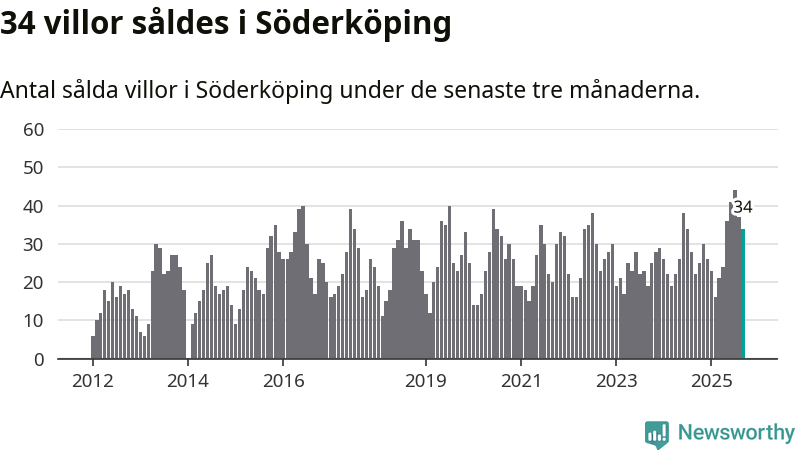 Mellan juli och september gjordes sammanlagt 34 affärer med villor i Söderköpings kommun. Det kan jämföras med 22 vid motsvarande tid i fjol.