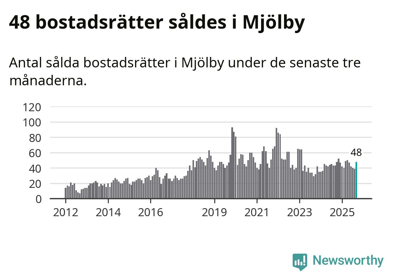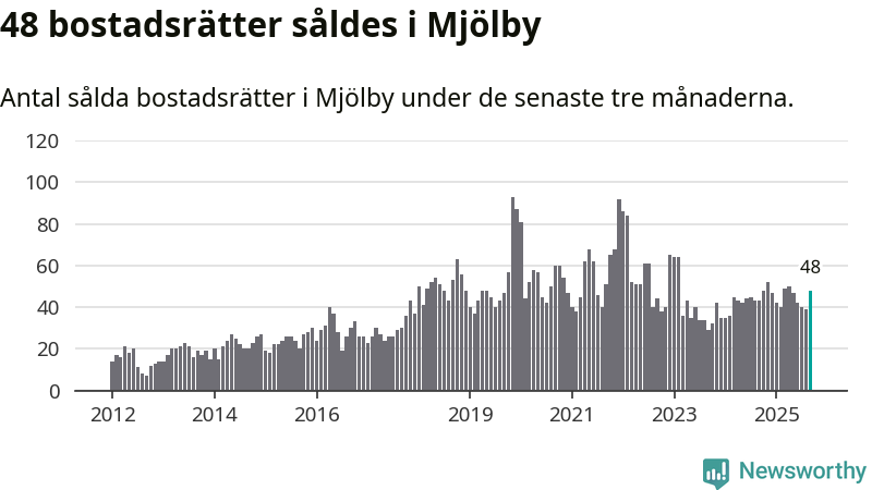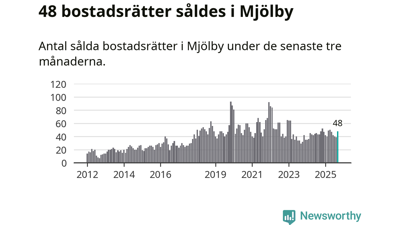 Sammanlagt såldes 48 bostadsrätter i Mjölby kommun mellan juli och september till ett genomsnittligt pris på 1,0 miljon kronor. I fjol gjordes 43 affärer vid den här tiden på året.