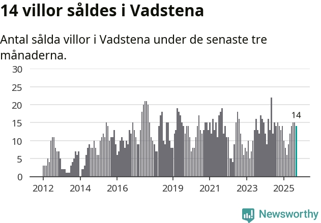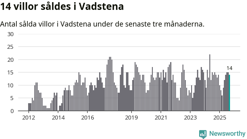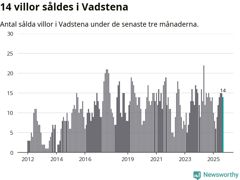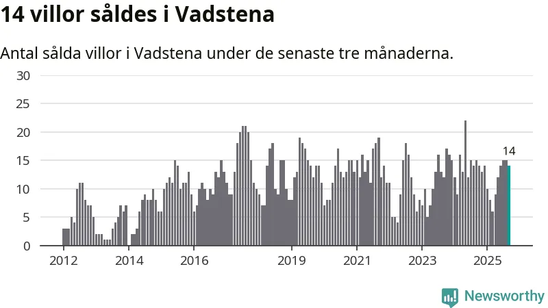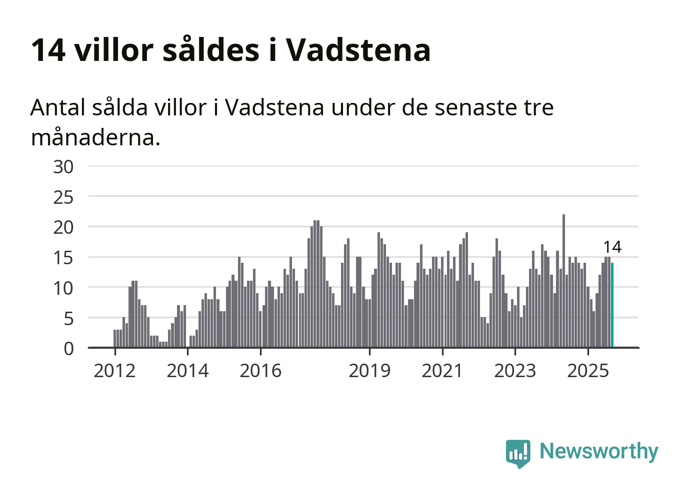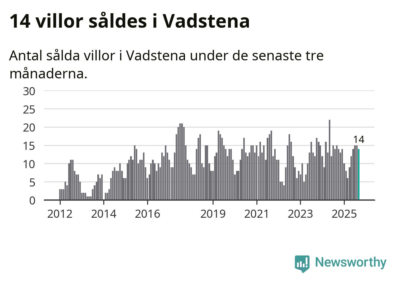 Mellan juli och september gjordes sammanlagt 14 affärer med villor i Vadstena kommun. Det kan jämföras med 15 vid motsvarande tid i fjol.