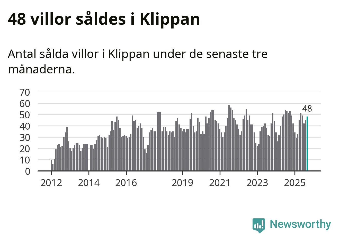 Graf: Antal sålda villor i Klippans kommun
