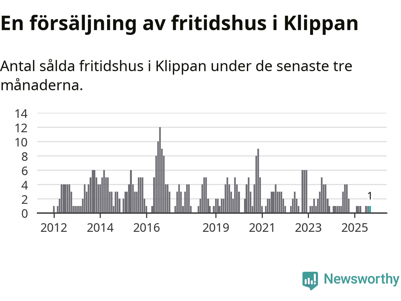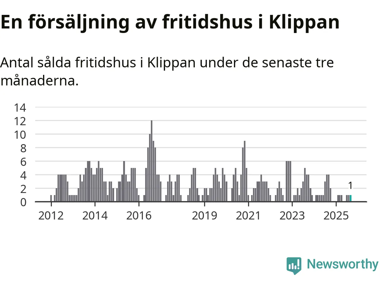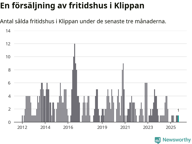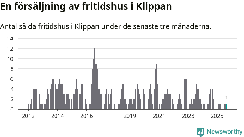 Mellan juli och september gjordes sammanlagt en affär med fritidshus i Klippans kommun. Det kan jämföras med fyra vid motsvarande tid i fjol.
