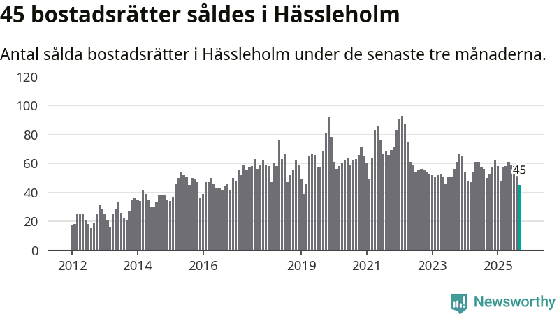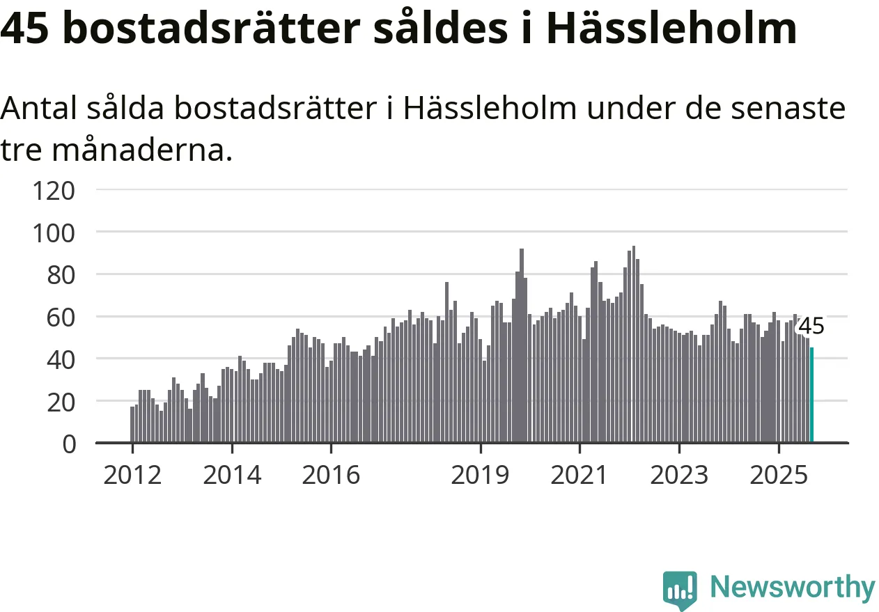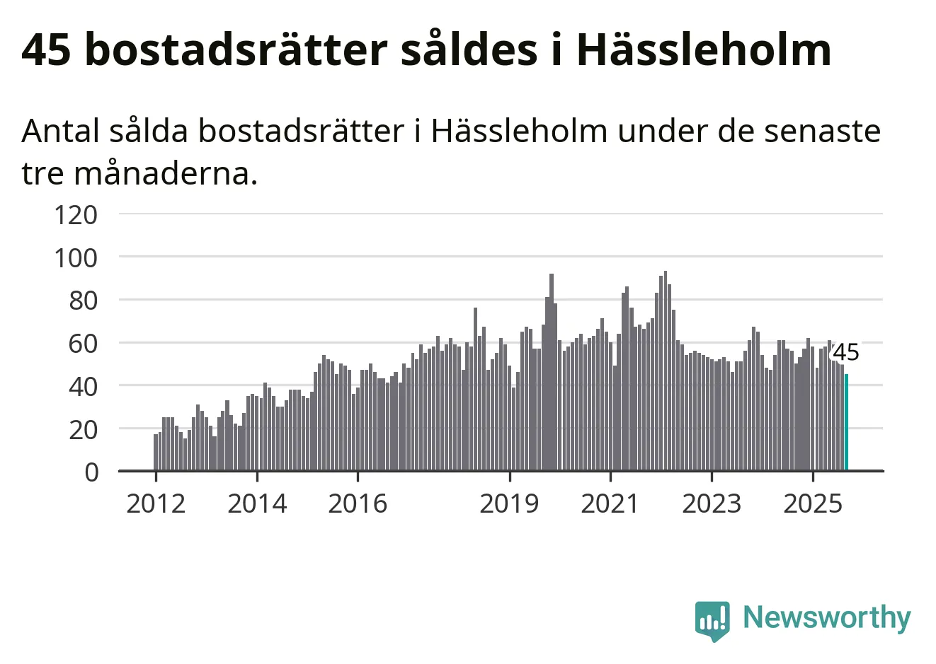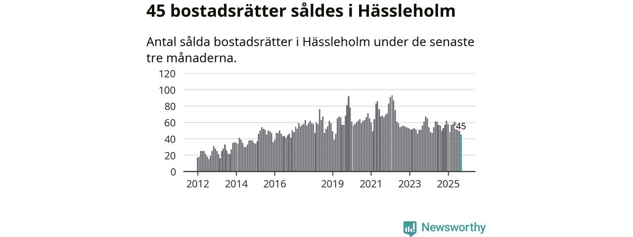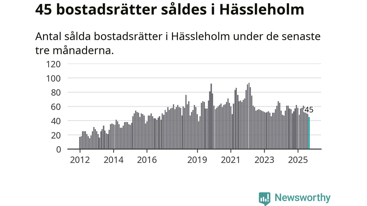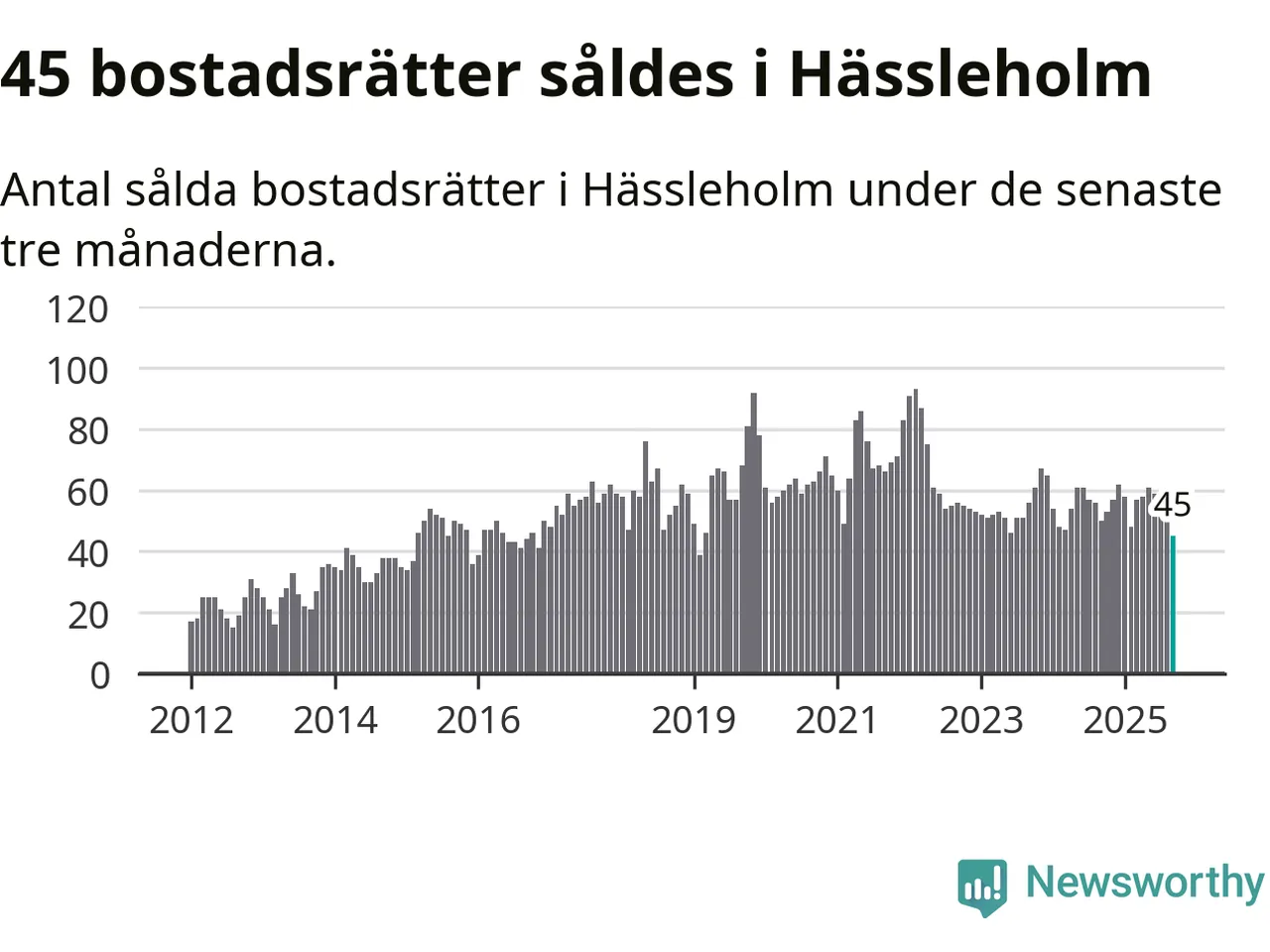 Mellan juli och september såldes 45 bostadsrätter i Hässleholms kommun. Det är färre än någon tremånadersperiod sedan 2019.