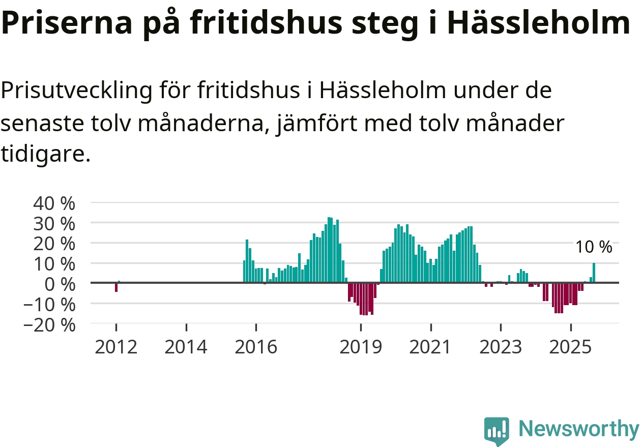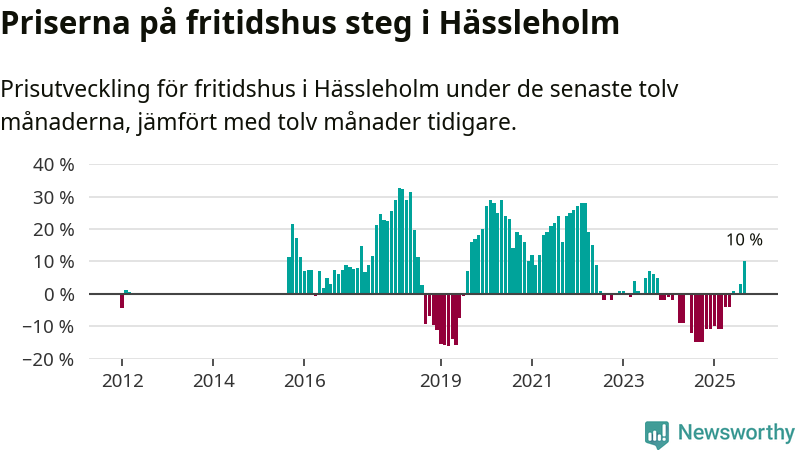 Priserna på fritidshus har gått upp i Hässleholms kommun. Medelpriset på försäljningarna under de senaste tolv månaderna visar på en uppgång med 10 procent.