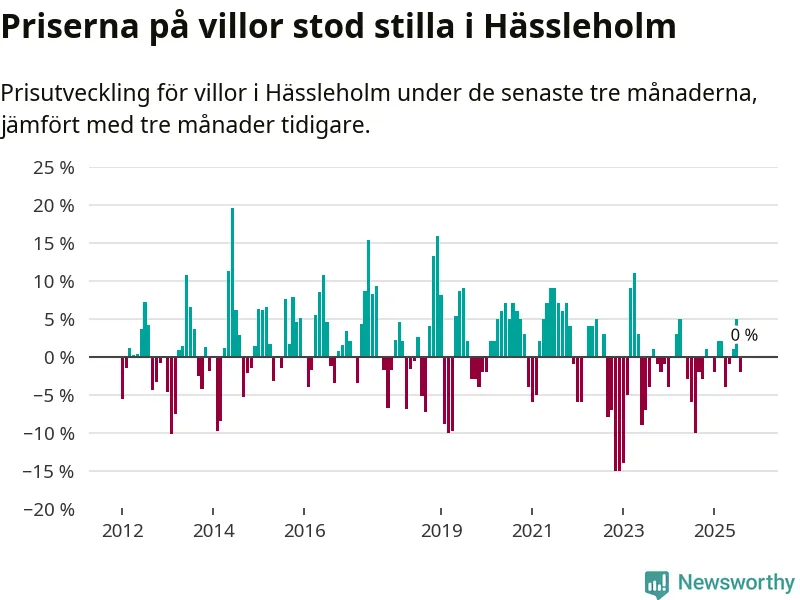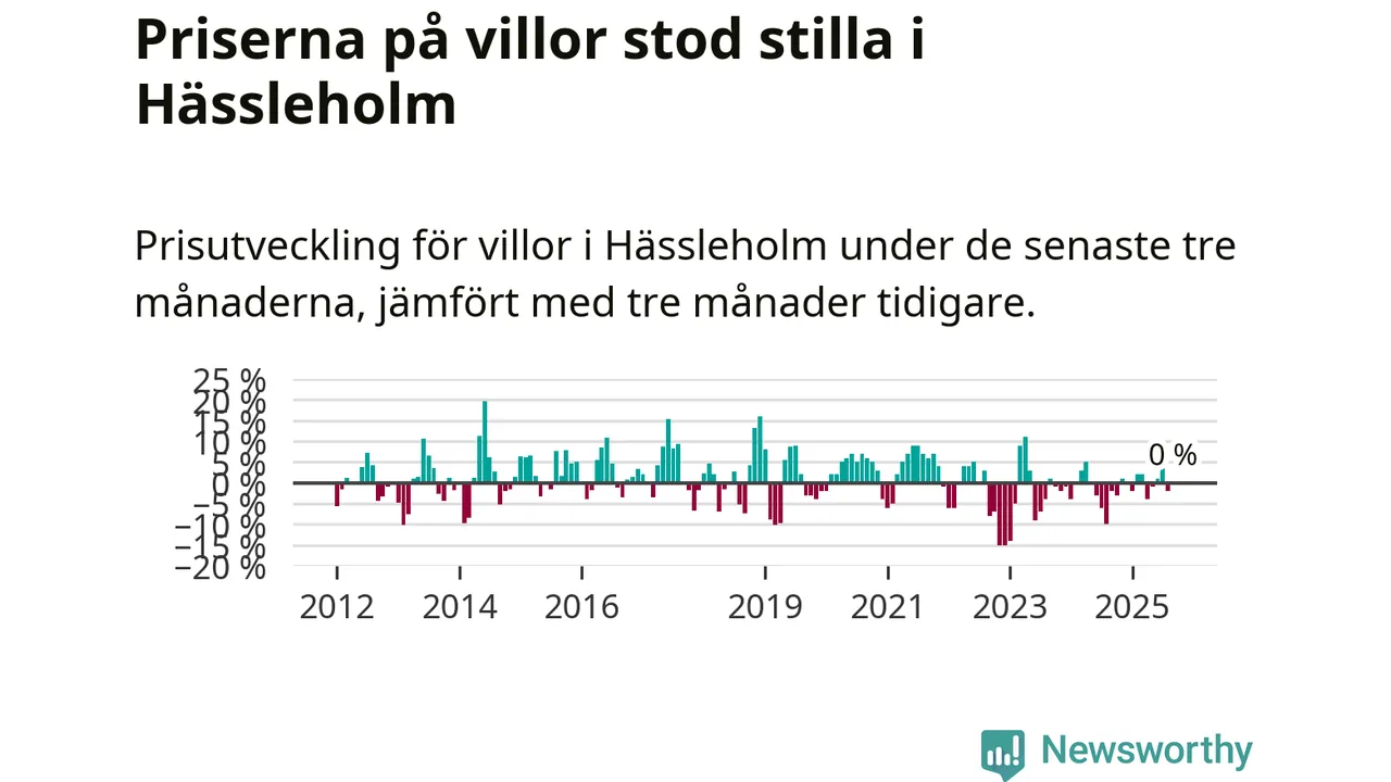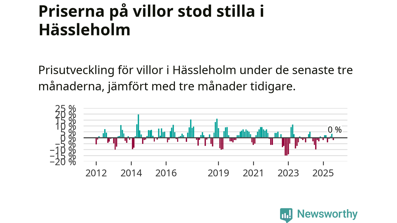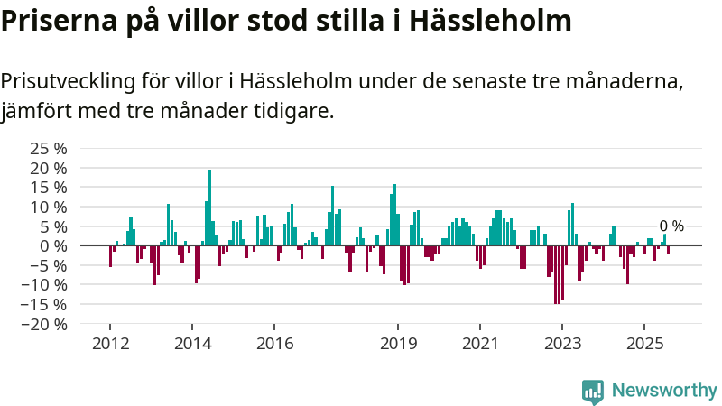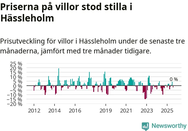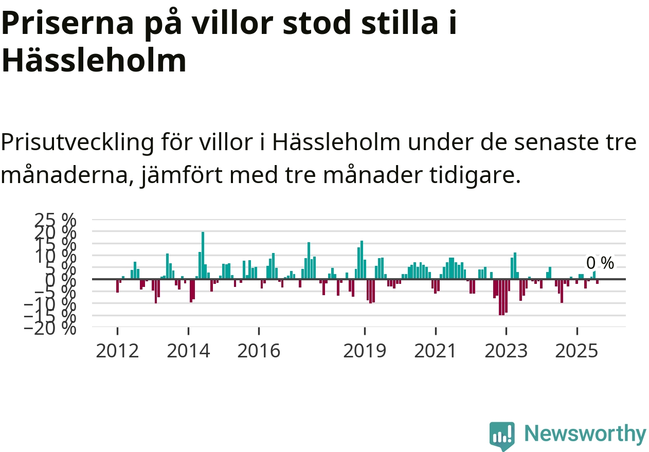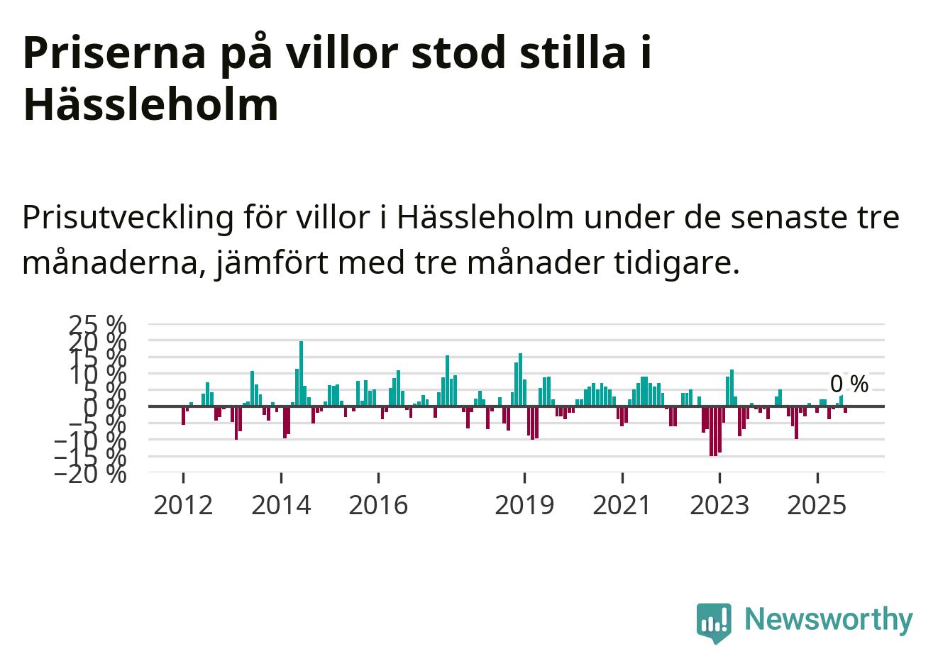 Villapriserna står i stort sett stilla i Hässleholms kommun. Medelpriset på de på försäljningarna under de senaste tre månaderna låg på samma nivå som för tre månader sedan.
