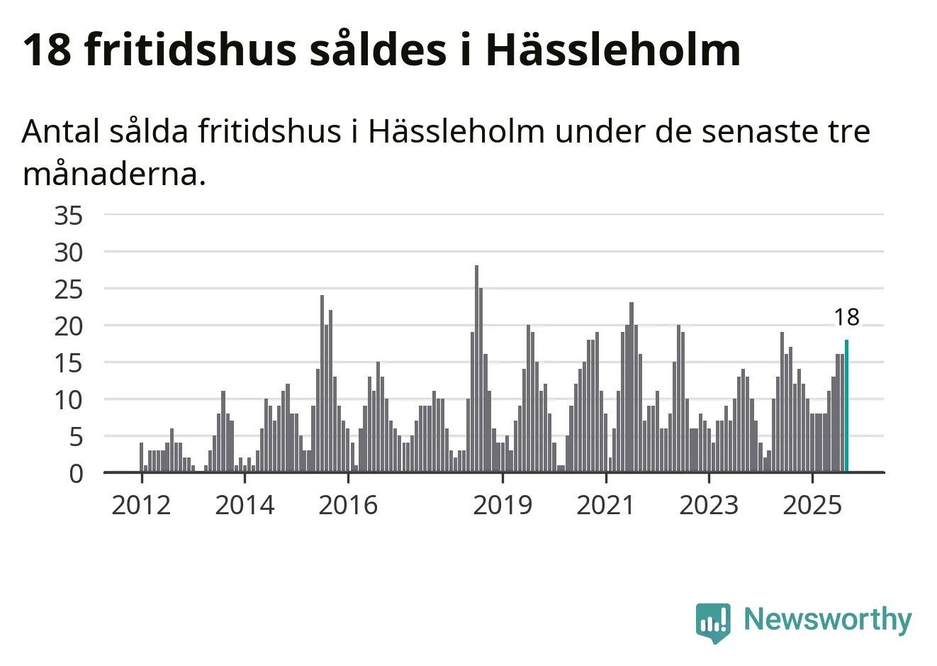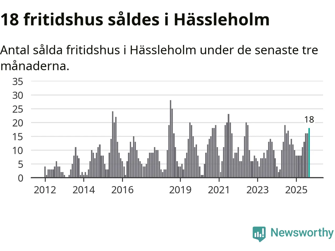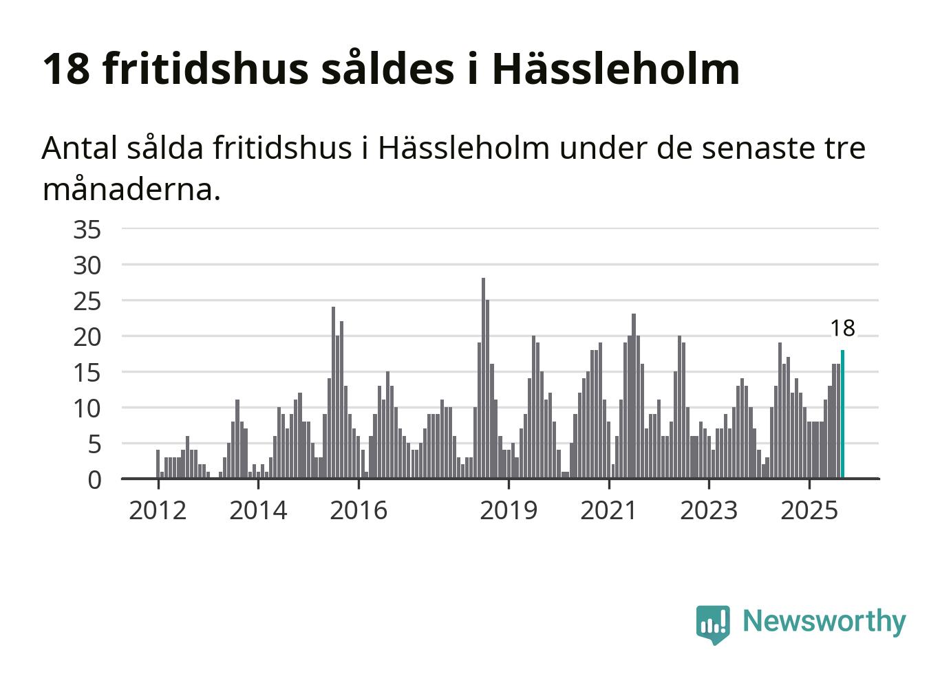 Sammanlagt såldes 18 fritidshus i Hässleholms kommun mellan juli och september till ett genomsnittligt pris på 1,4 miljoner kronor. I fjol gjordes tolv affärer vid den här tiden på året.