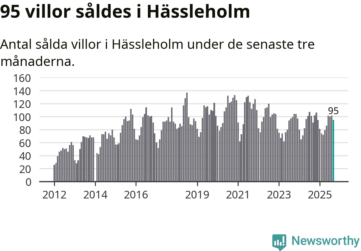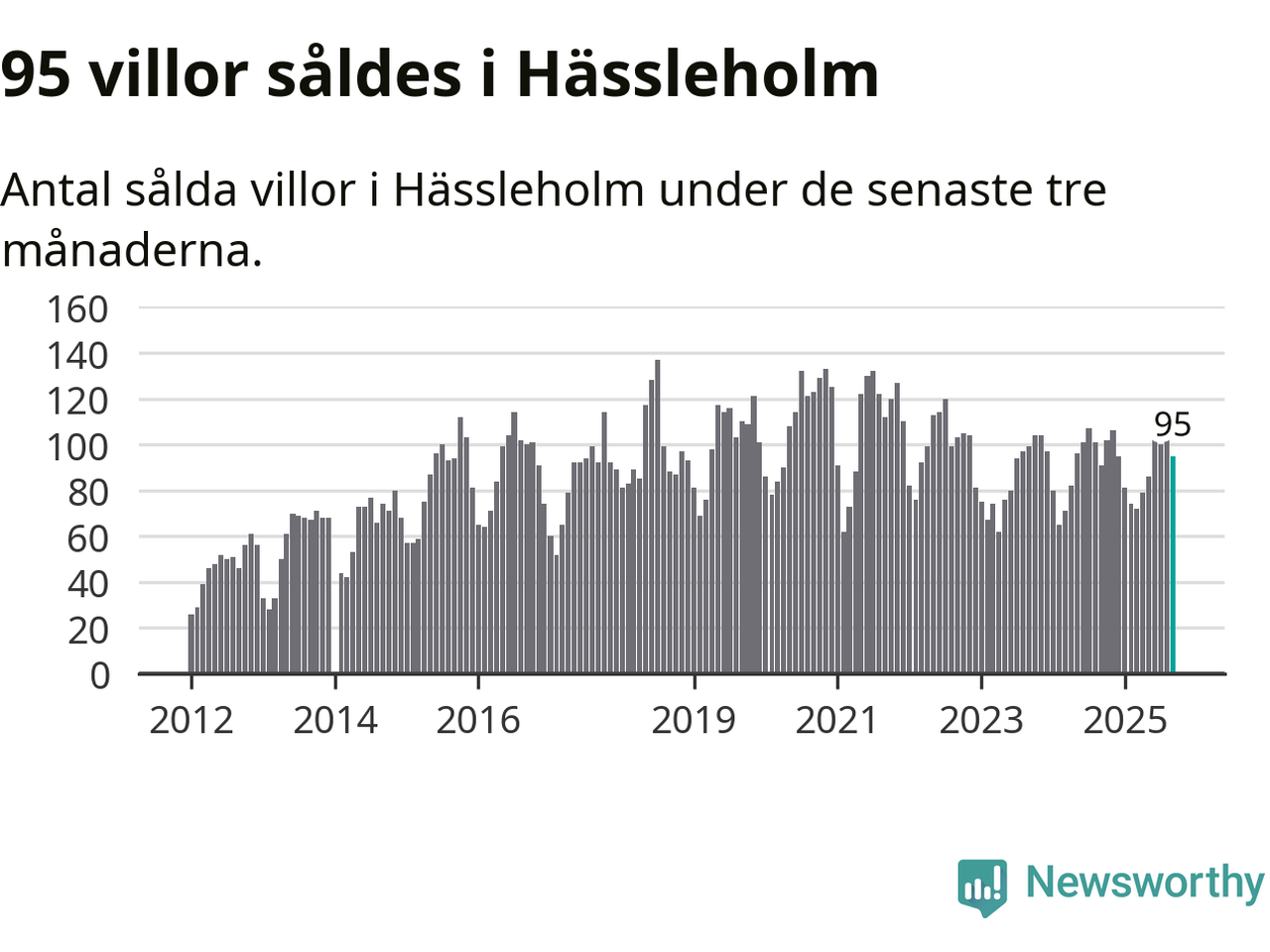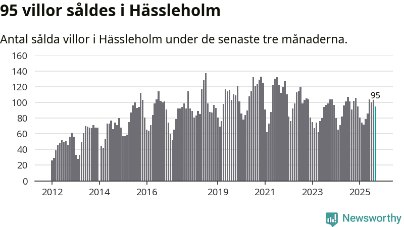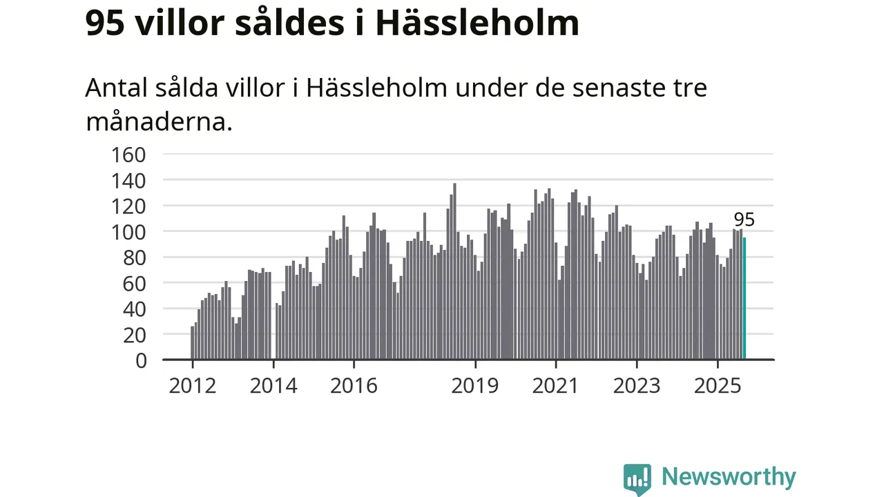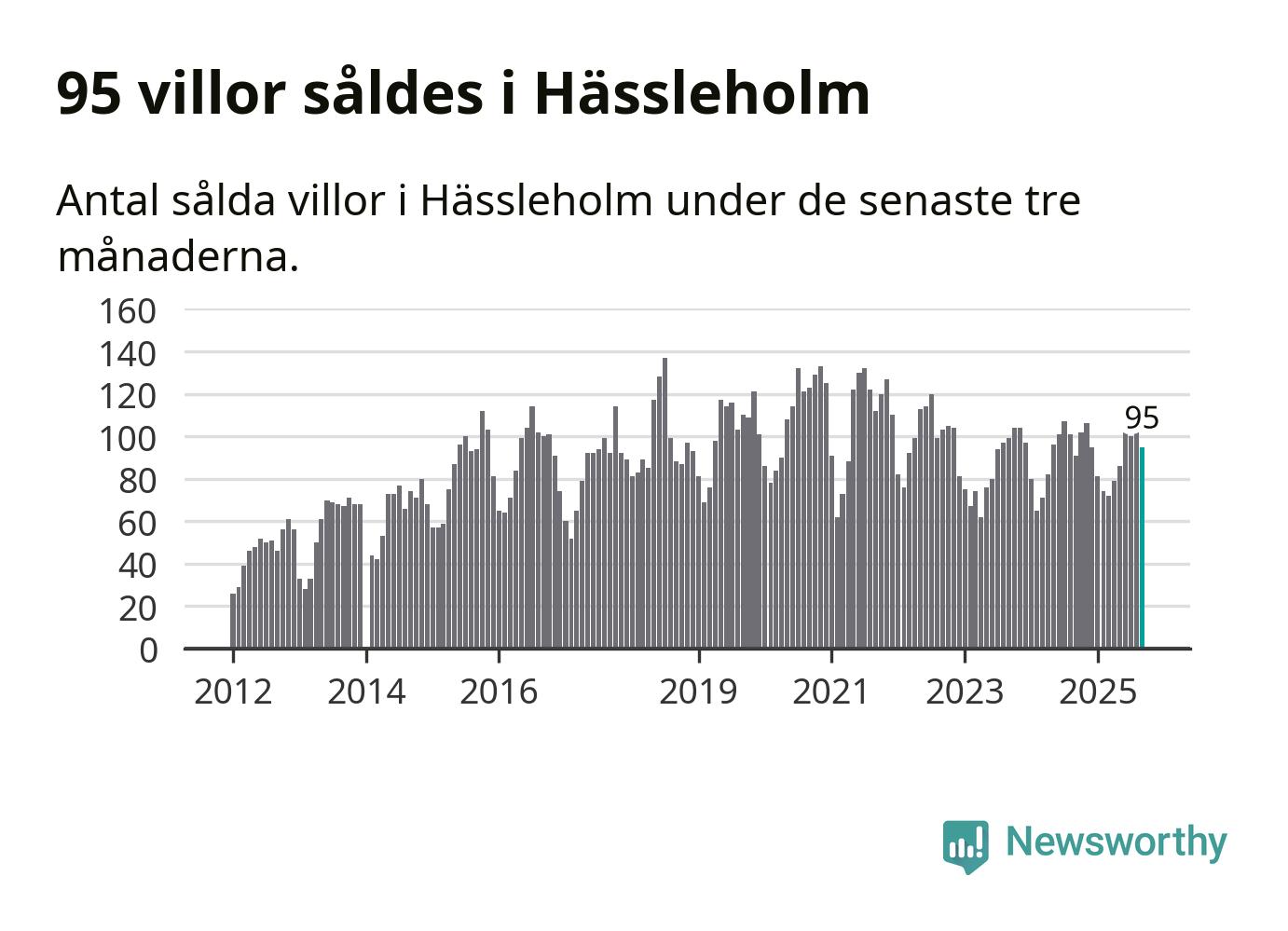 Sammanlagt såldes 95 villor i Hässleholms kommun mellan juli och september till ett genomsnittligt pris på 2,0 miljoner kronor. I fjol gjordes 91 affärer vid den här tiden på året.