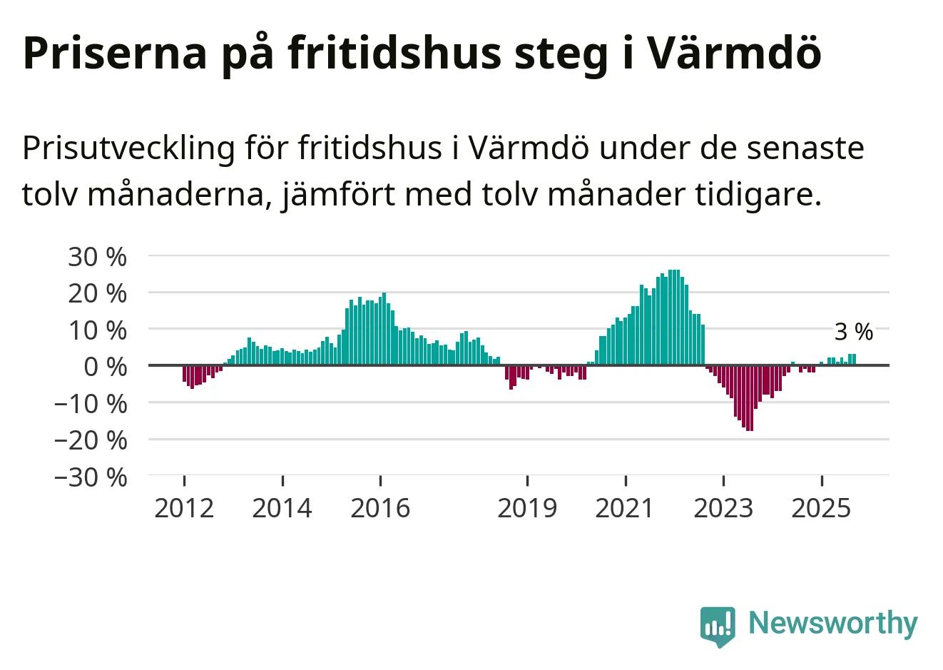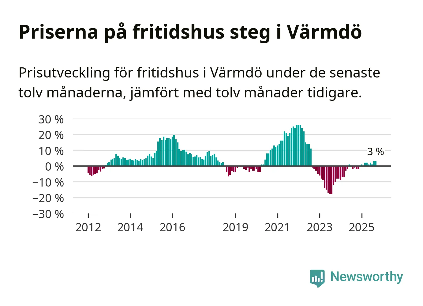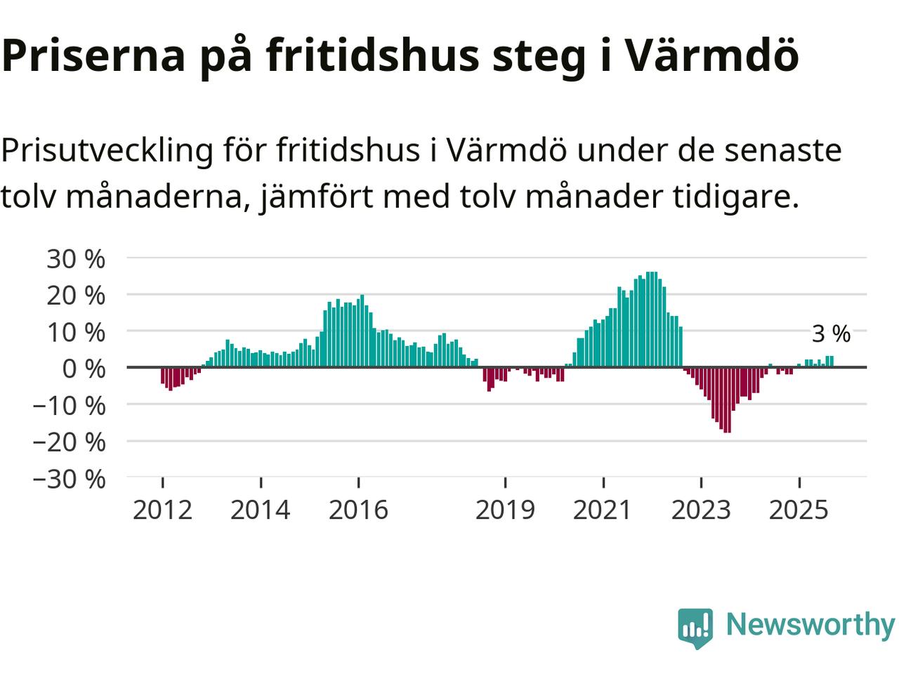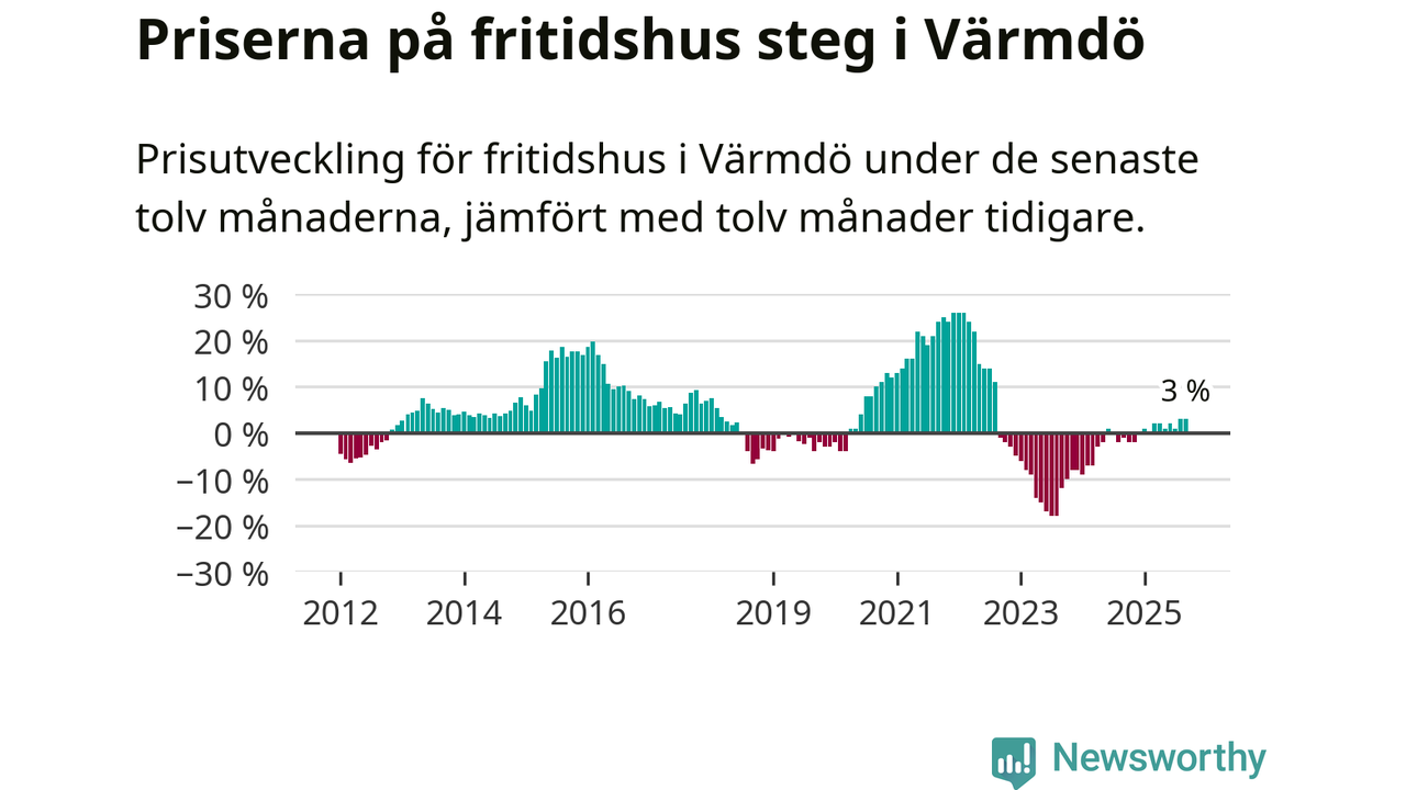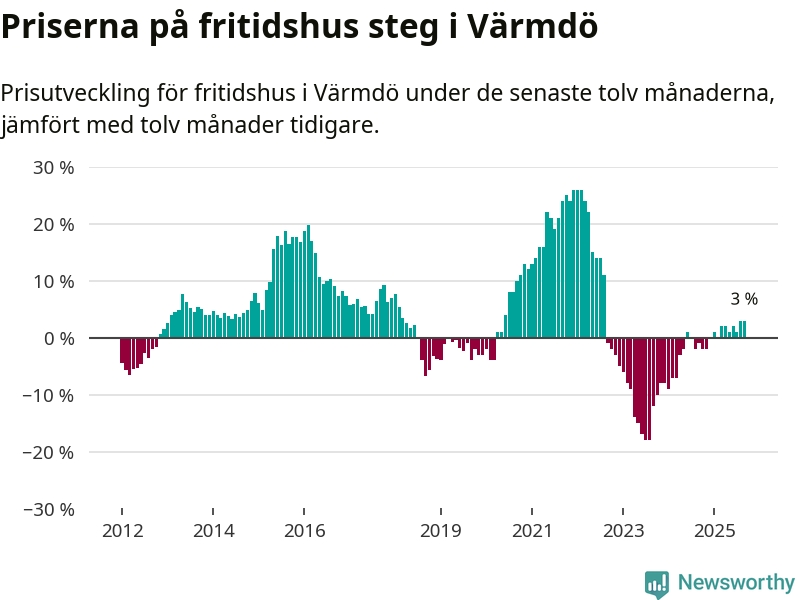 Priserna på fritidshus har gått upp i Värmdö kommun. Medelpriset på försäljningarna under de senaste tolv månaderna visar på en uppgång med 3 procent.